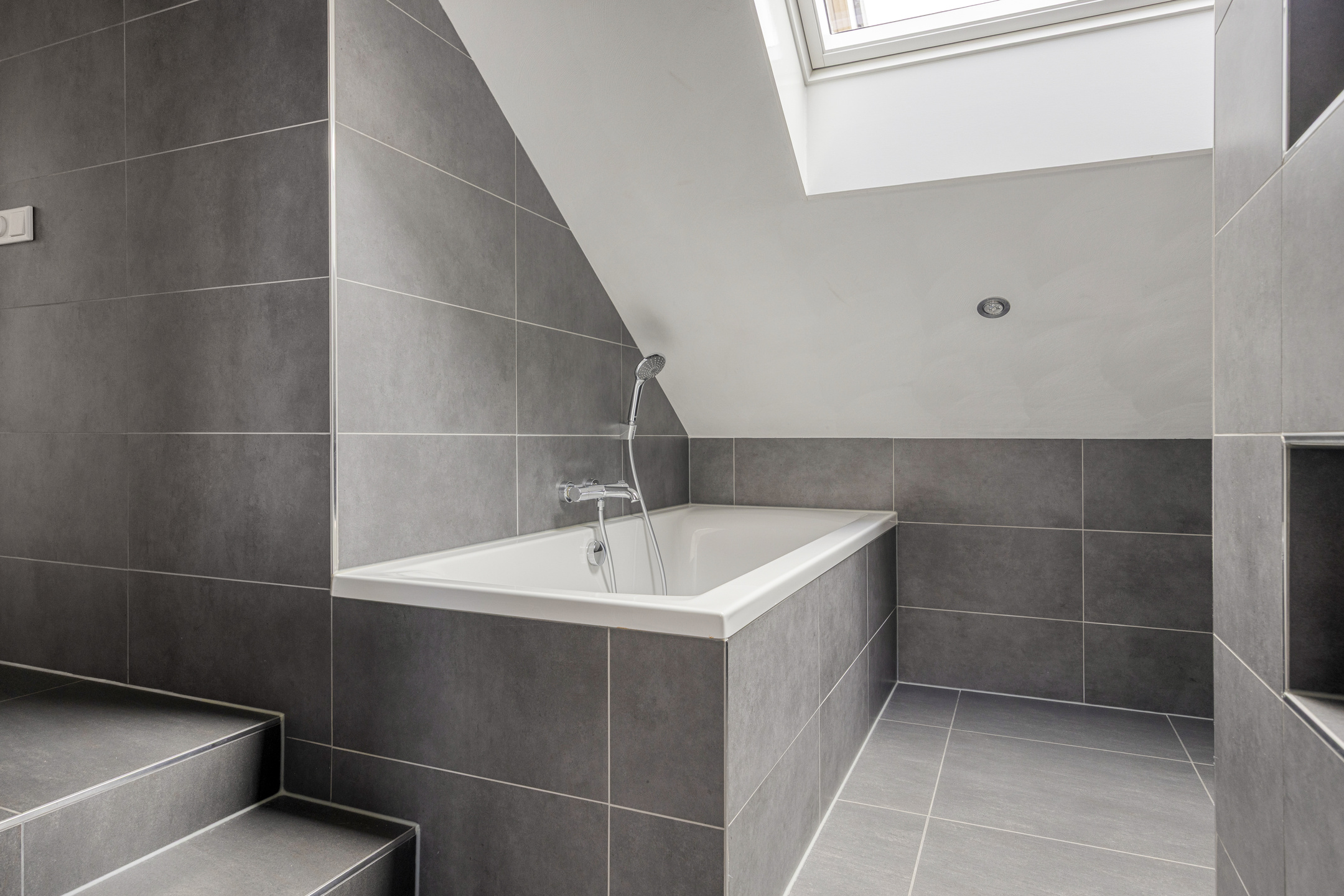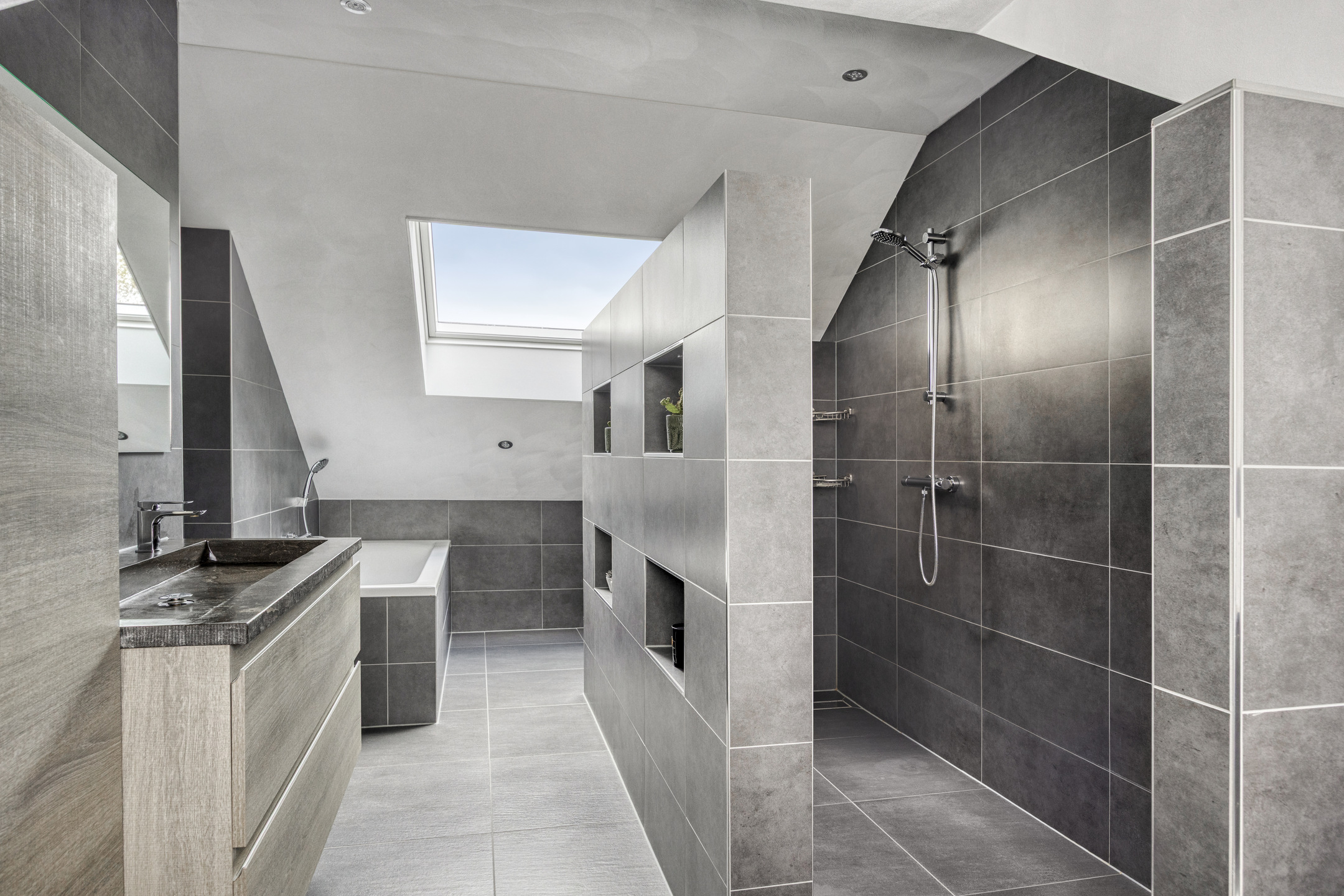 - Badkamervoorzieningen Ligbad, toilet, dubbele wastafel, wastafelmeubel, inloopdouche, vloerverwarming