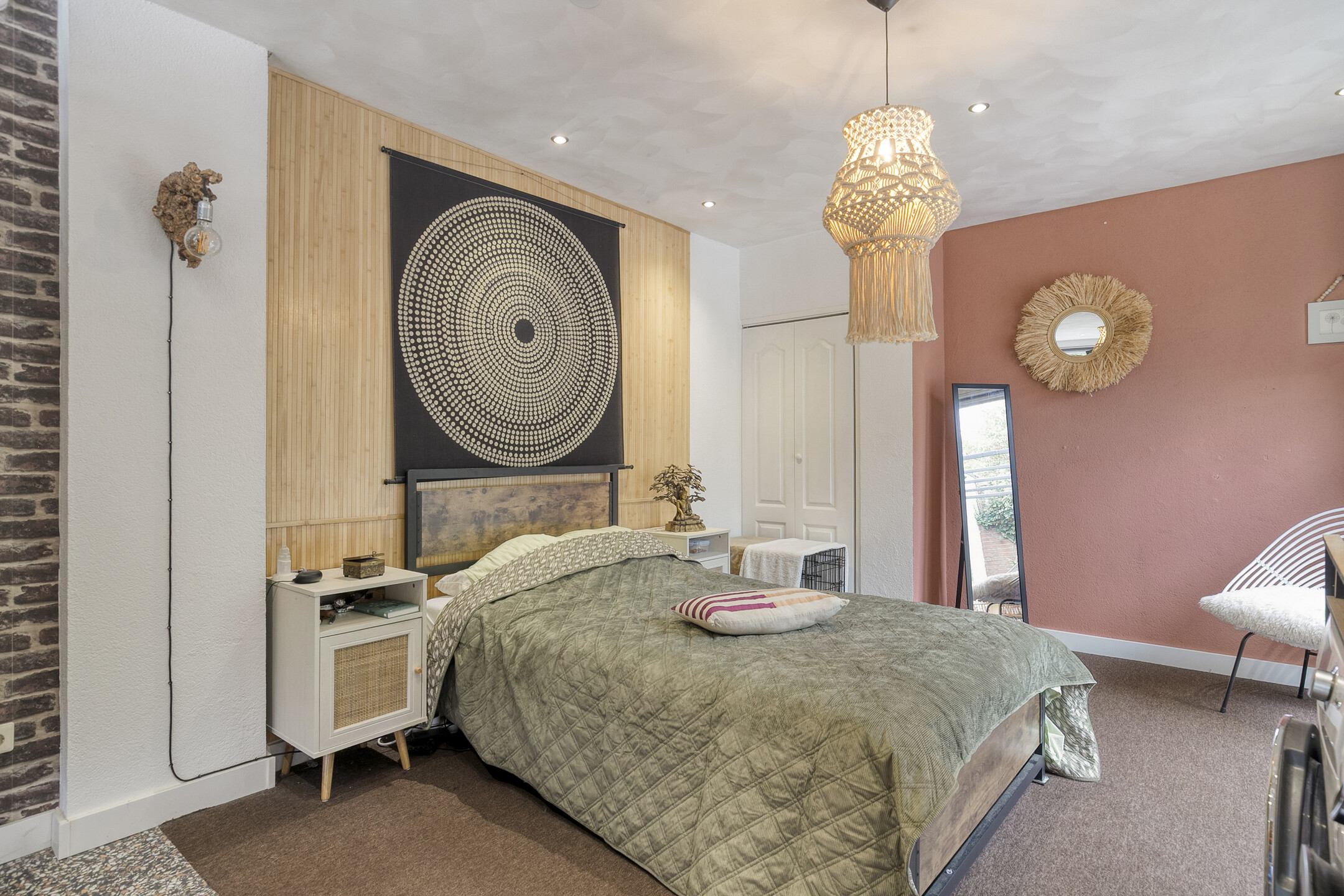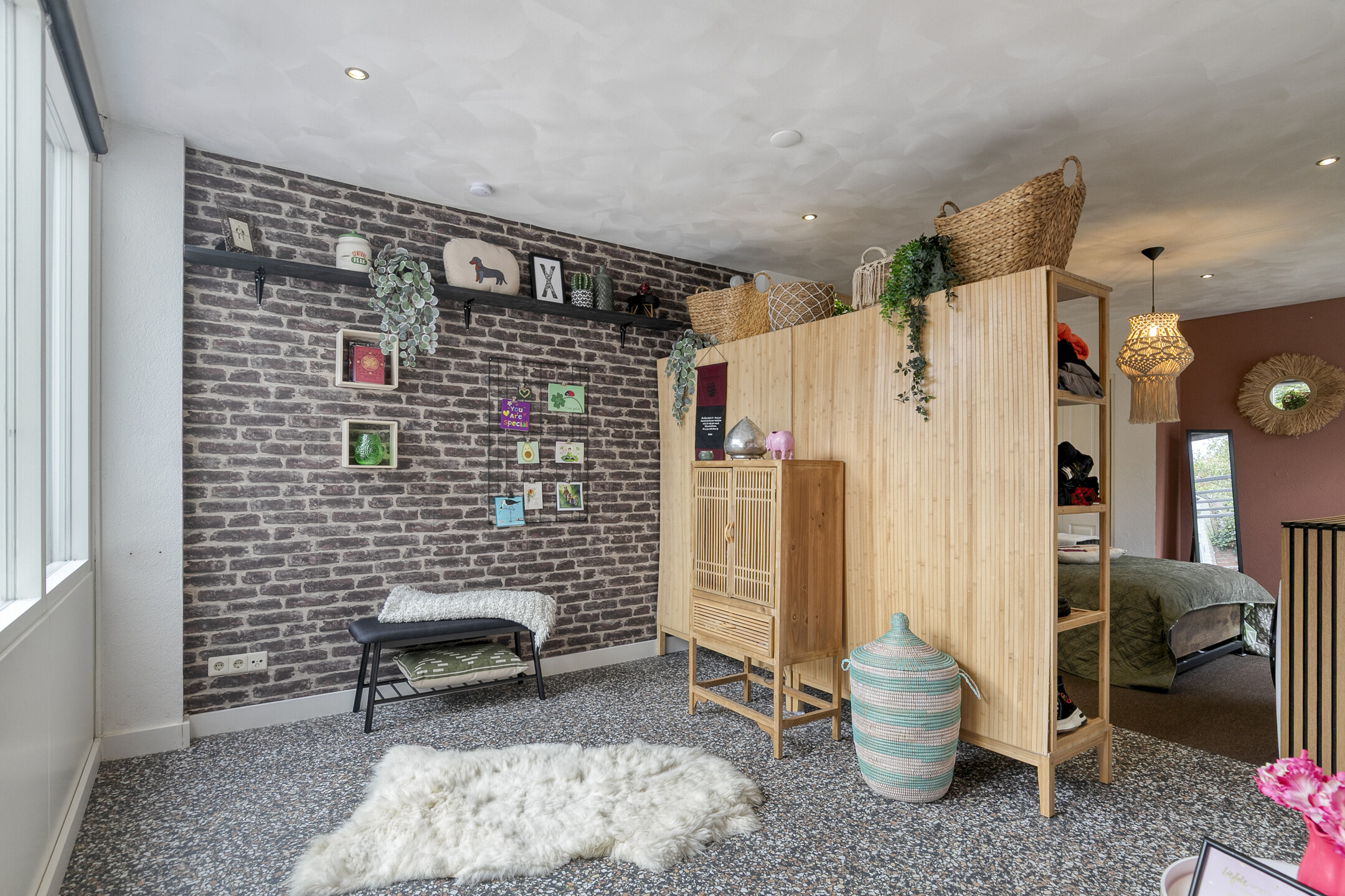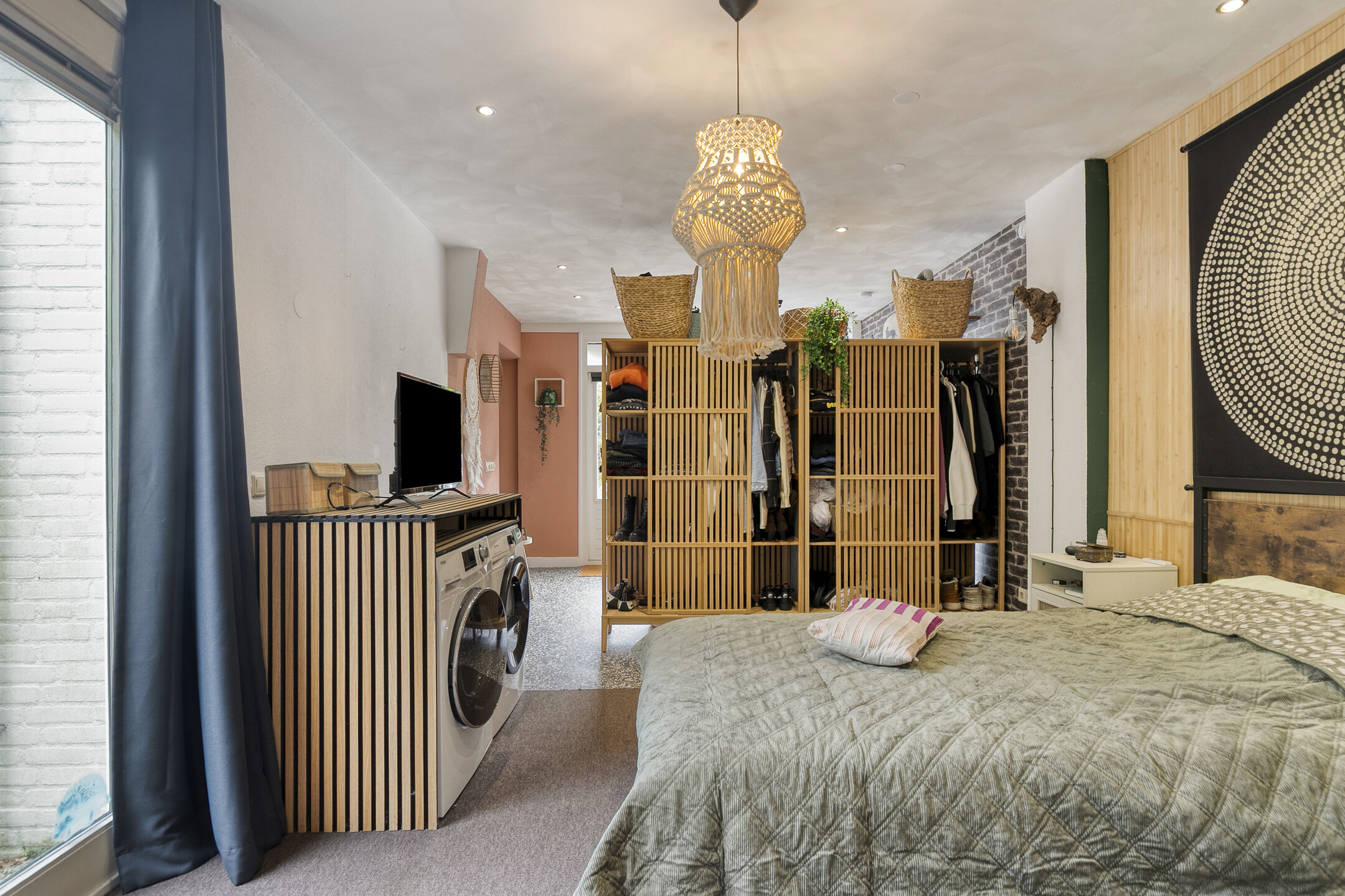 – de voormalige garage is omgebouwd tot een multifunctionele ruimte die momenteel als slaapkamer in gebruik is;