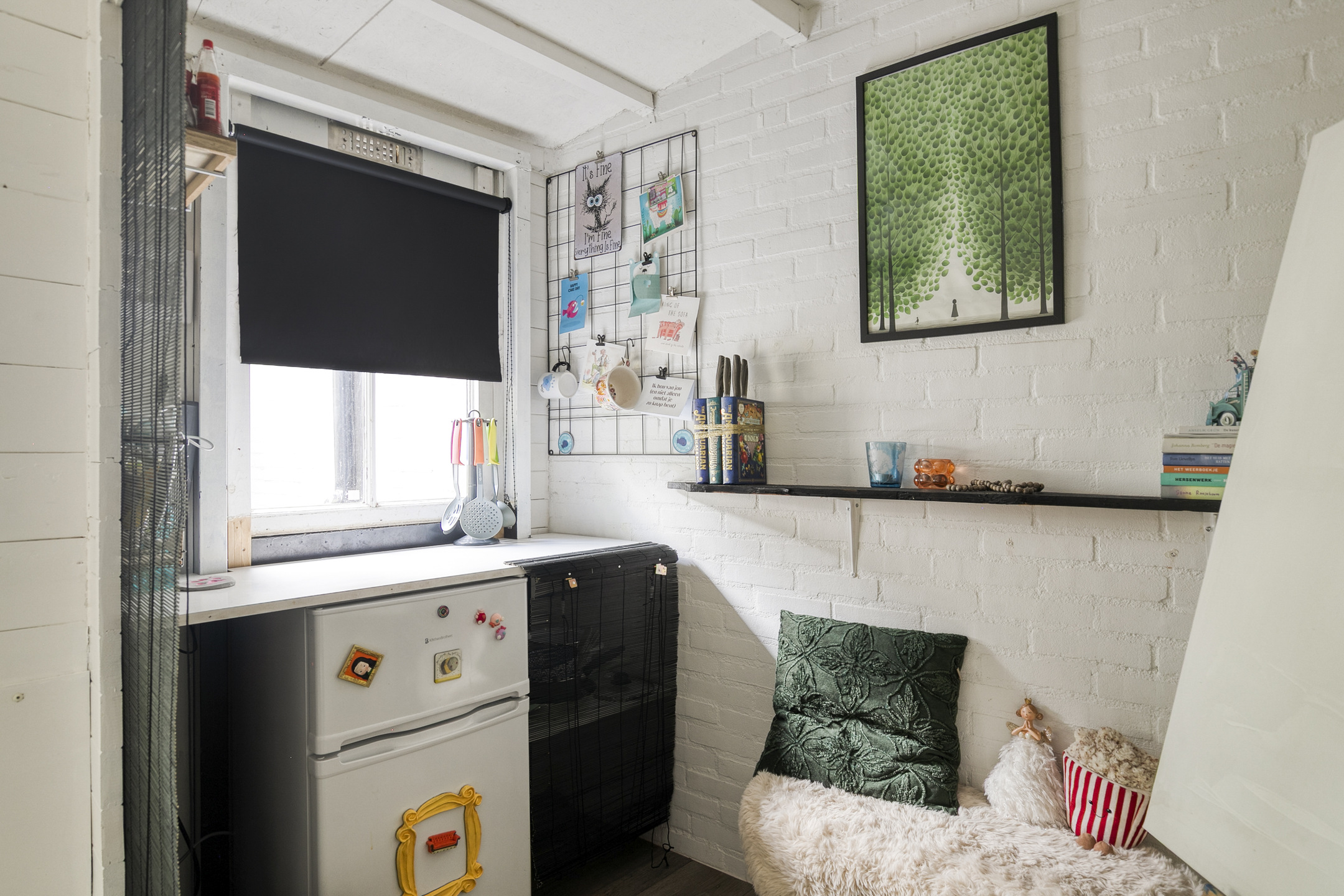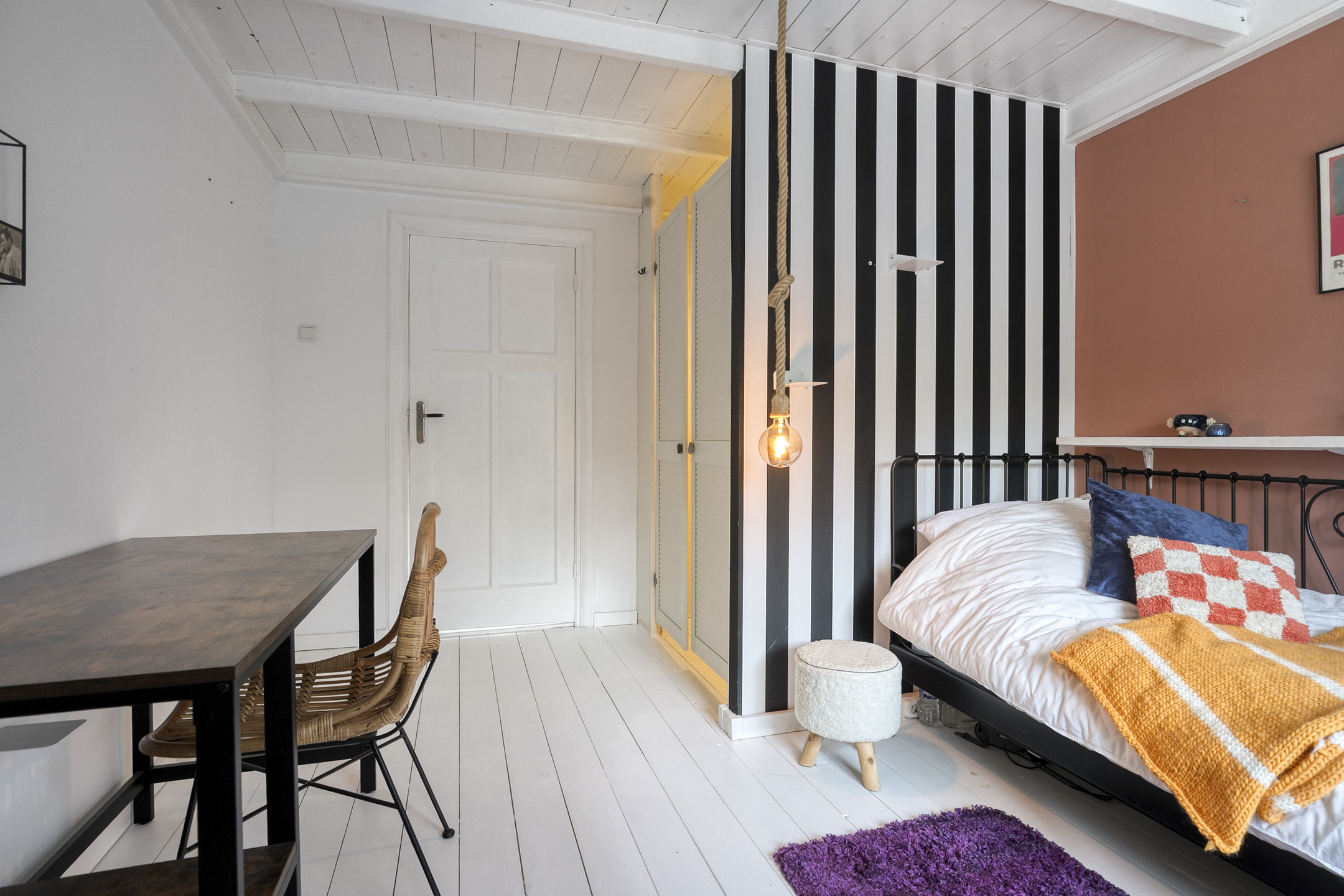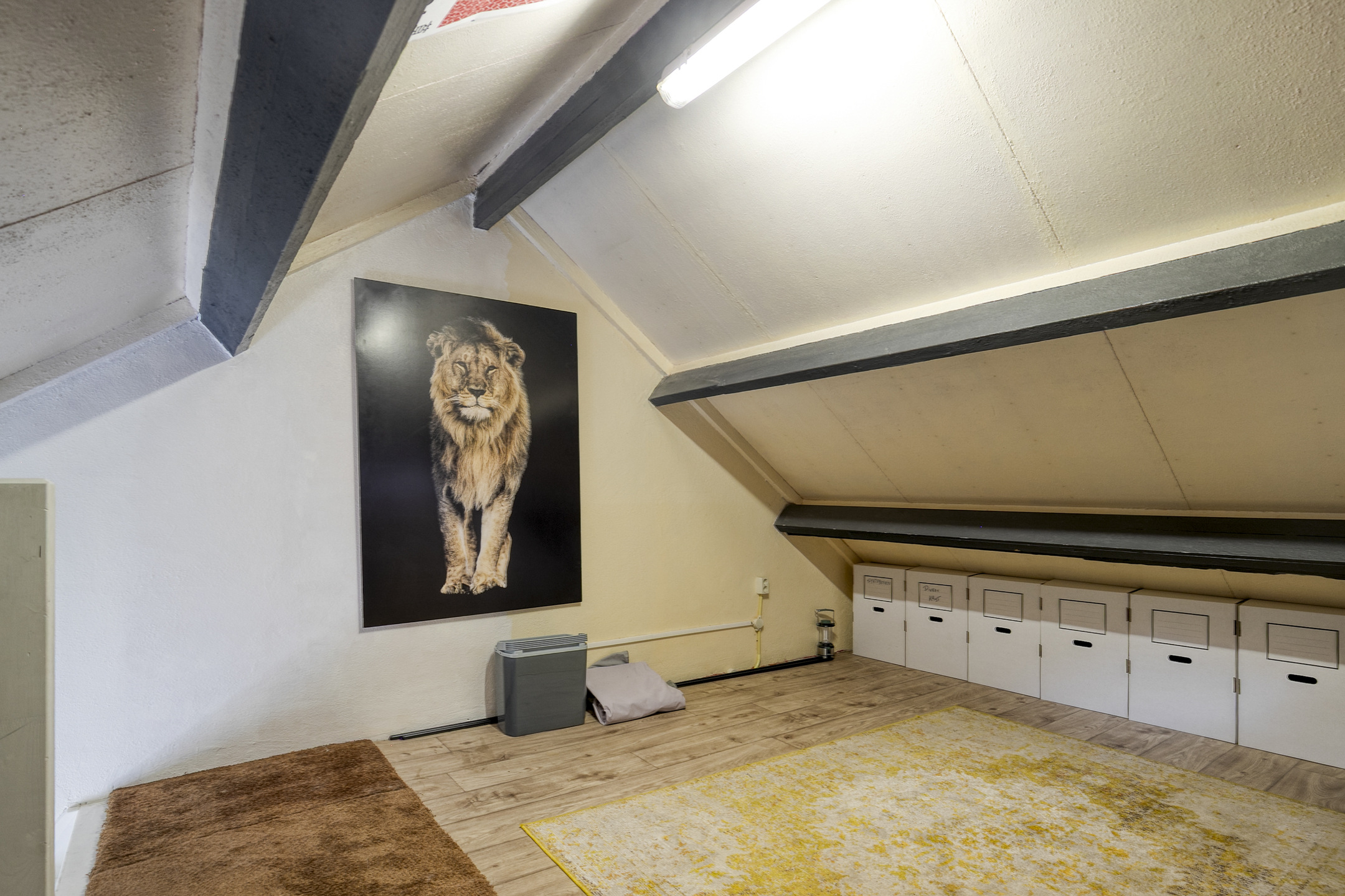 – de voormalige garage is omgebouwd tot een multifunctionele ruimte die momenteel als slaapkamer in gebruik is;