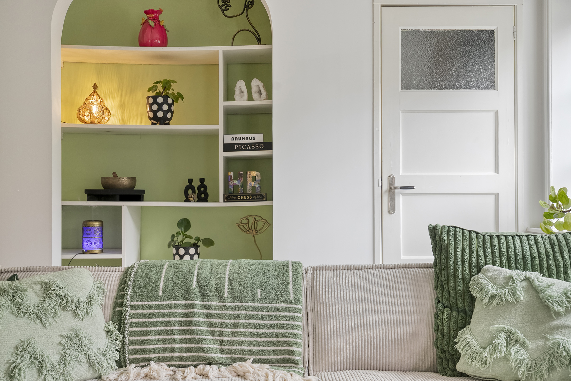 – via een portaal vanuit de woonkamer er toegang is tot de trapopgang, de kelder en de badkamer;