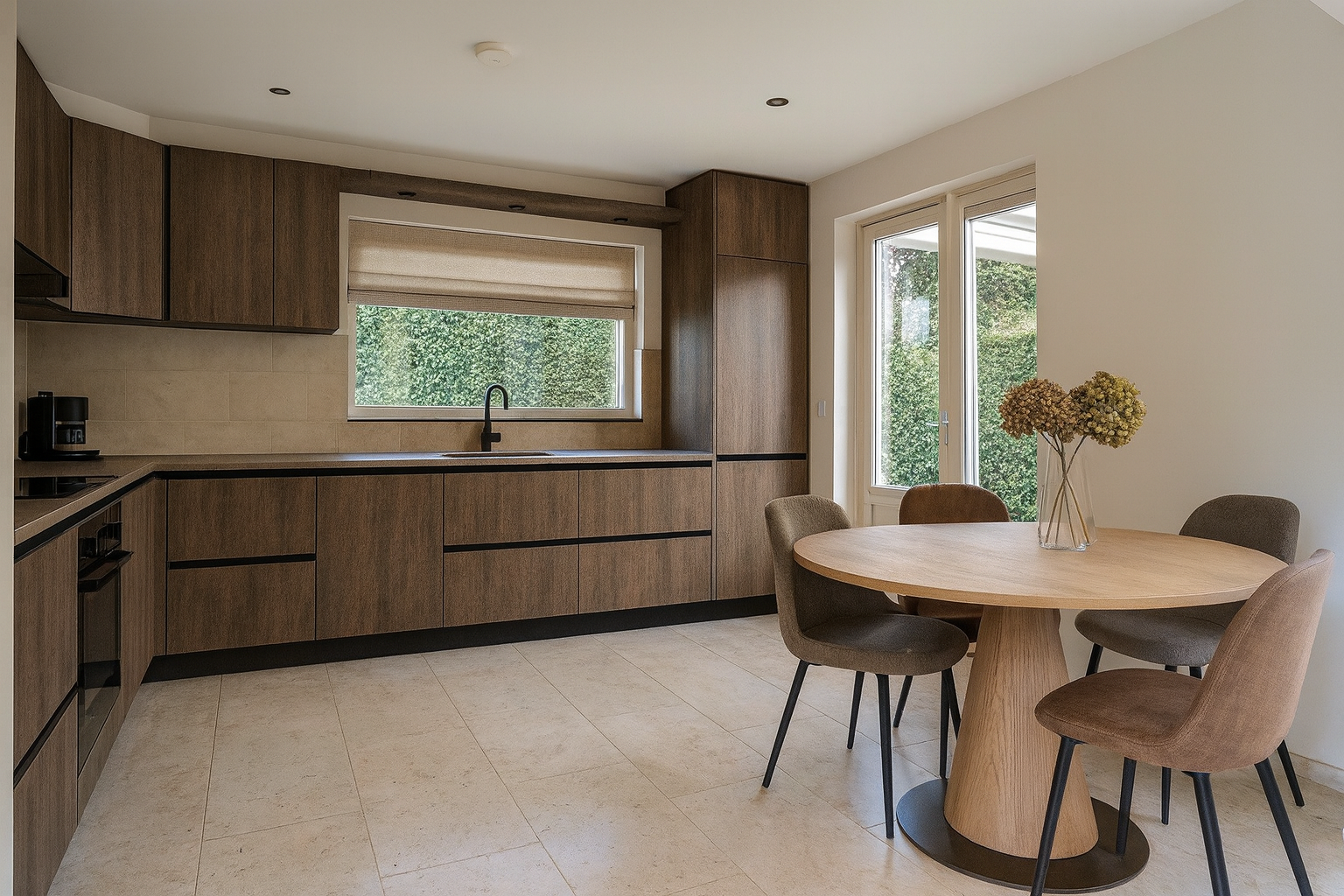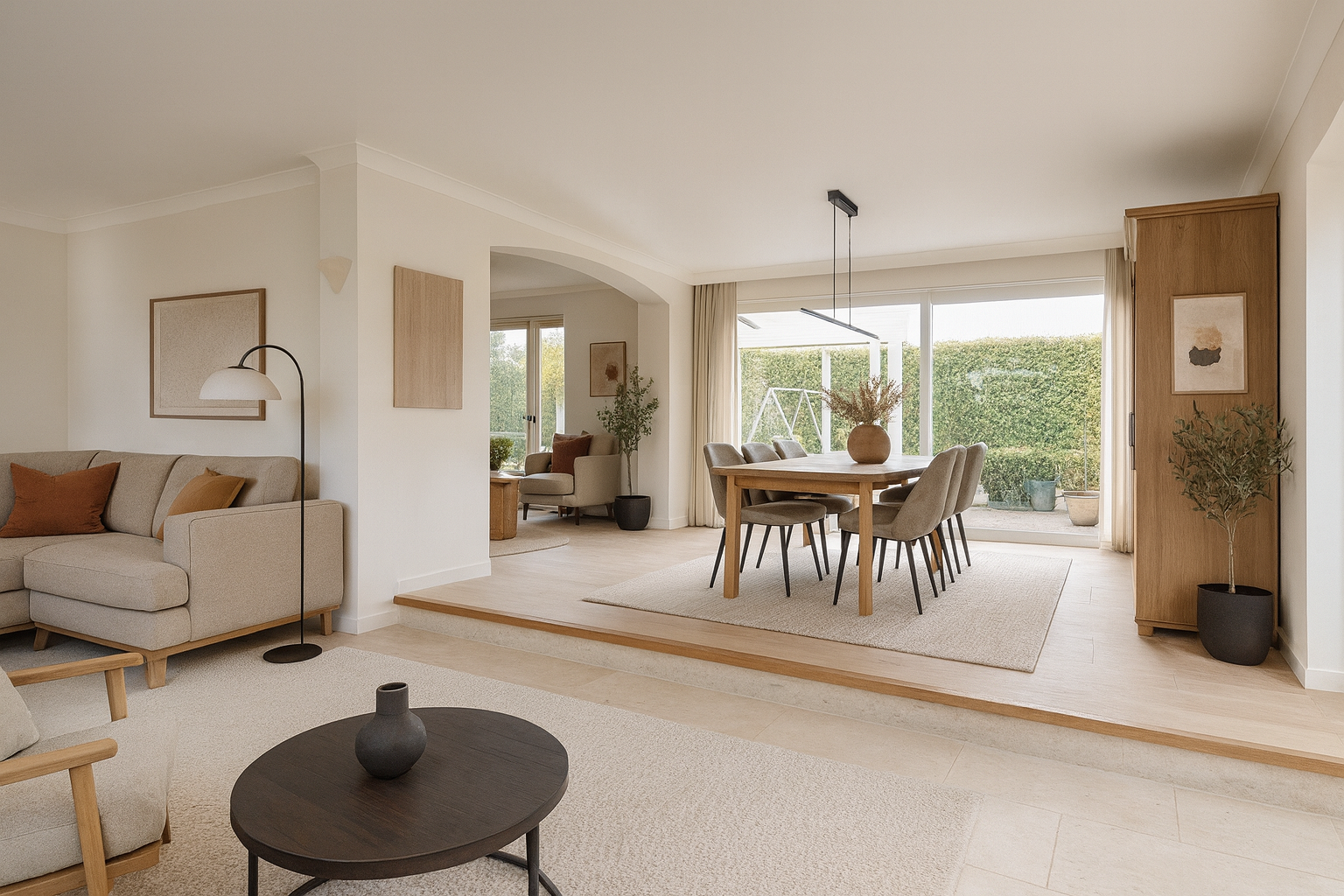 – Open eetgedeelte op een speelse verhoging, verbonden met de woonkeuken;