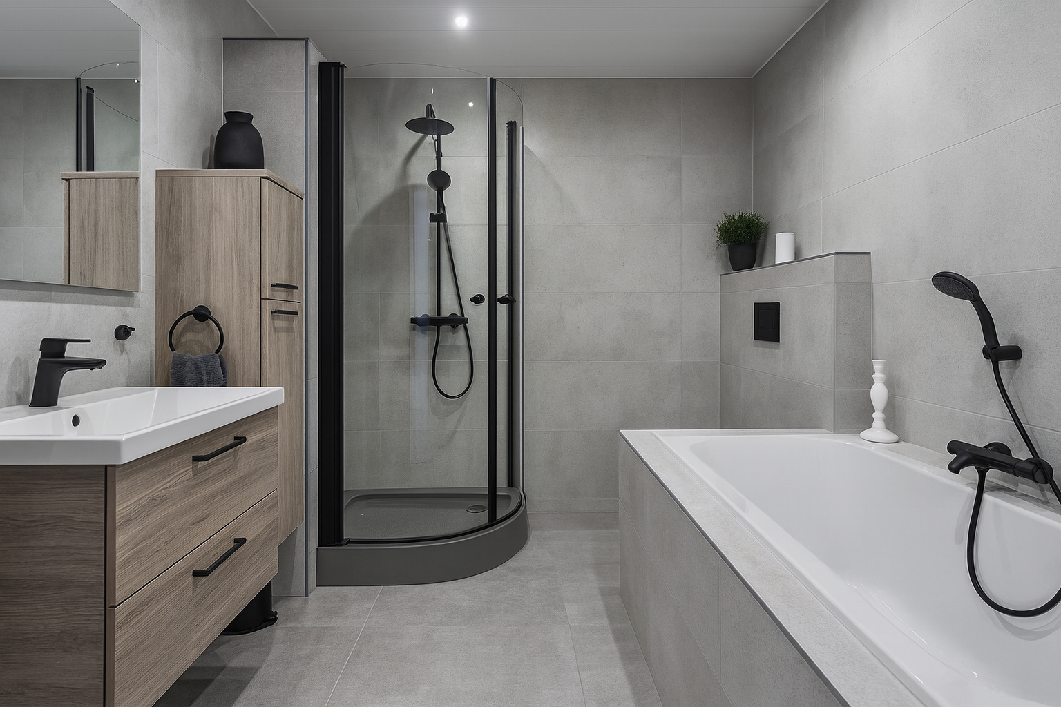 - Badkamervoorzieningen Ligbad, toilet, douche, wastafel