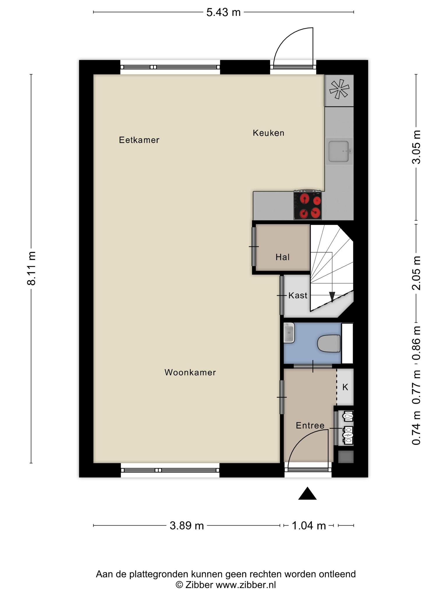Bij binnenkomst in de woning kom je in de hal die toegang biedt tot de meterkast, de moderne toiletruimte (met wandcloset en fonteintje) en de woonkamer.
