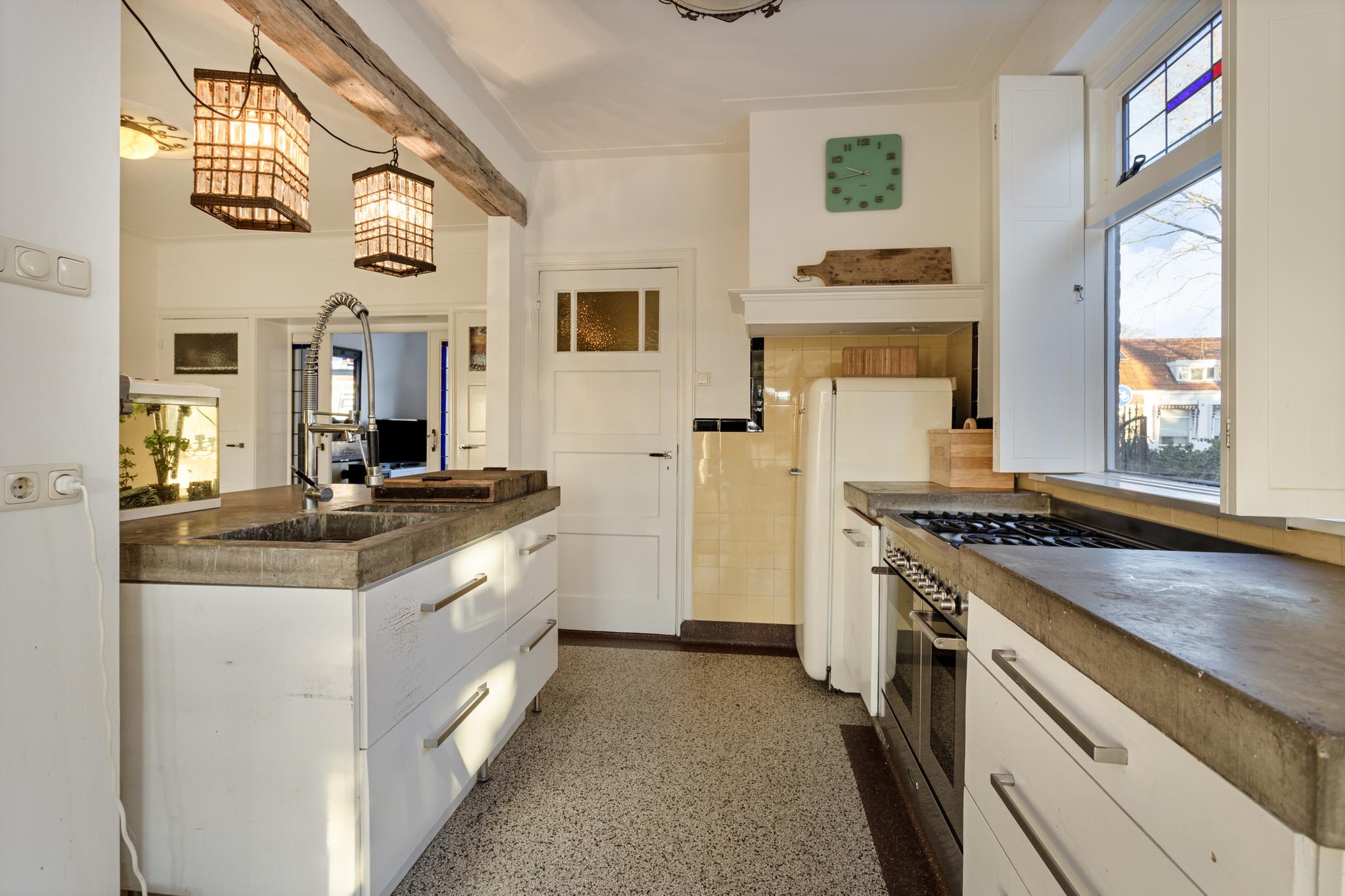 – de terrazzovloer terug komt in de keuken en men vanuit hier zicht heeft op de eigen oprit;