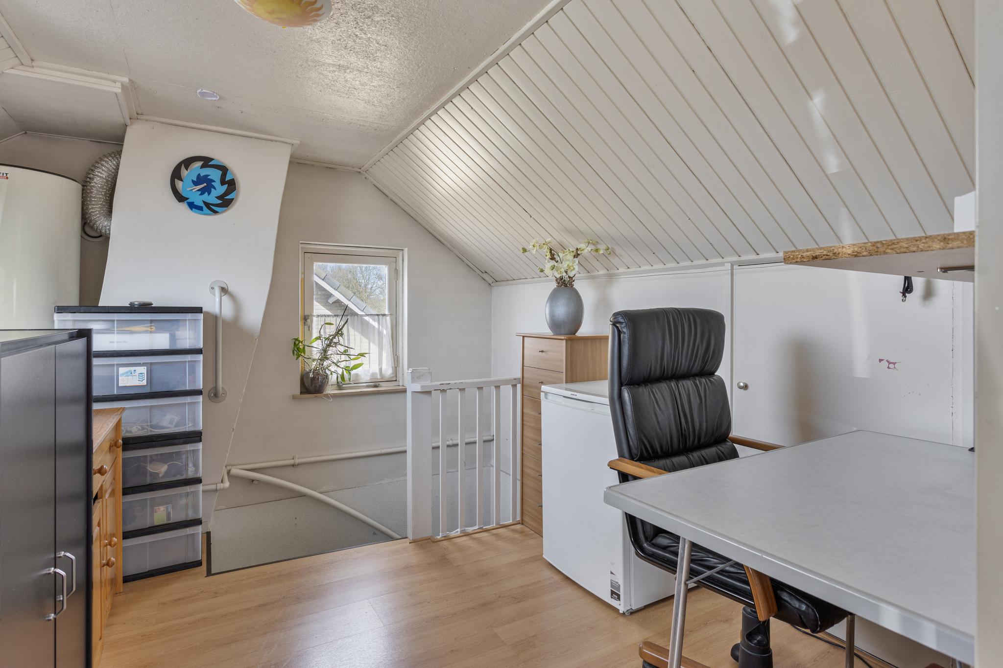 – Extra bergruimte op de vliering onder het schuine dak van de garage;