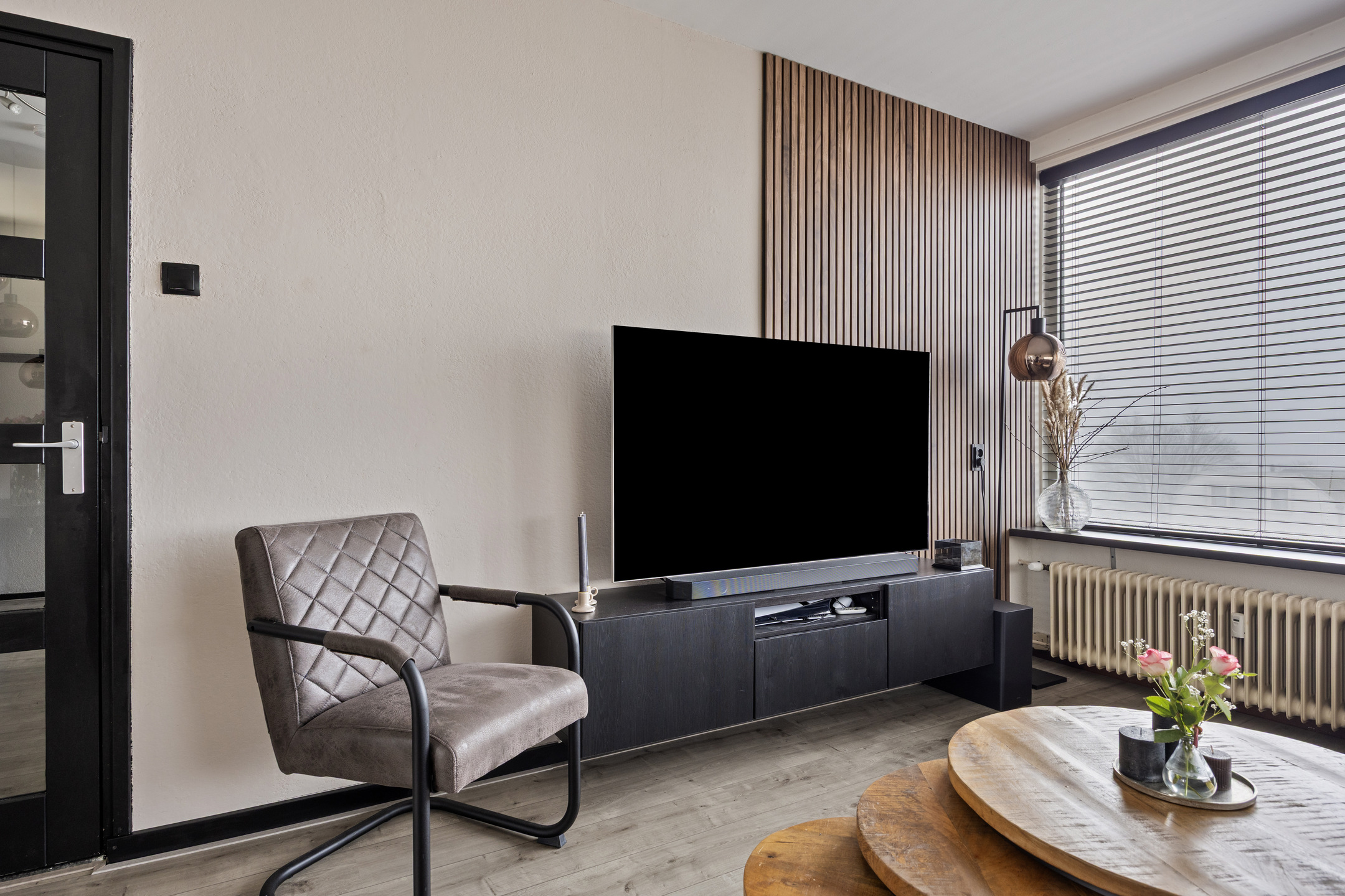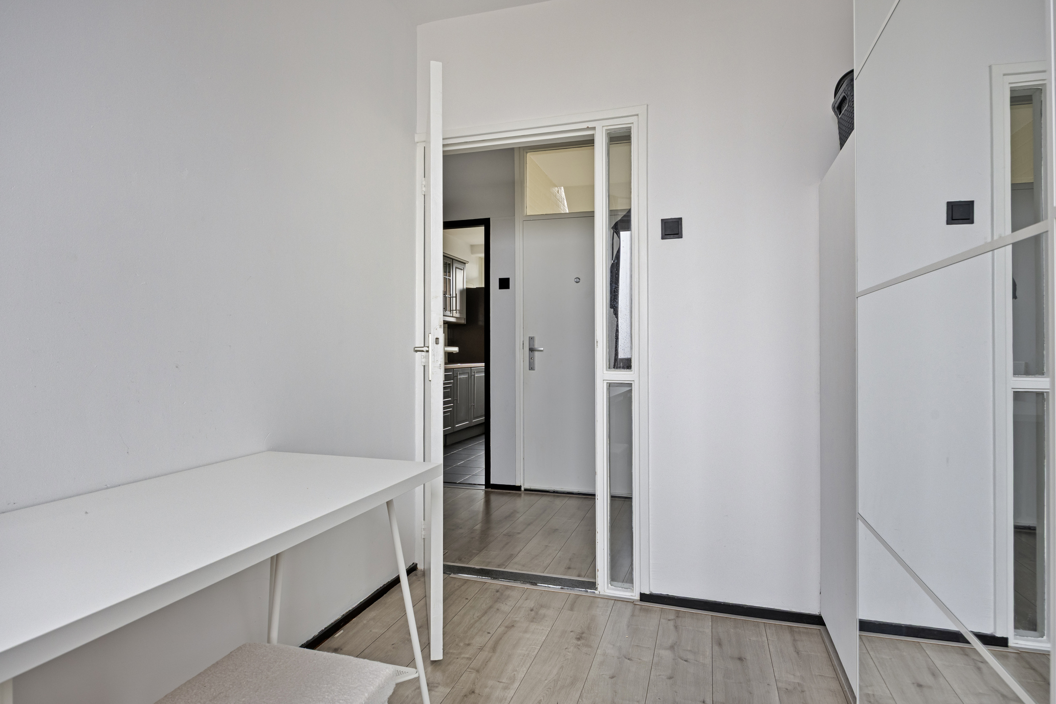 – het appartement beschikt over een lichte woonkamer met een nette laminaatvloer en ruimte voor zowel een zithoek als eethoek;