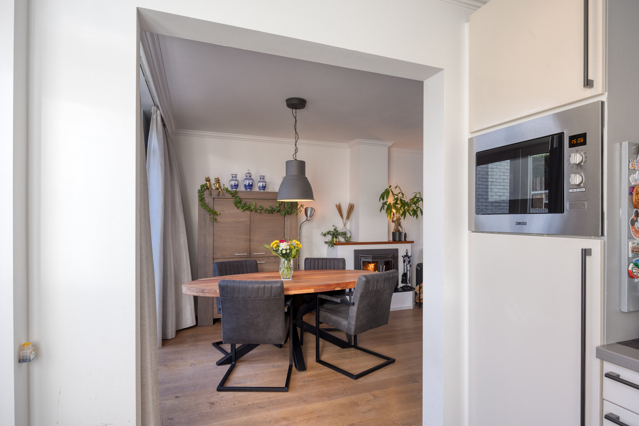 – de halfopen keuken is ingericht met een 5-pits gasfornuis, oven, afzuigkap, vaatwasser (2020), magnetron (2020) en koel-vriescombinatie (2023);