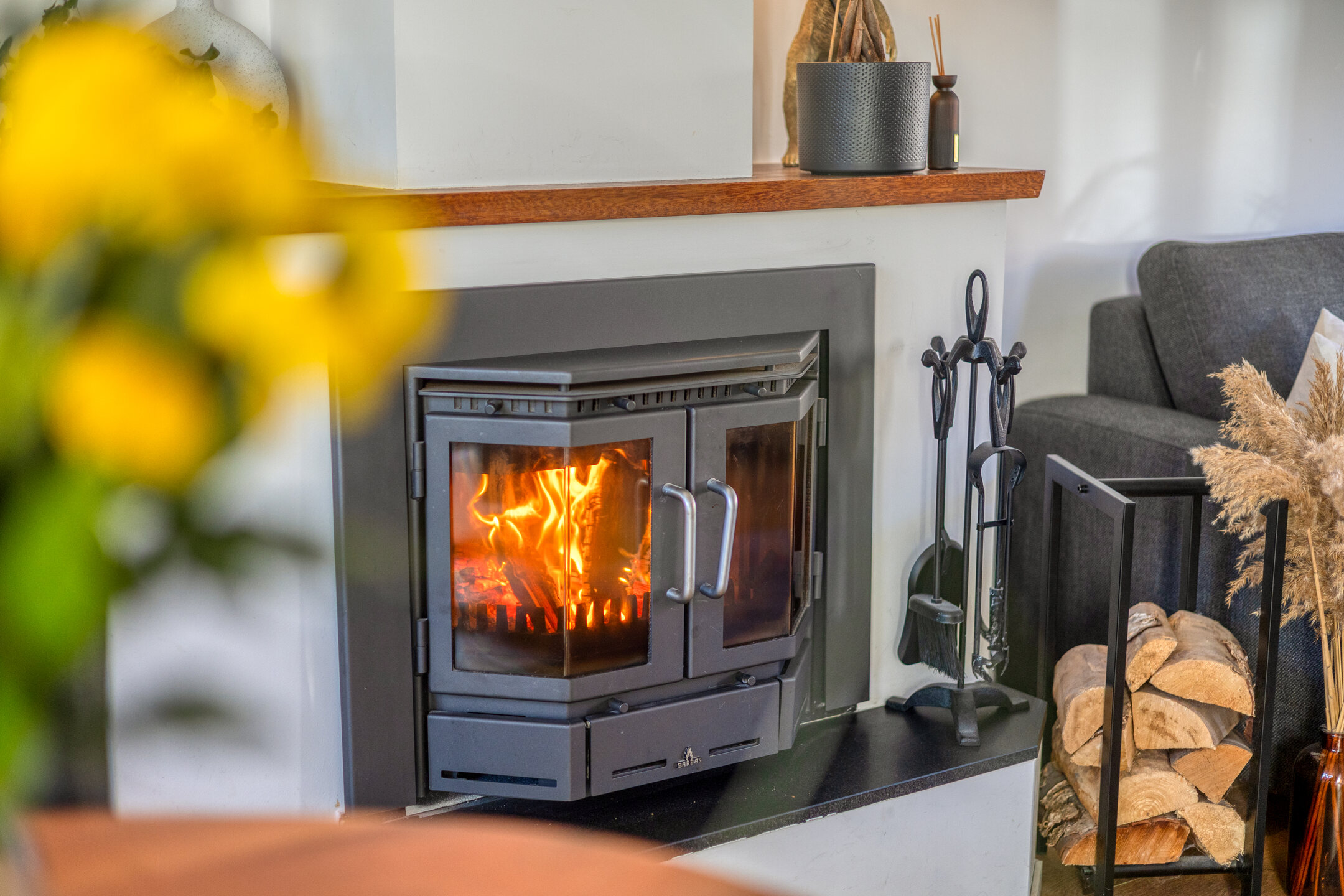– de woonkamer is uitgebouwd aan de voorzijde en beschikt over een fraaie eikenhouten vloer, een gezellige, houtgestookte open haard en openslaande tuindeuren naar de achtertuin;