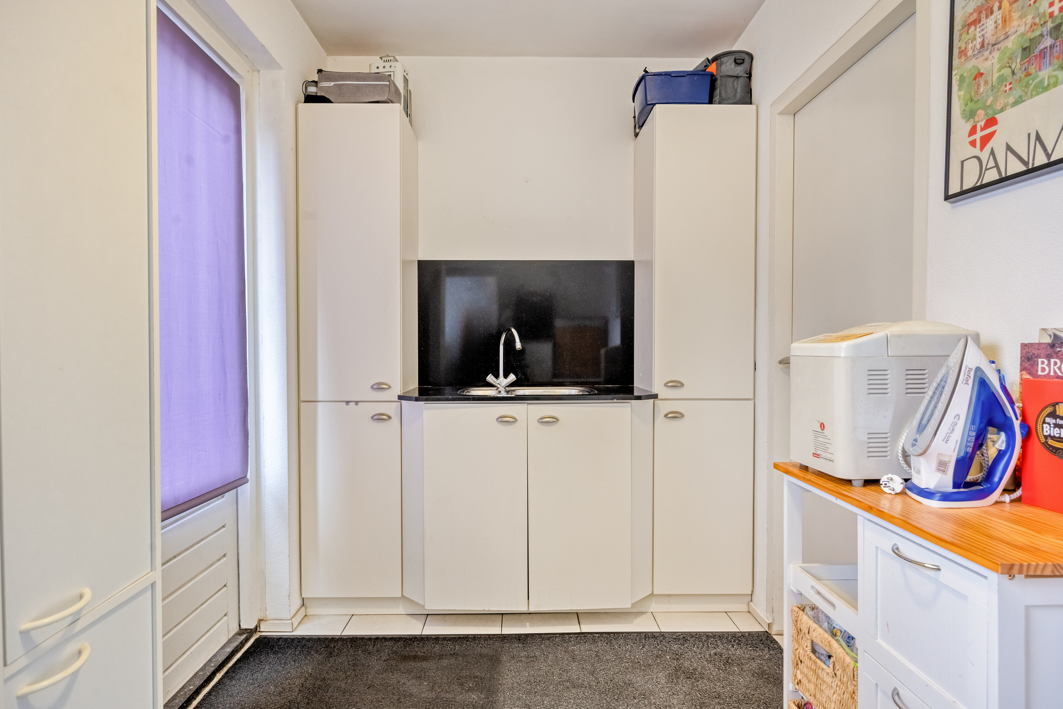 – Handige bijkeuken met extra spoelbak en aansluitingen voor wasapparatuur;