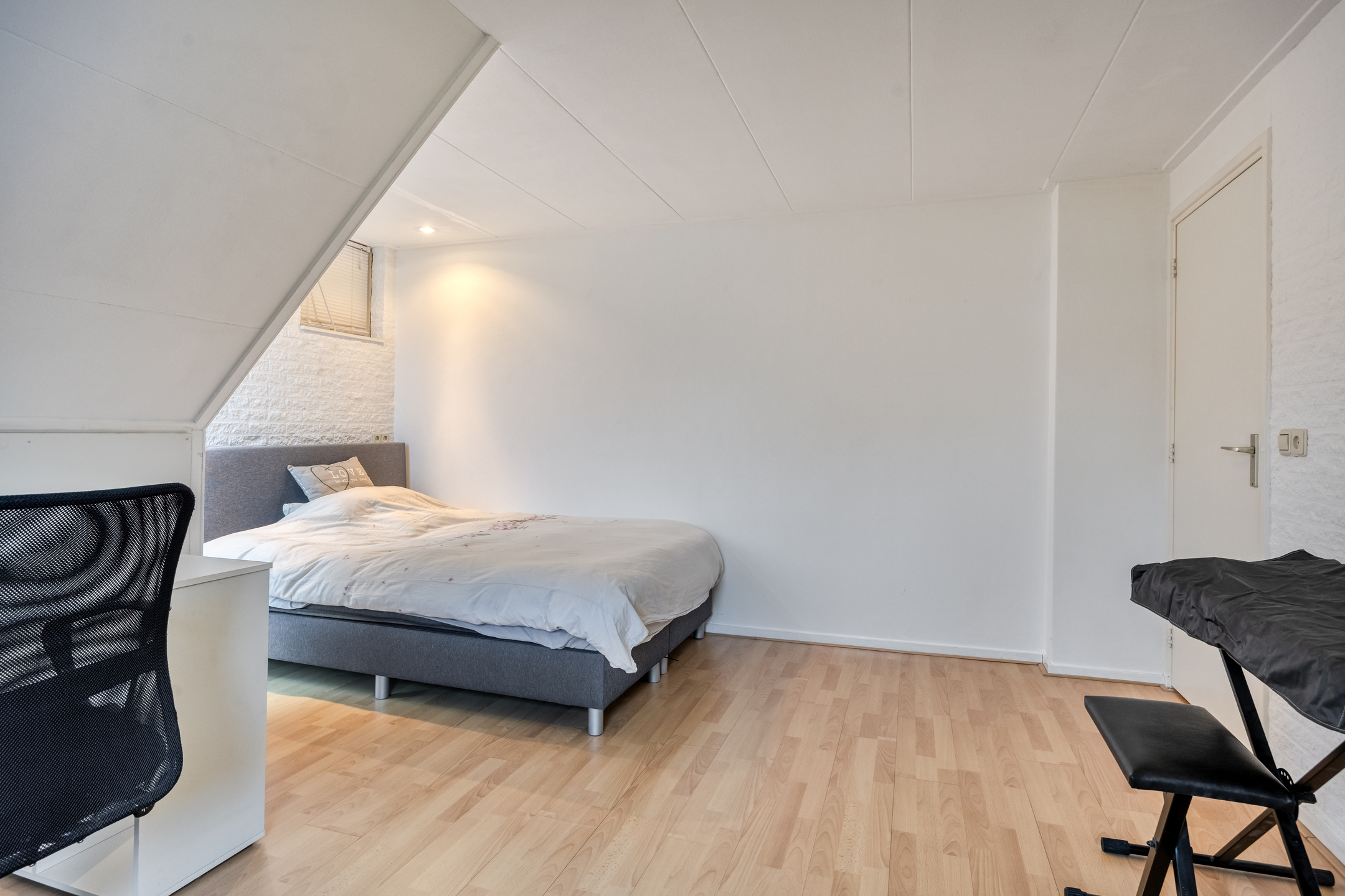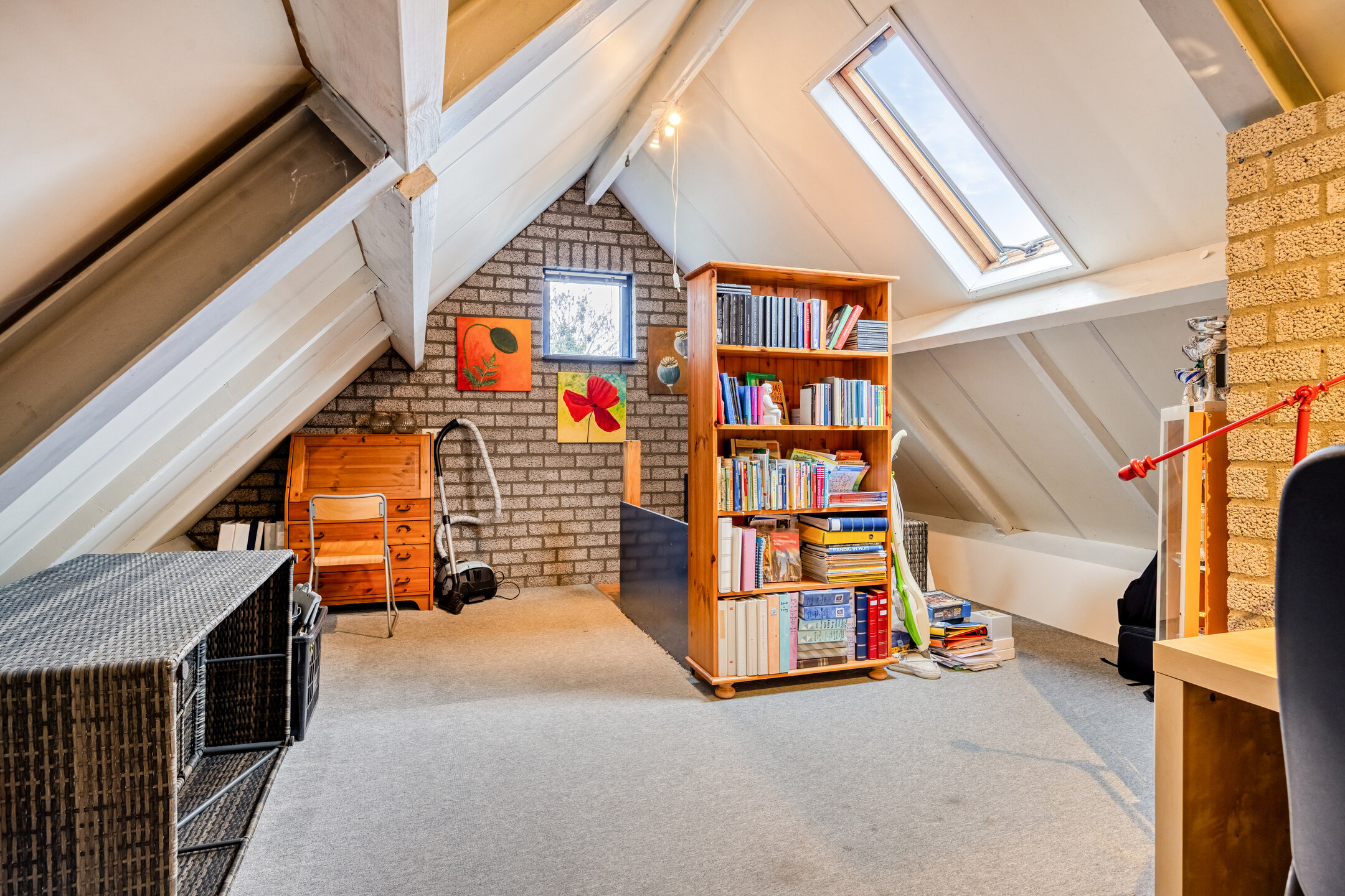 Ook op de eerste verdieping is er veel ruimte, naast 3 ruime slaapkamers tref je boven de werk-/ eetkamer nog een grote zolderkamer aan. Kortom een ruim opgezet huis met een fijne tuin.