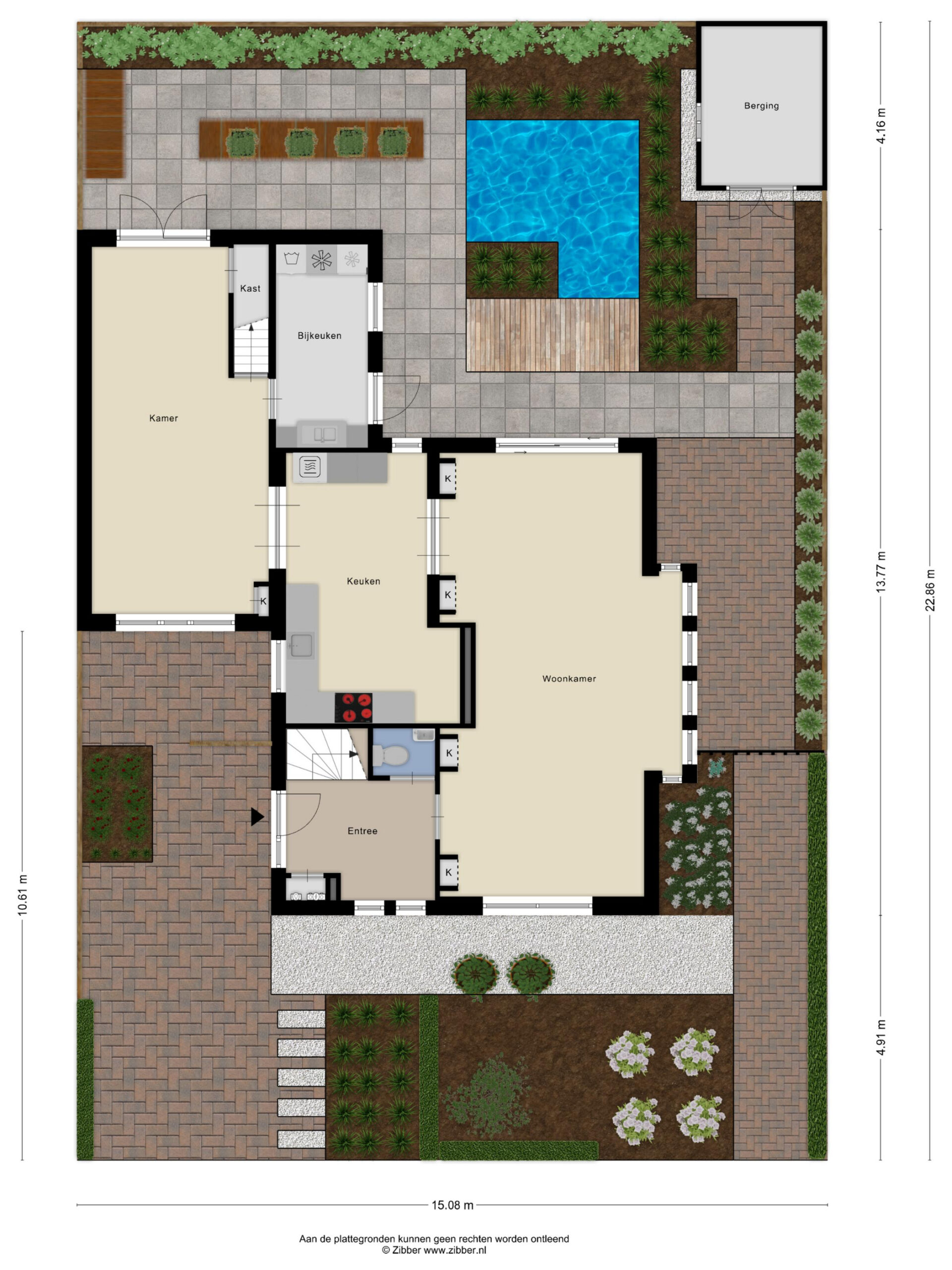 - Oppervlakte hoofdtuin ca. 90 m2