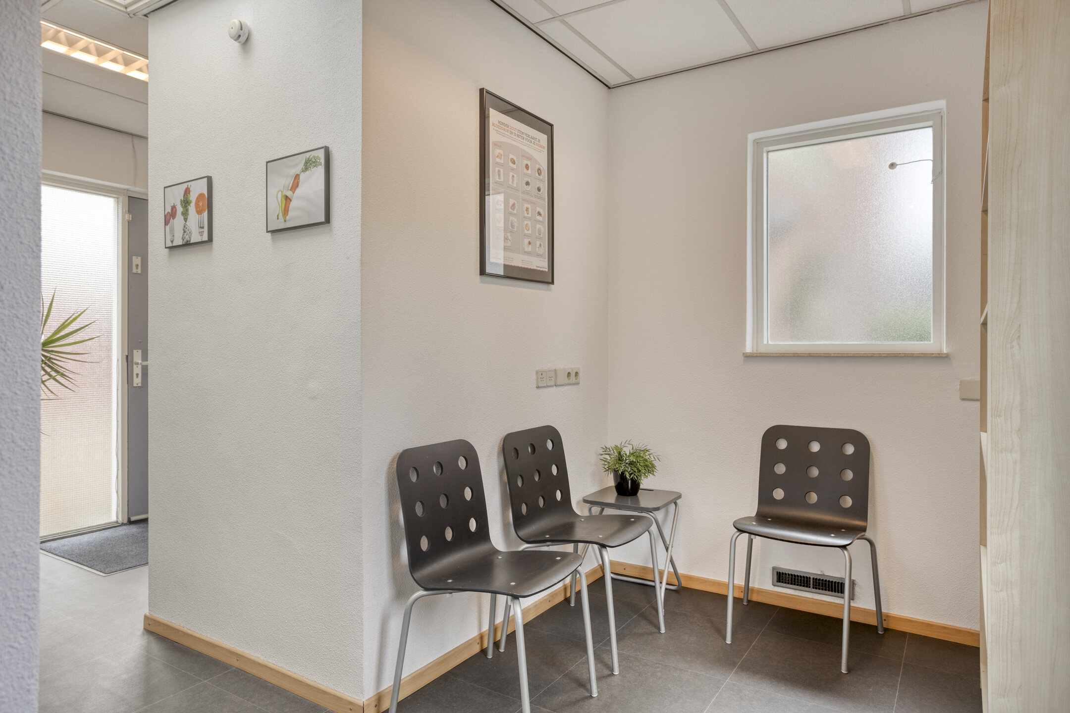 – de aangebouwde praktijkruimte een eigen entree heeft en ideaal is voor werk aan huis, salon/praktijk of kantoor, voorzien van airco en luchtverwarming en een eigen toilet;