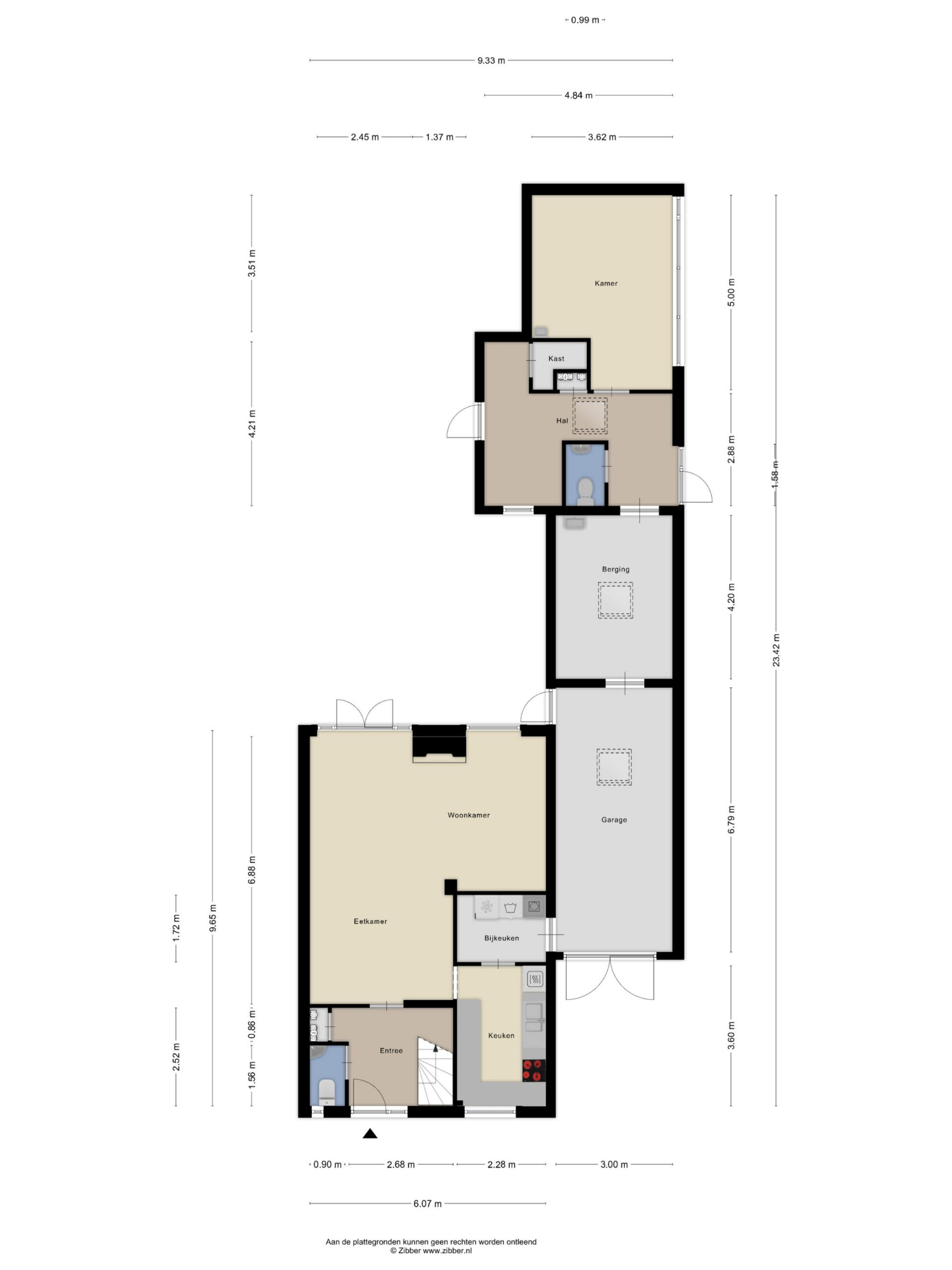 – de hal beschikt over een garderobe nis, toilet en toegang biedt tot de woonkamer;