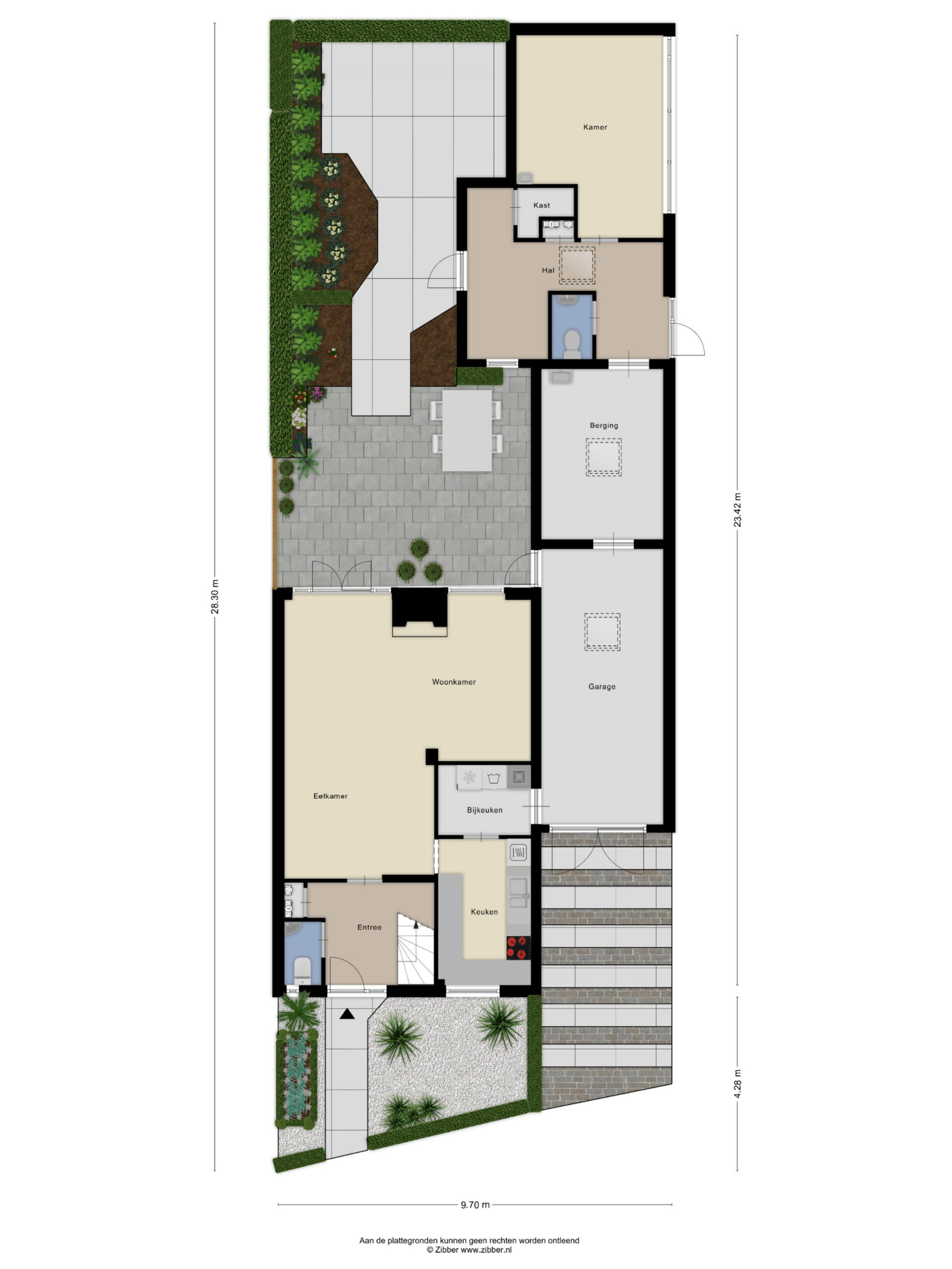 – de garage, oprit en het dakterras op het zuidoosten extra gebruiksgemak en comfort bieden;