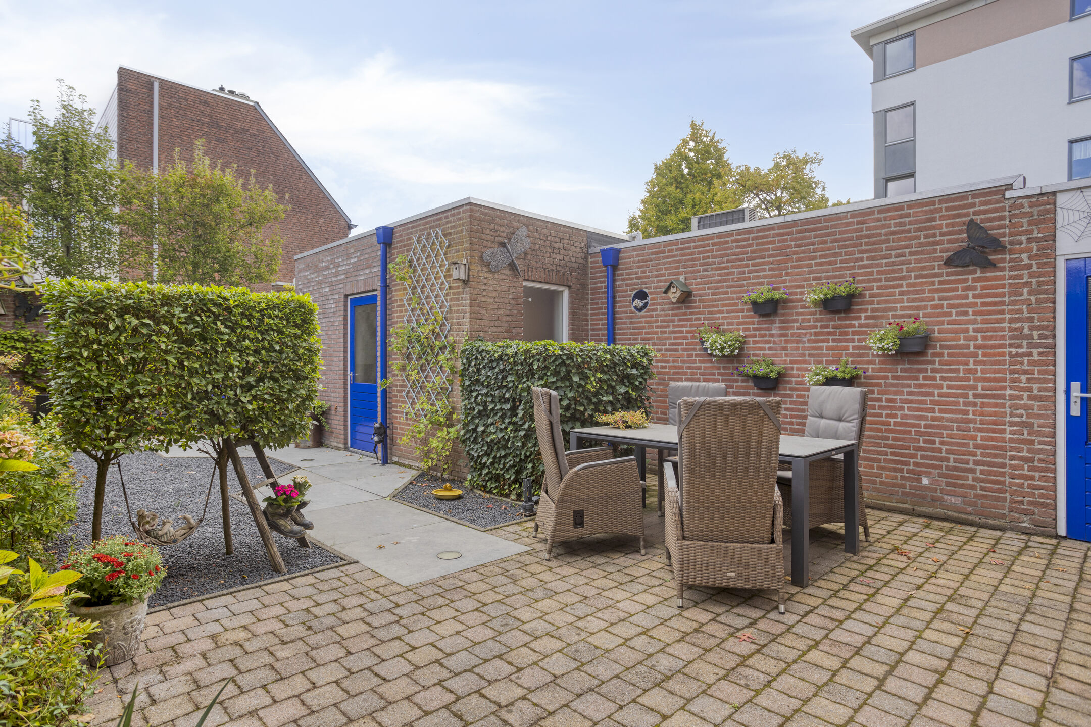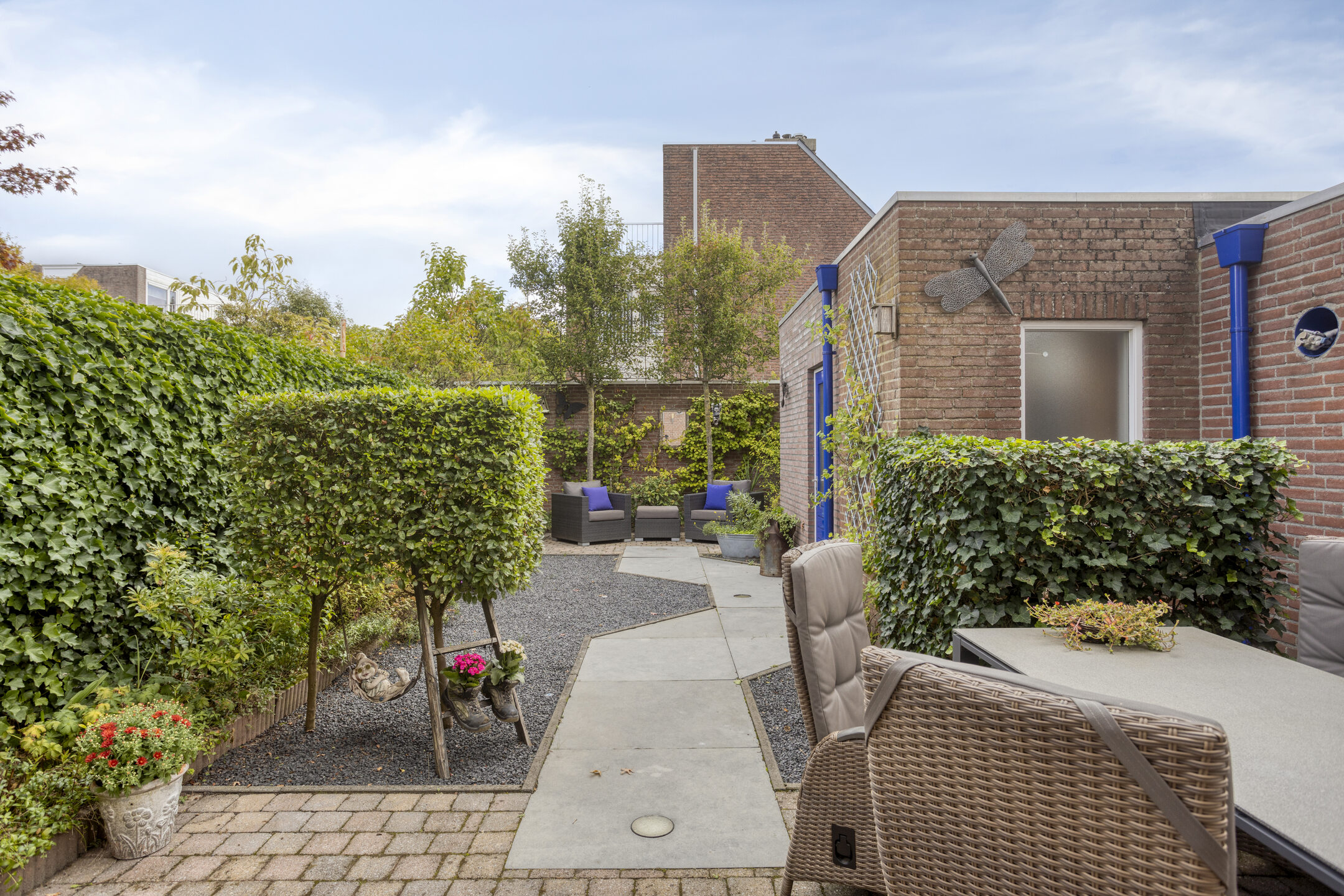 Buiten is het eveneens genieten. De fraai aangelegde achtertuin biedt meerdere zitgedeeltes, borders en volop privacy. De garage biedt veel bergruimte en is bereikbaar via de oprit, waar je met gemak op eigen terrein parkeert. Alles aan deze woning is uitstekend onderhouden en instapklaar voor de volgende bewoners.