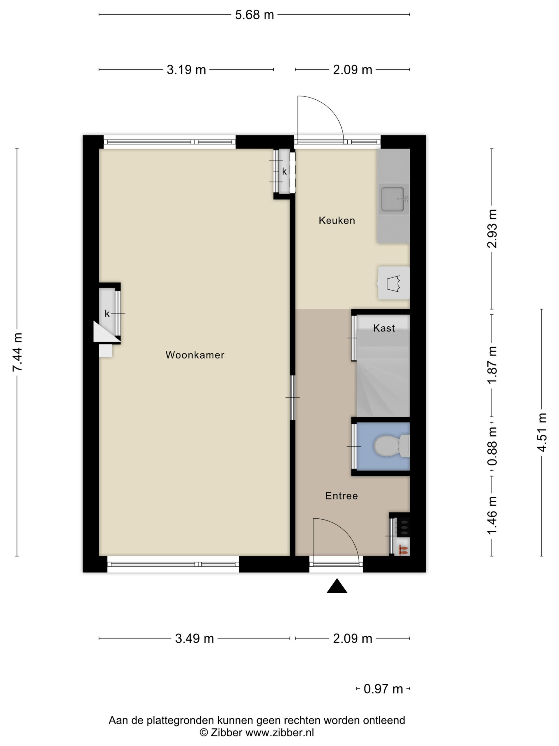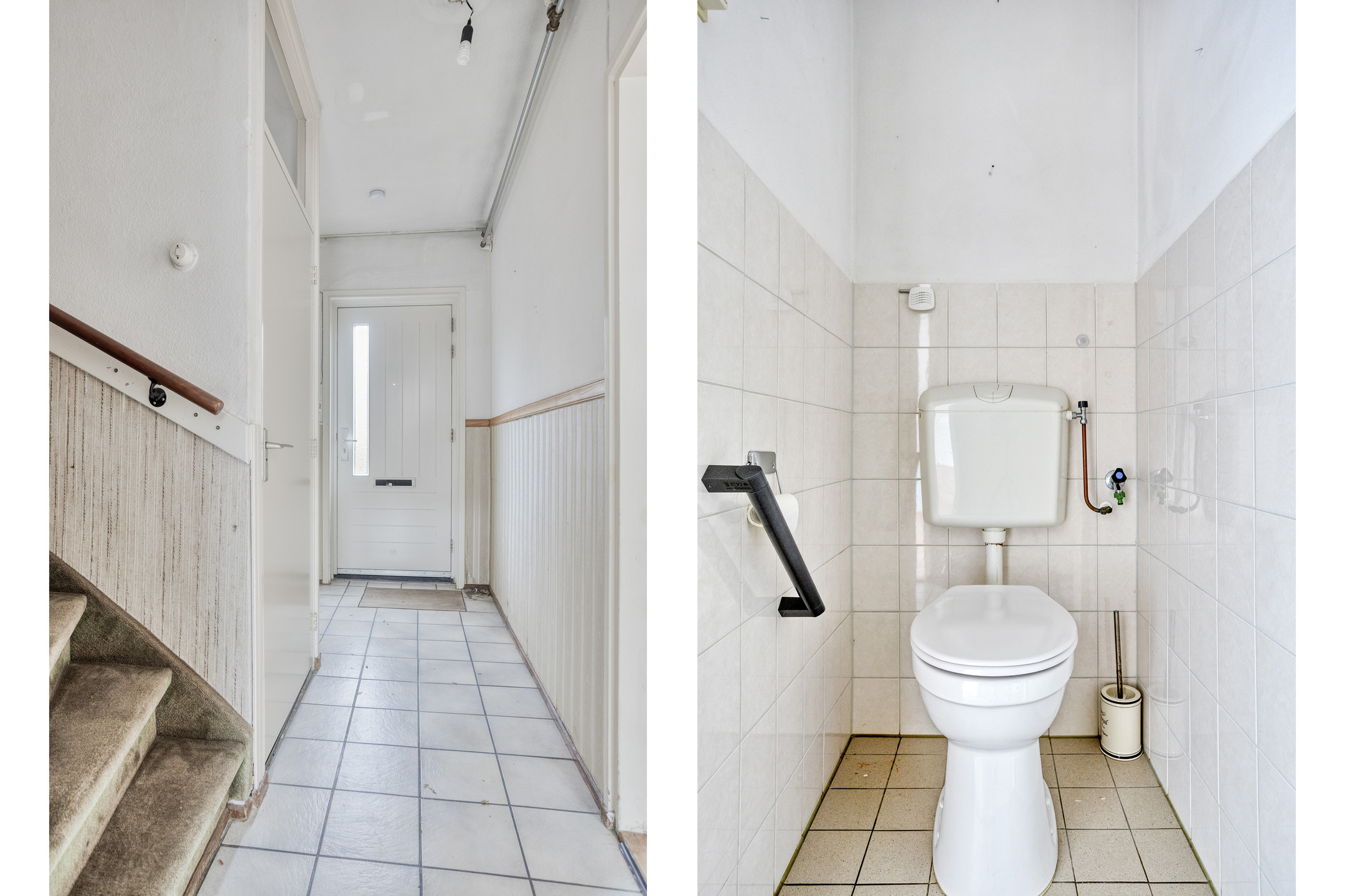 – in de hal zich de meterkast en een eenvoudig uitgevoerde toiletruimte bevinden, alsmede de trapopgang naar de eerste verdieping;