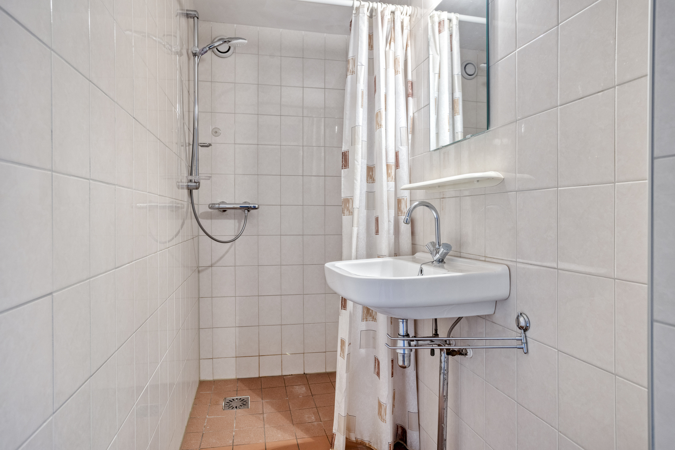 – de badkamer eenvoudig doch netjes is afgewerkt en is voorzien van een douche en wastafel.
