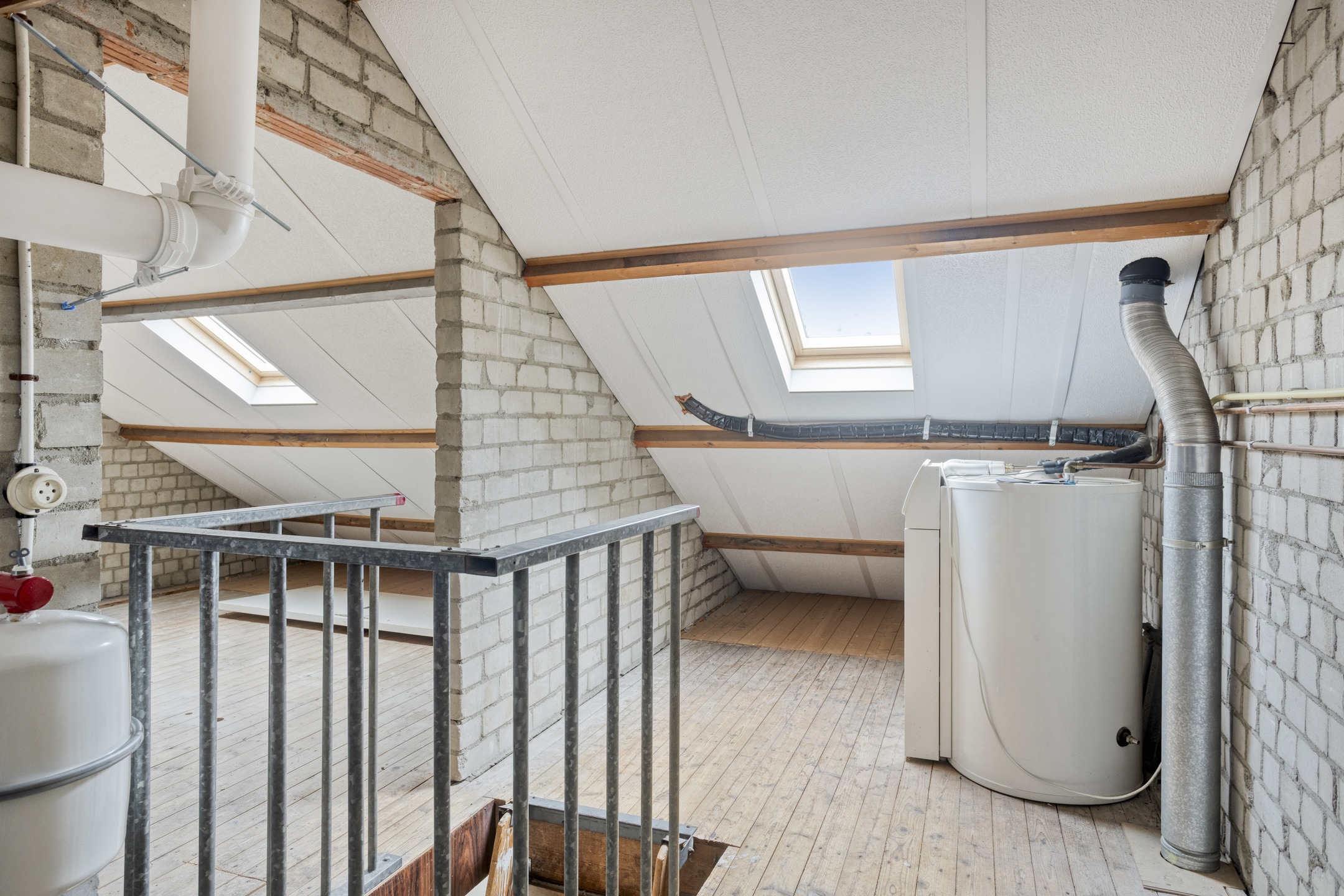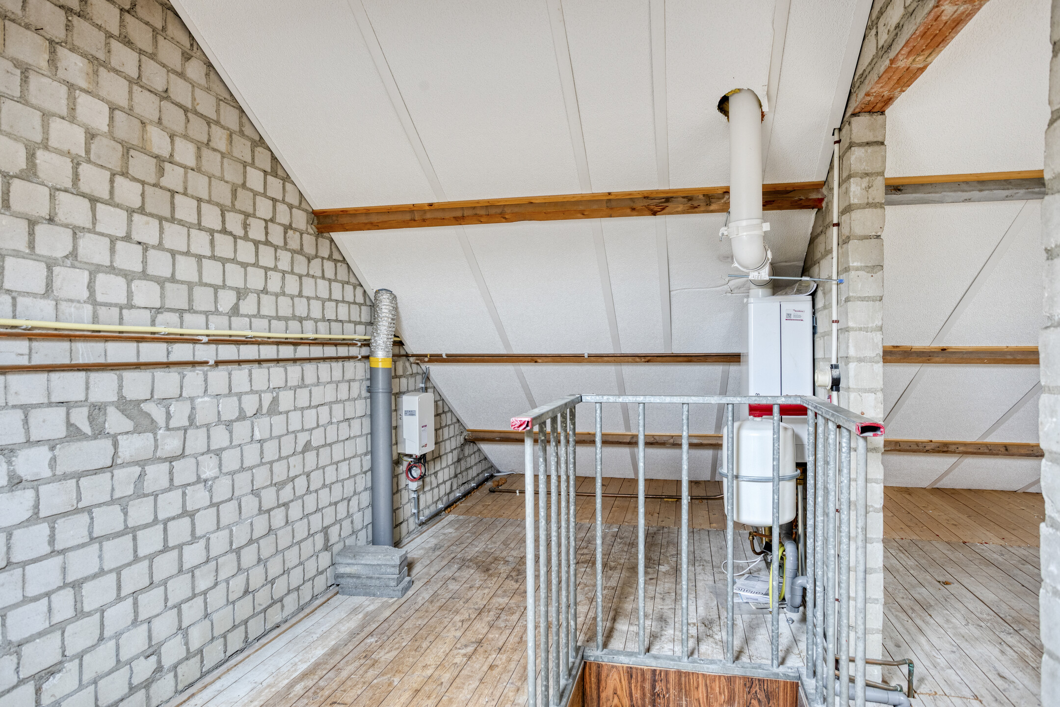– de tweede verdieping bereikbaar is via een vlizotrap en beschikt over een voorzolder met cv-ketel, zonneboiler, witgoedaansluitingen, mechanische ventilatie en berging;