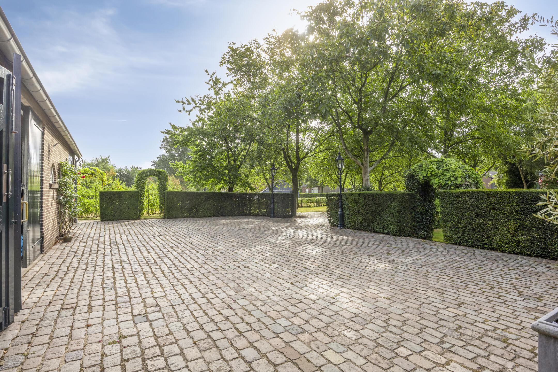 De royale oprit en garage bieden plaats aan meerdere auto’s; parkeren is hier nooit een probleem. En wie na een drukke dag thuiskomt, vindt op dit landgoed de rust die de natuur biedt. Vogels, bloesem in de lente, rijke herfstkleuren en het frisse groen in de zomer: elk seizoen beleef je hier opnieuw.