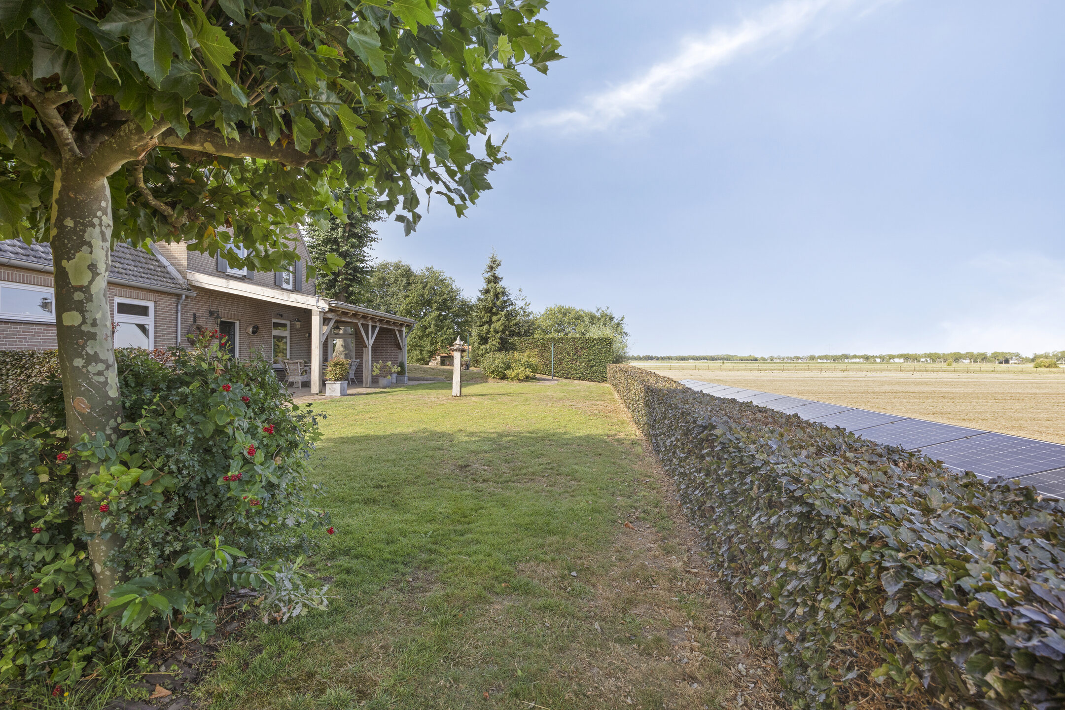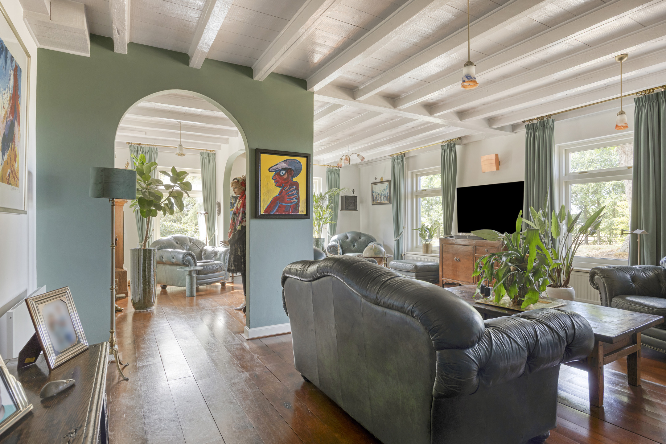 Wie hier thuiskomt, ervaart rust en ruimte. De oprijlaan leidt naar een chique entree, terwijl de volwassen bomen en het groen rondom het huis een gevoel van beslotenheid en geborgenheid geven. Op het perceel van ruim 5.000 m² is altijd iets te ontdekken: een appelboomgaard die in elk seizoen van kleur verandert, een tuin die uitnodigt tot wandelen, spelen of ontspannen, en een eigen zonnepark dat de woning voorziet van duurzame energie.