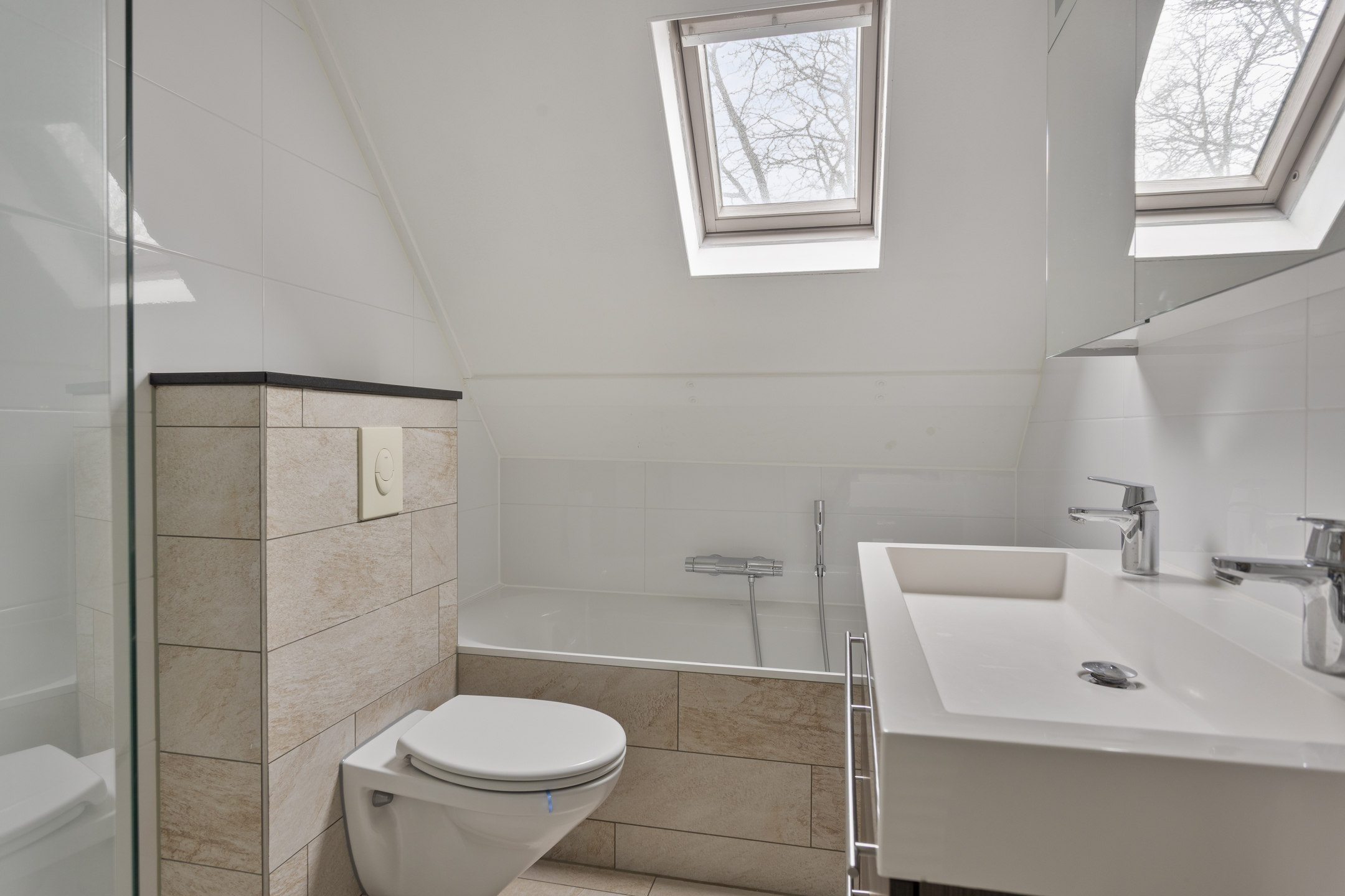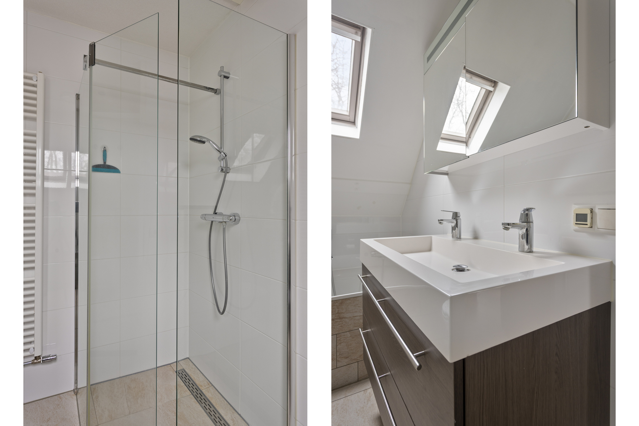- Badkamervoorzieningen Ligbad, toilet, dubbele wastafel, wastafelmeubel, inloopdouche