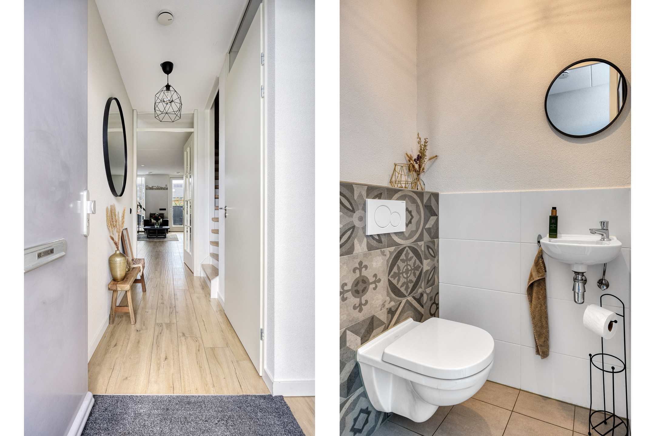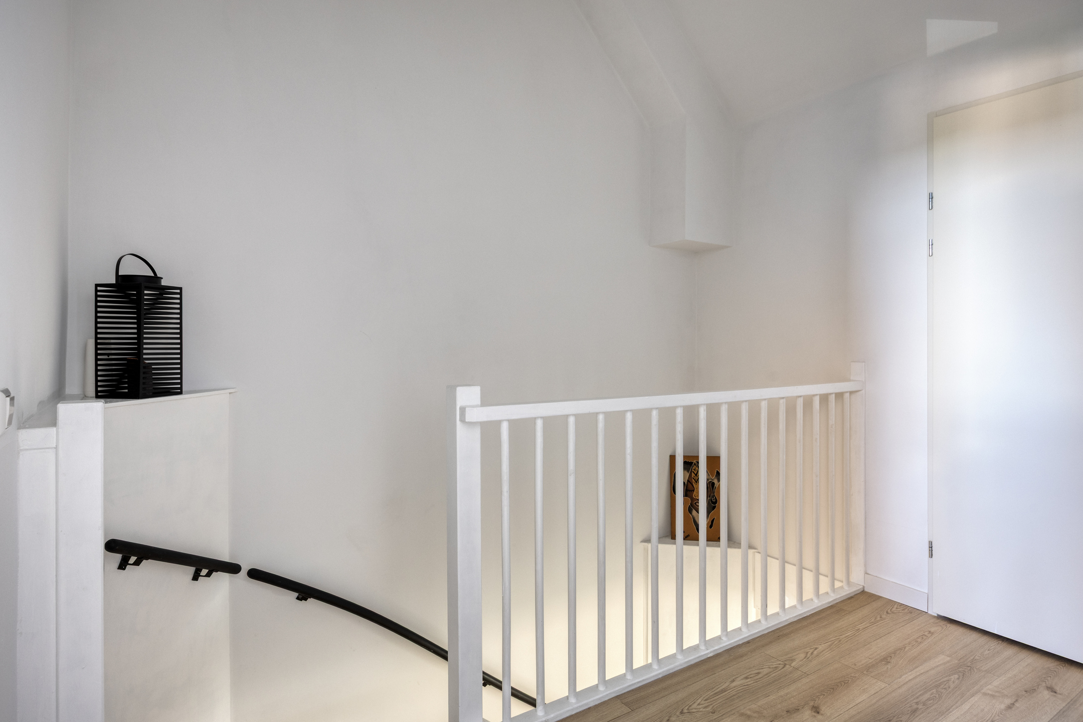 – op de begane grond de wanden zijn voorzien van een fijne korrel stukwerk en een keramische parketvloer ligt die perfect combineert met de vloerverwarming;