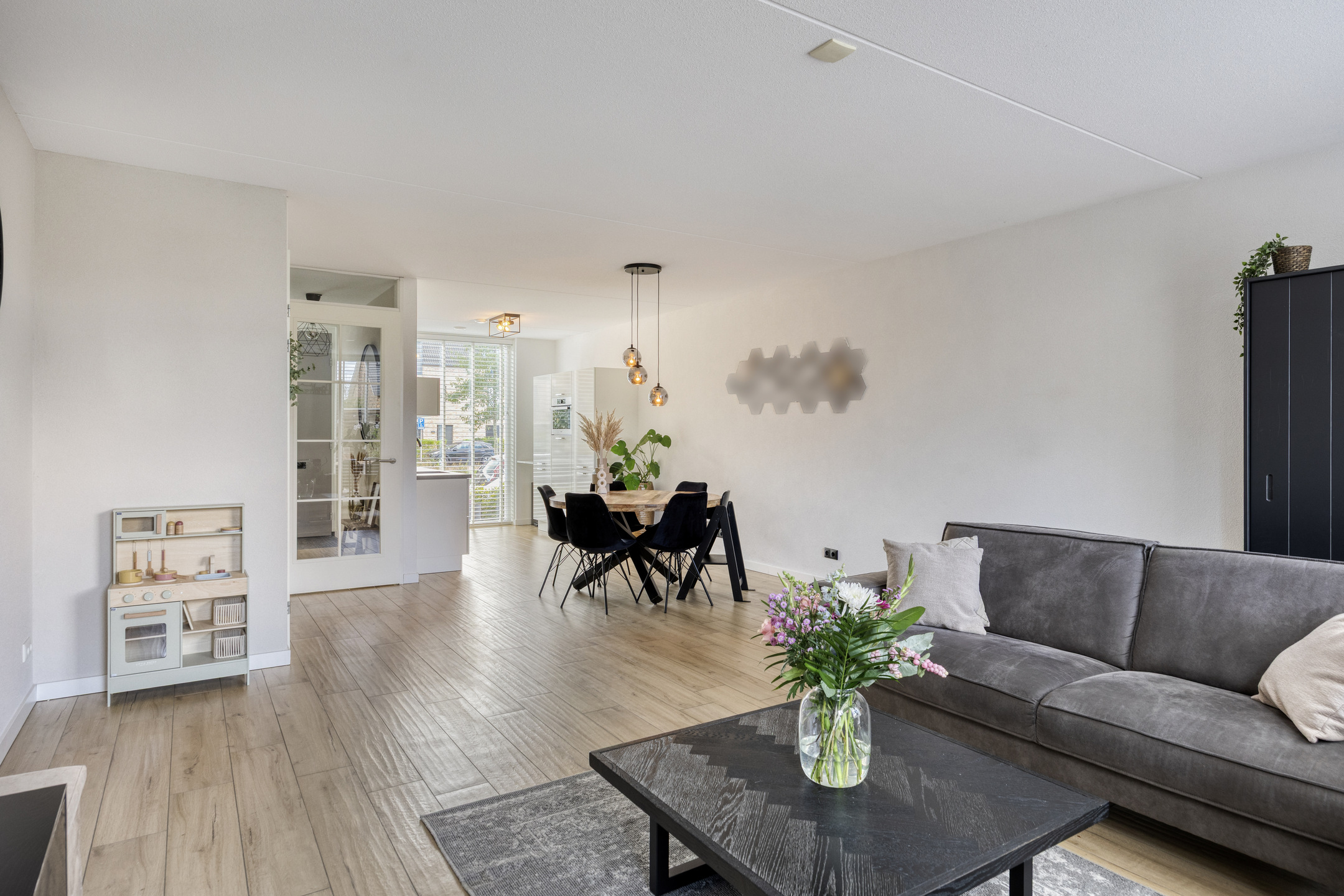 – de grote raampartijen aan de voor- en achterzijde van de woning een enorme hoeveelheid licht naar binnenbrengen;