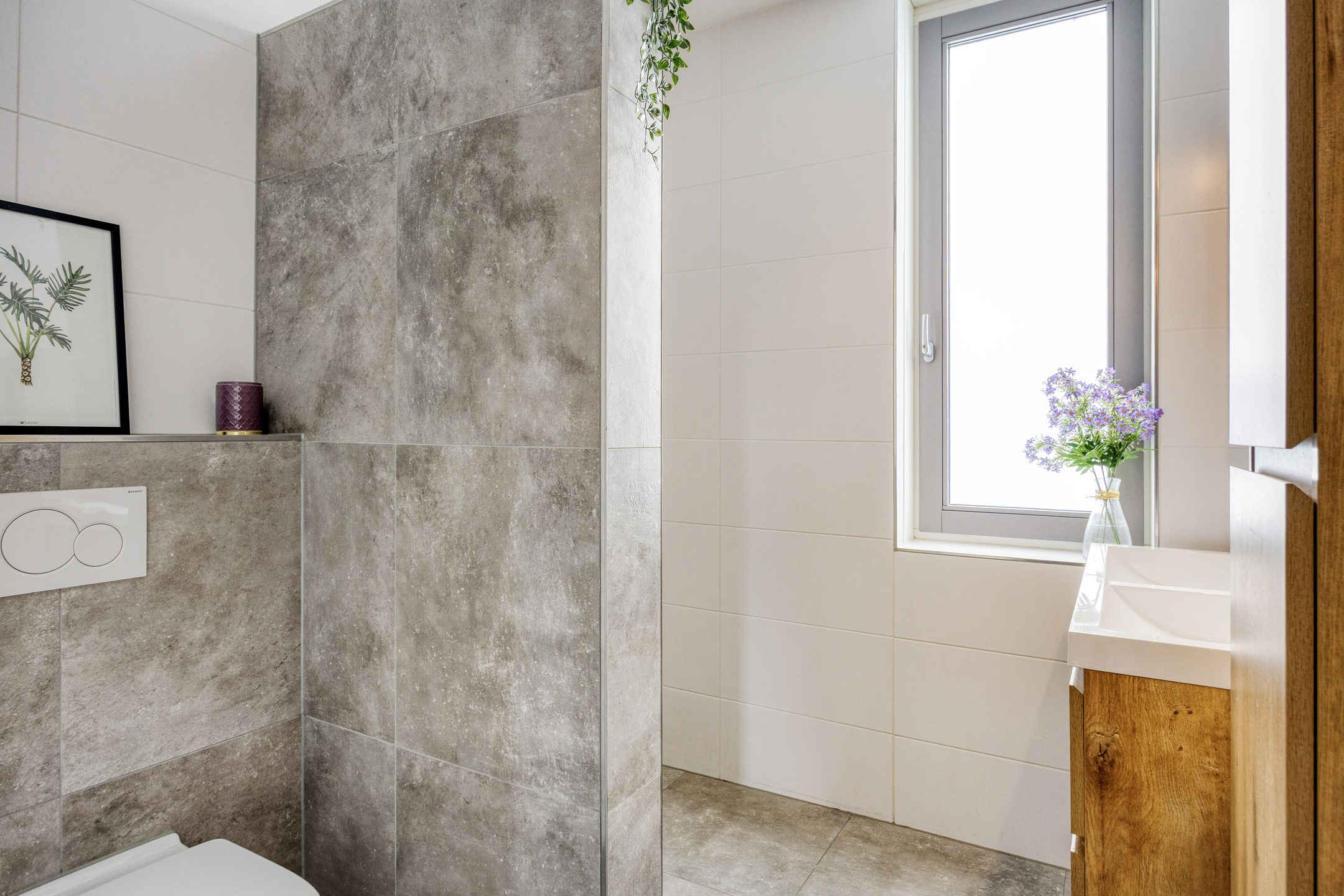 - Badkamervoorzieningen Toilet, dubbele wastafel, wastafelmeubel, inloopdouche
