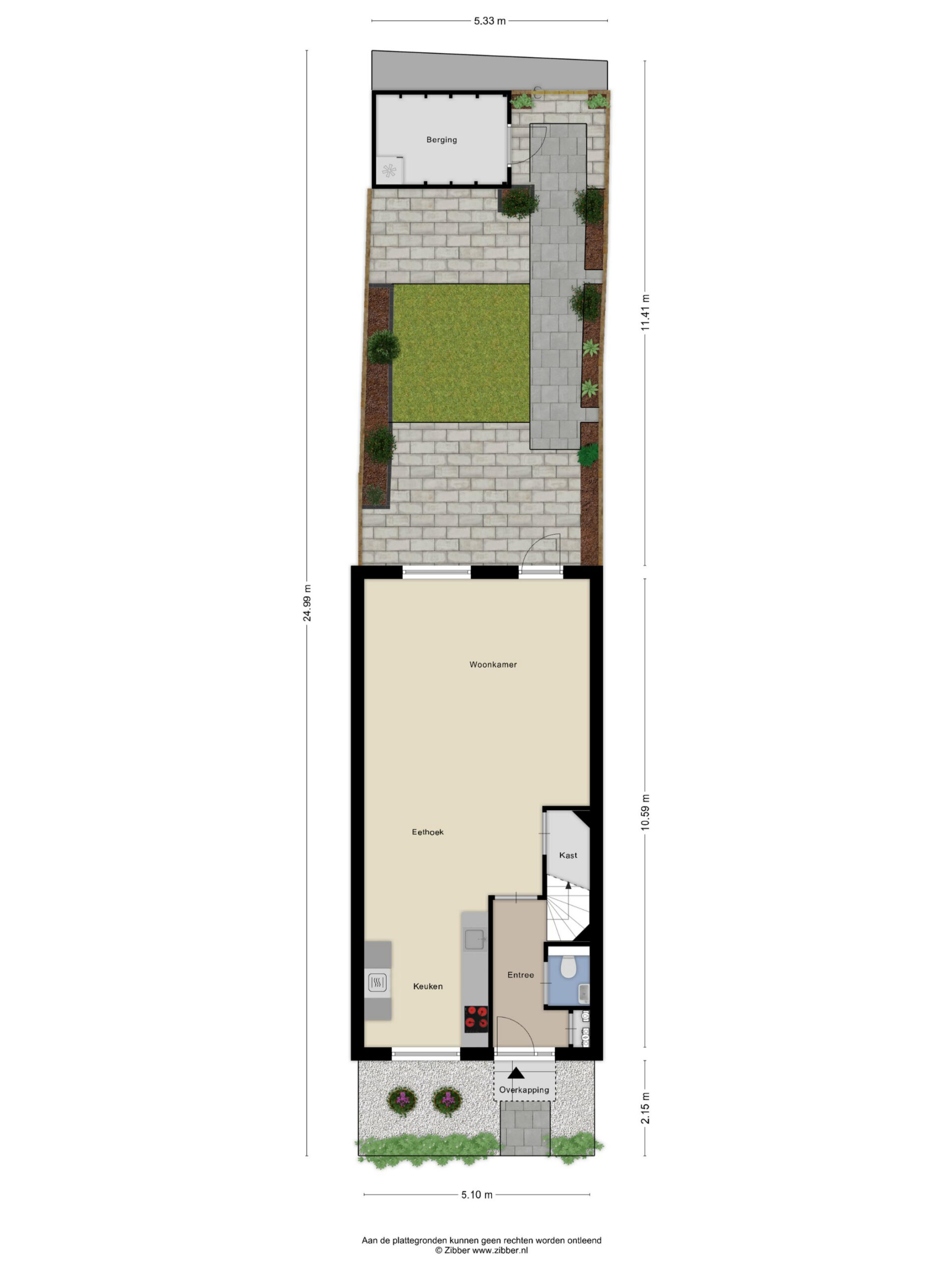 - Oppervlakte hoofdtuin ca. 53 m2