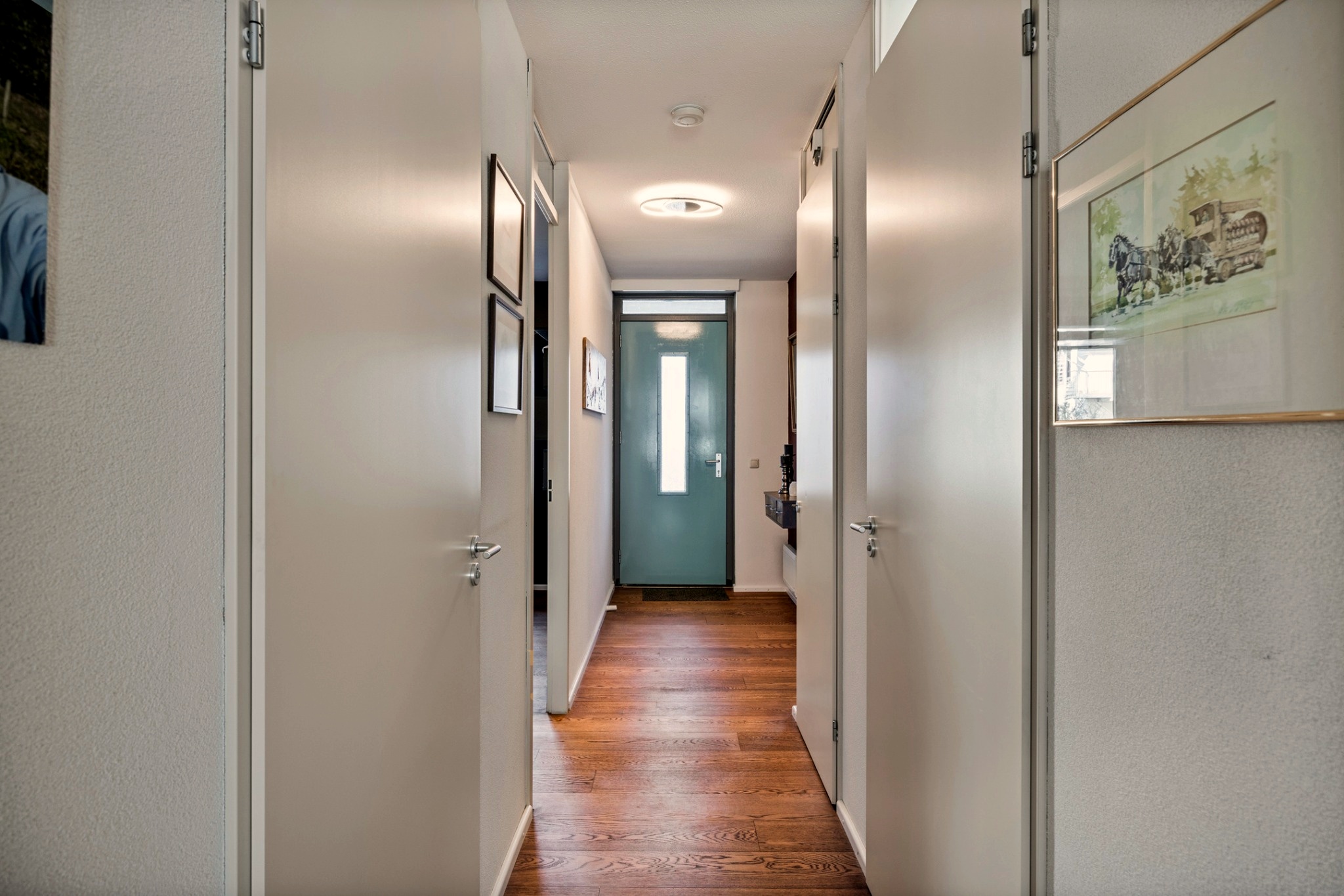 – de entree toegang biedt tot de hal met meterkast, garderoberuimte en de separate toiletruimte;