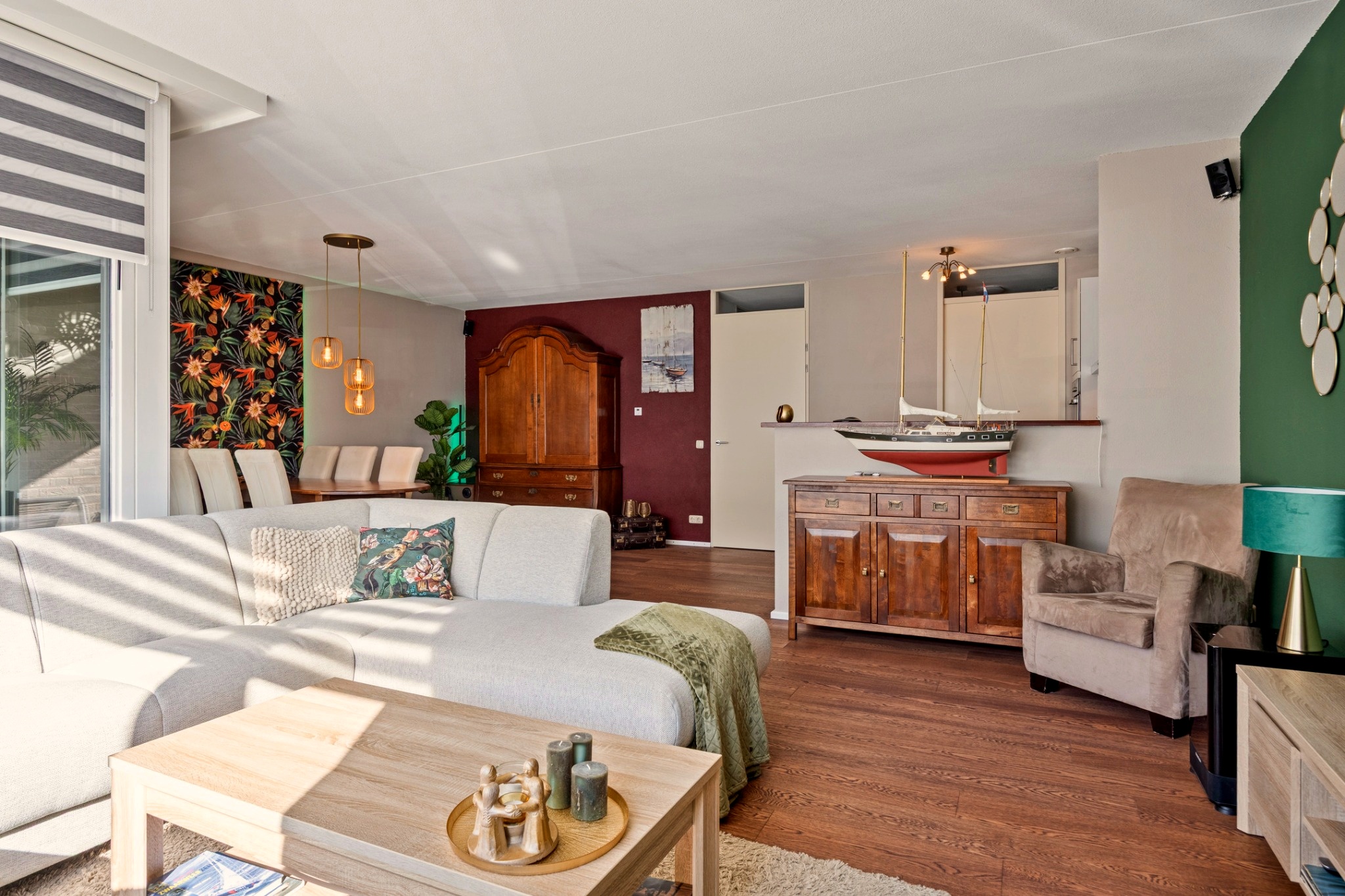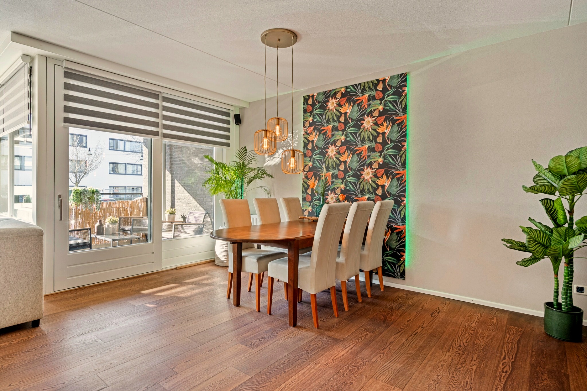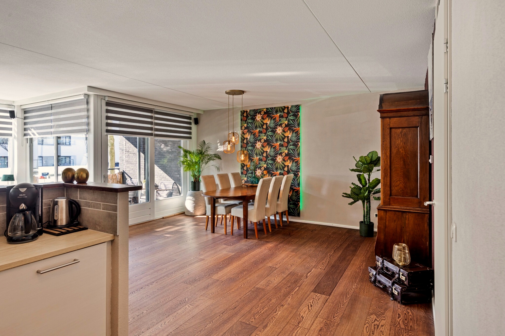 – de woonkamer prettig licht is door de grote raampartijen en ruimte biedt voor een comfortabele zithoek en een ruime eettafel;