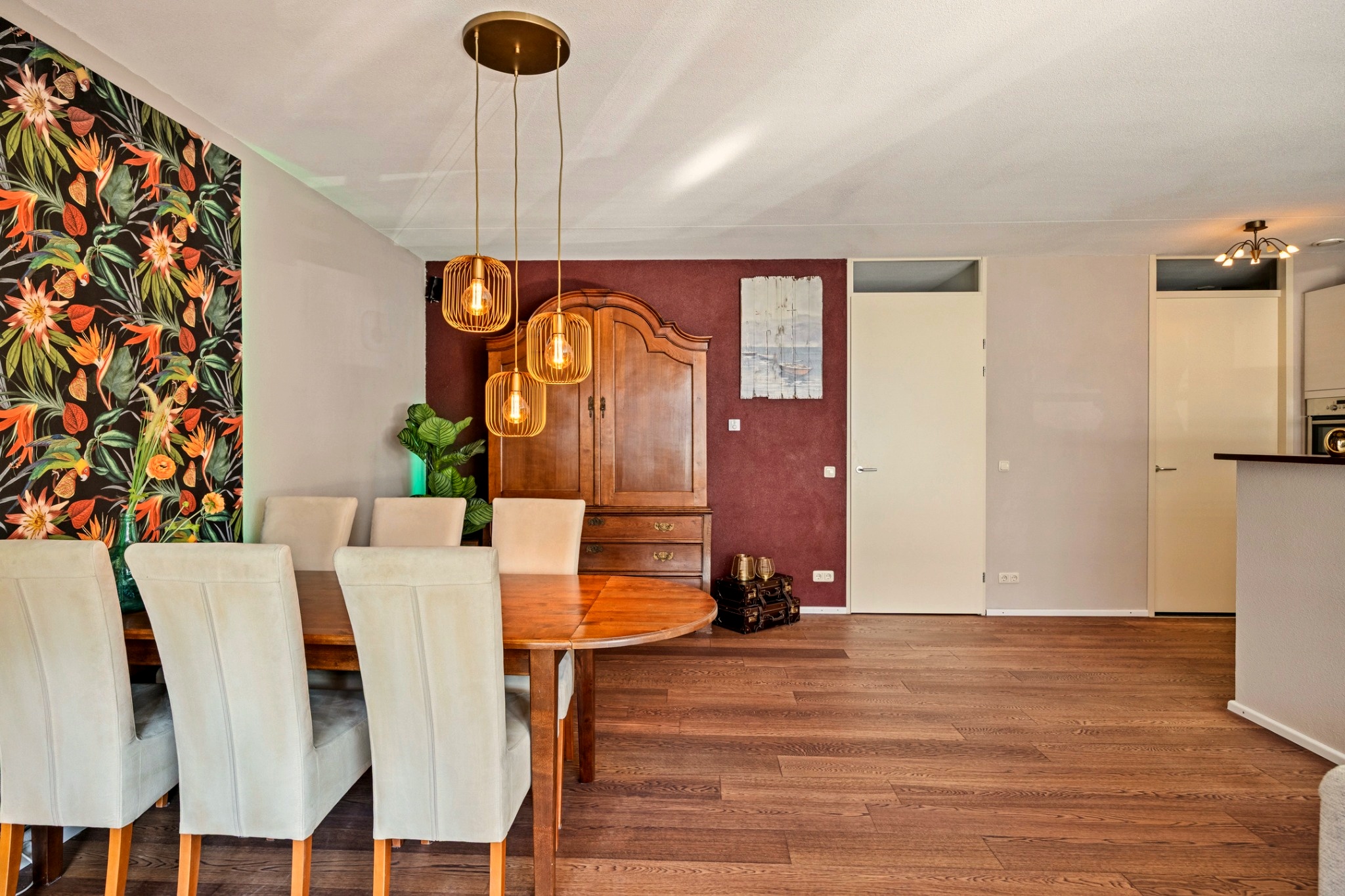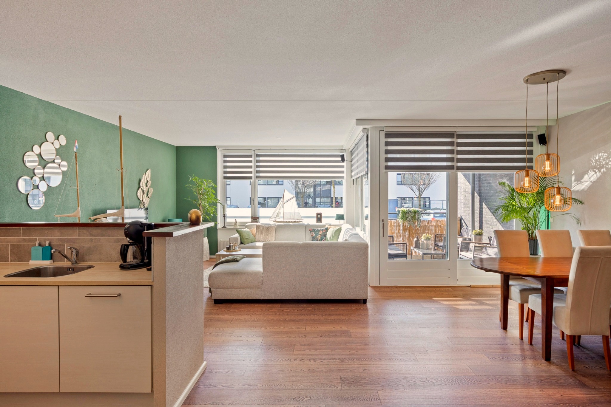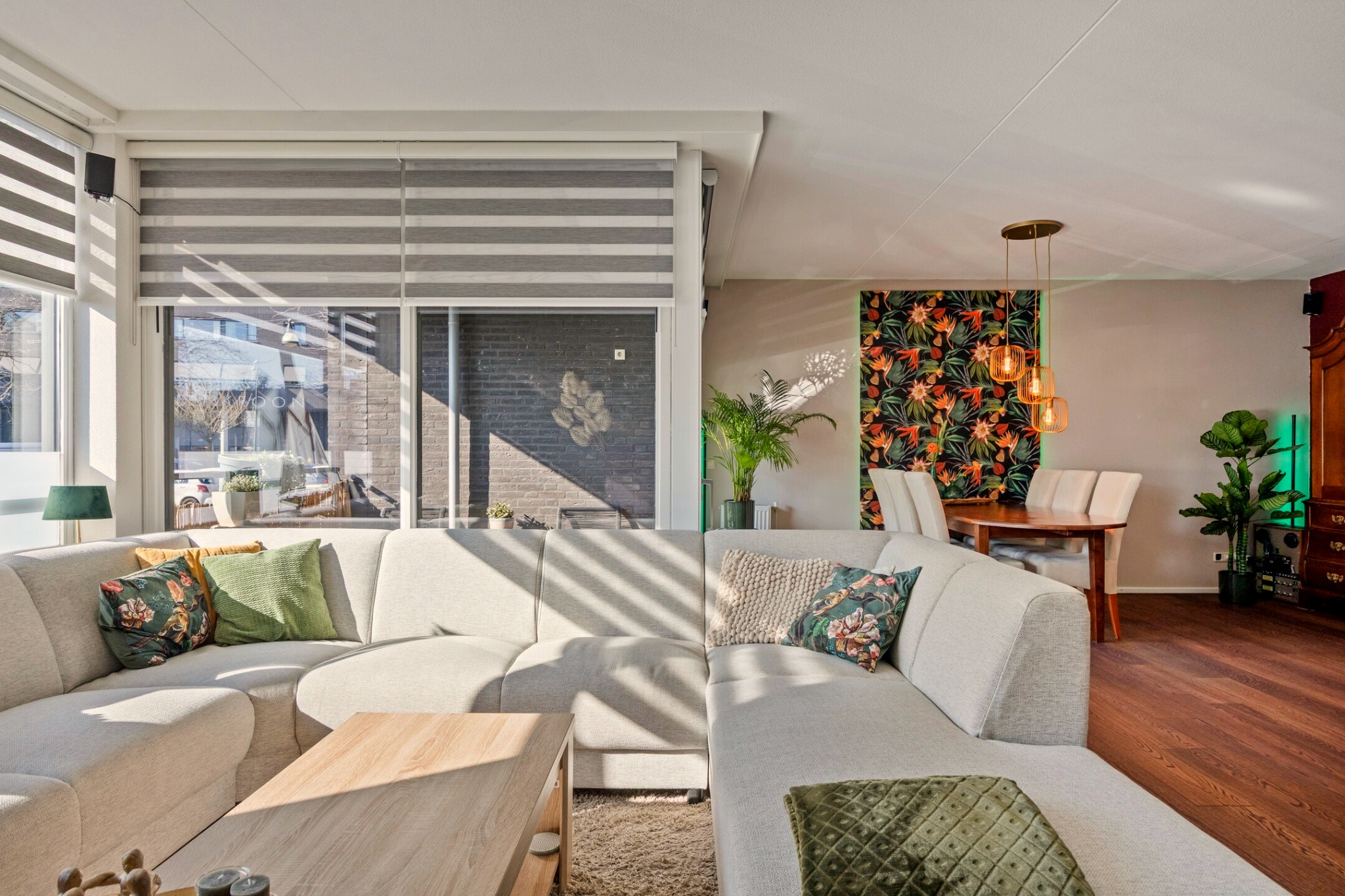 – de woonkamer prettig licht is door de grote raampartijen en ruimte biedt voor een comfortabele zithoek en een ruime eettafel;