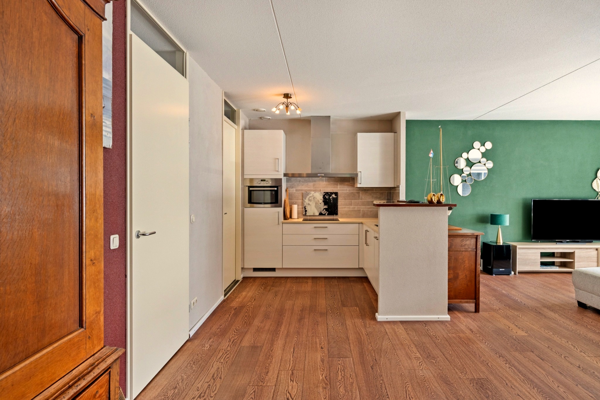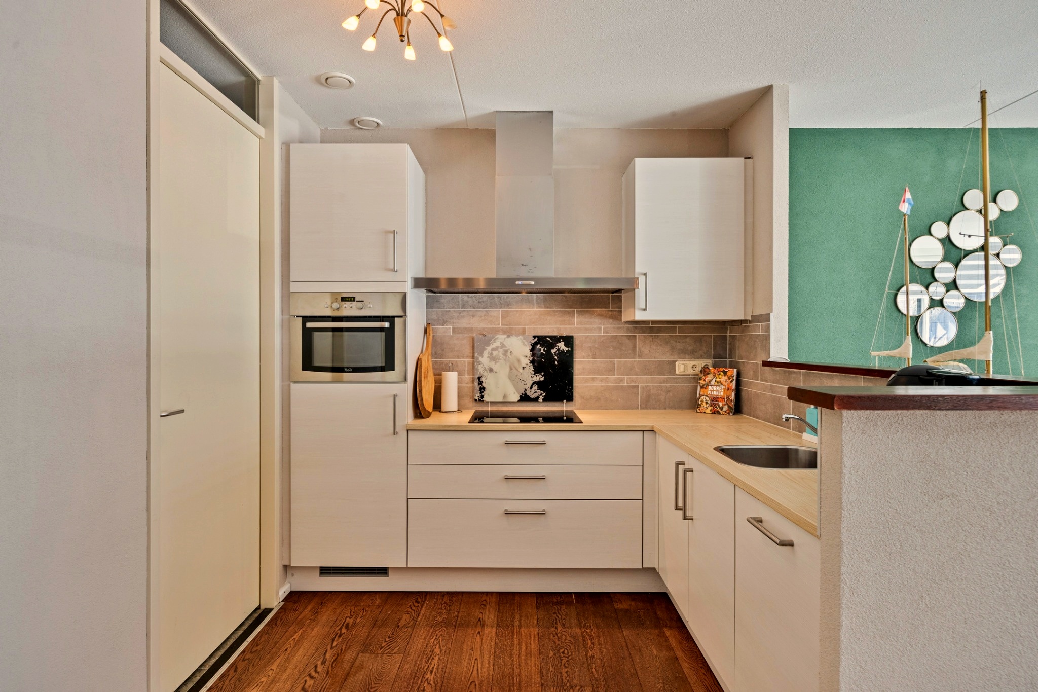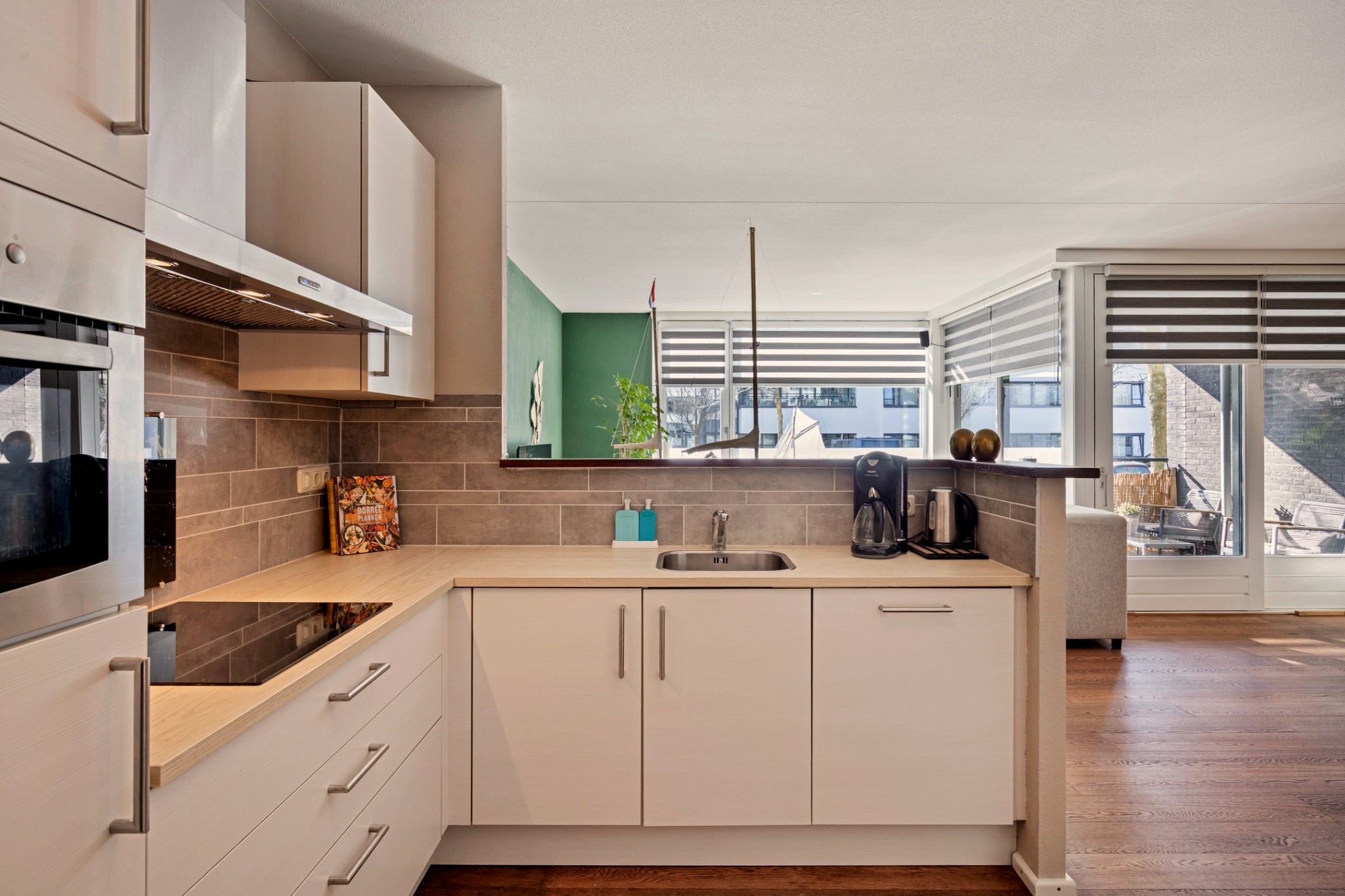 – de open, hoekopgestelde keuken circa zes jaar oud is en is voorzien van diverse inbouwapparatuur, waaronder een inductiekookplaat, afzuigkap, combi-magnetron, koelkast en een vaatwasser;