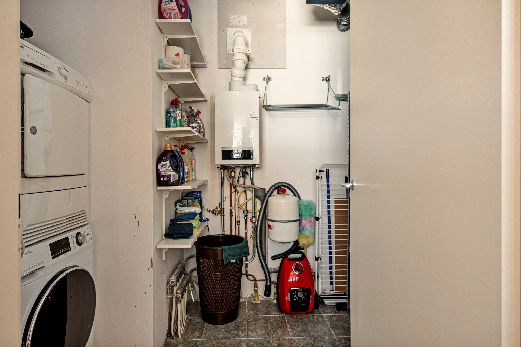 – er een praktische inpandige berging aanwezig is met de wasmachine- en drogeraansluiting en de opstelling van de cv-installatie;