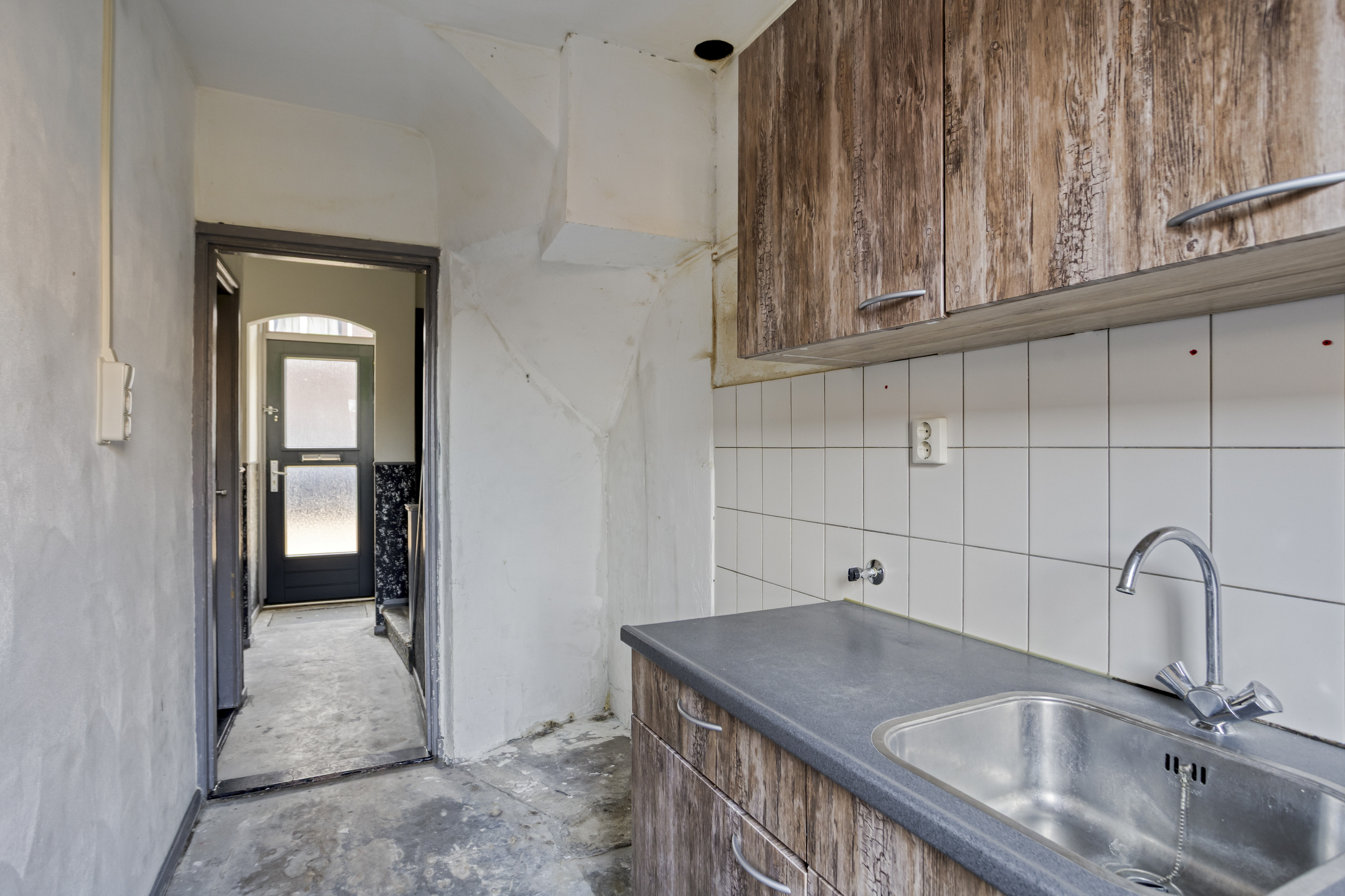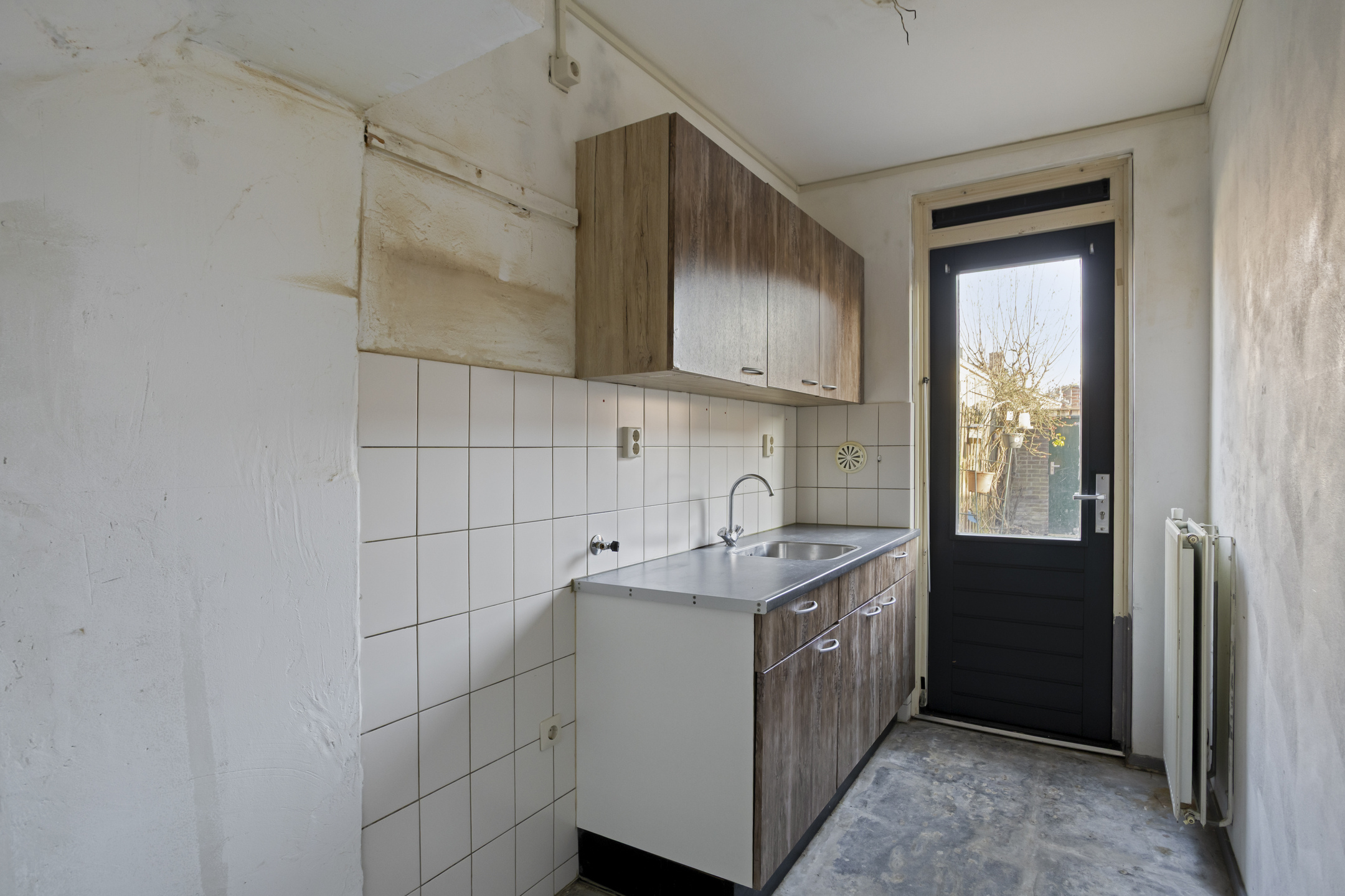 – er een gesloten keuken is met rechte opstelling en toegang tot de tuin;