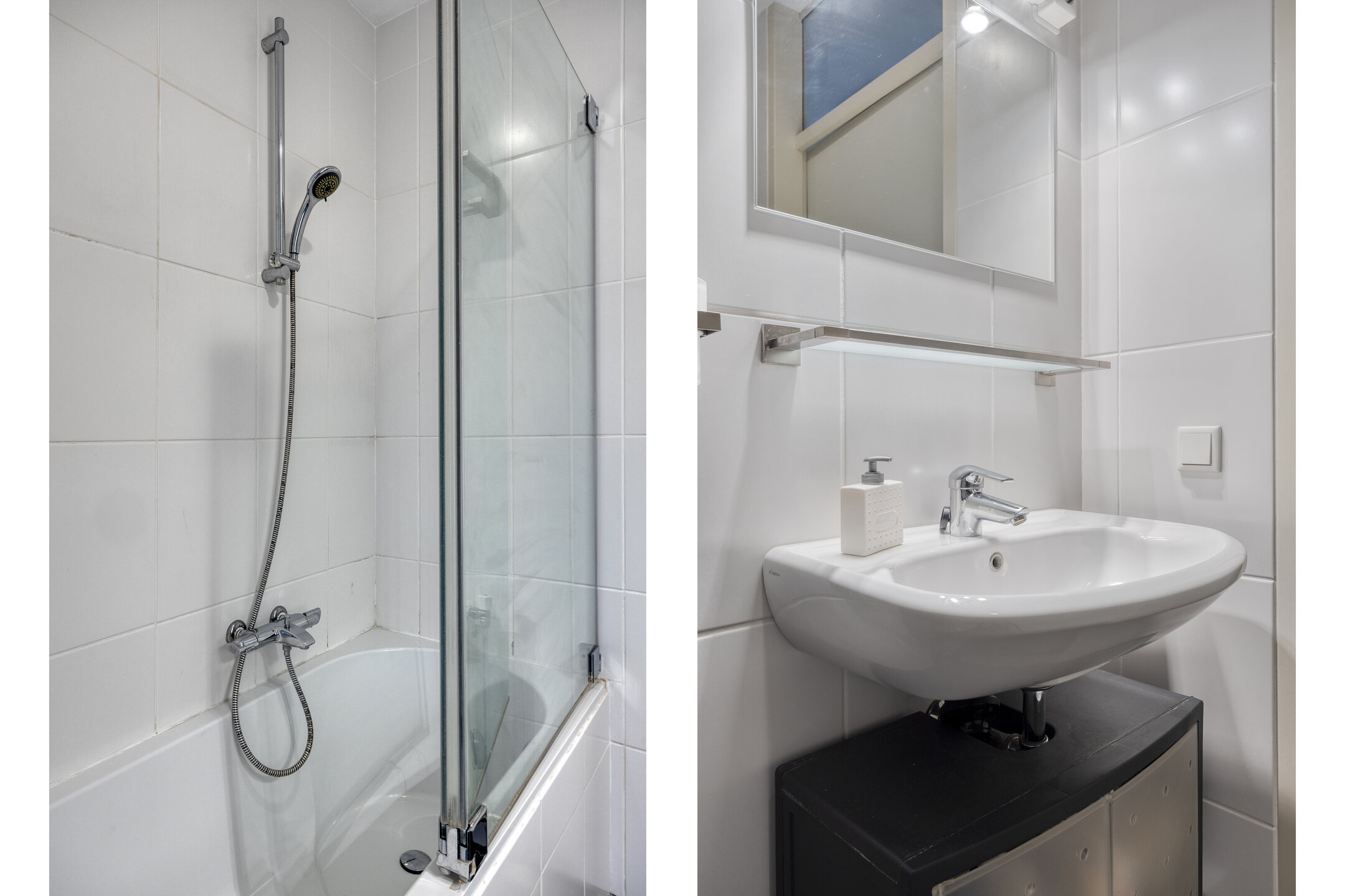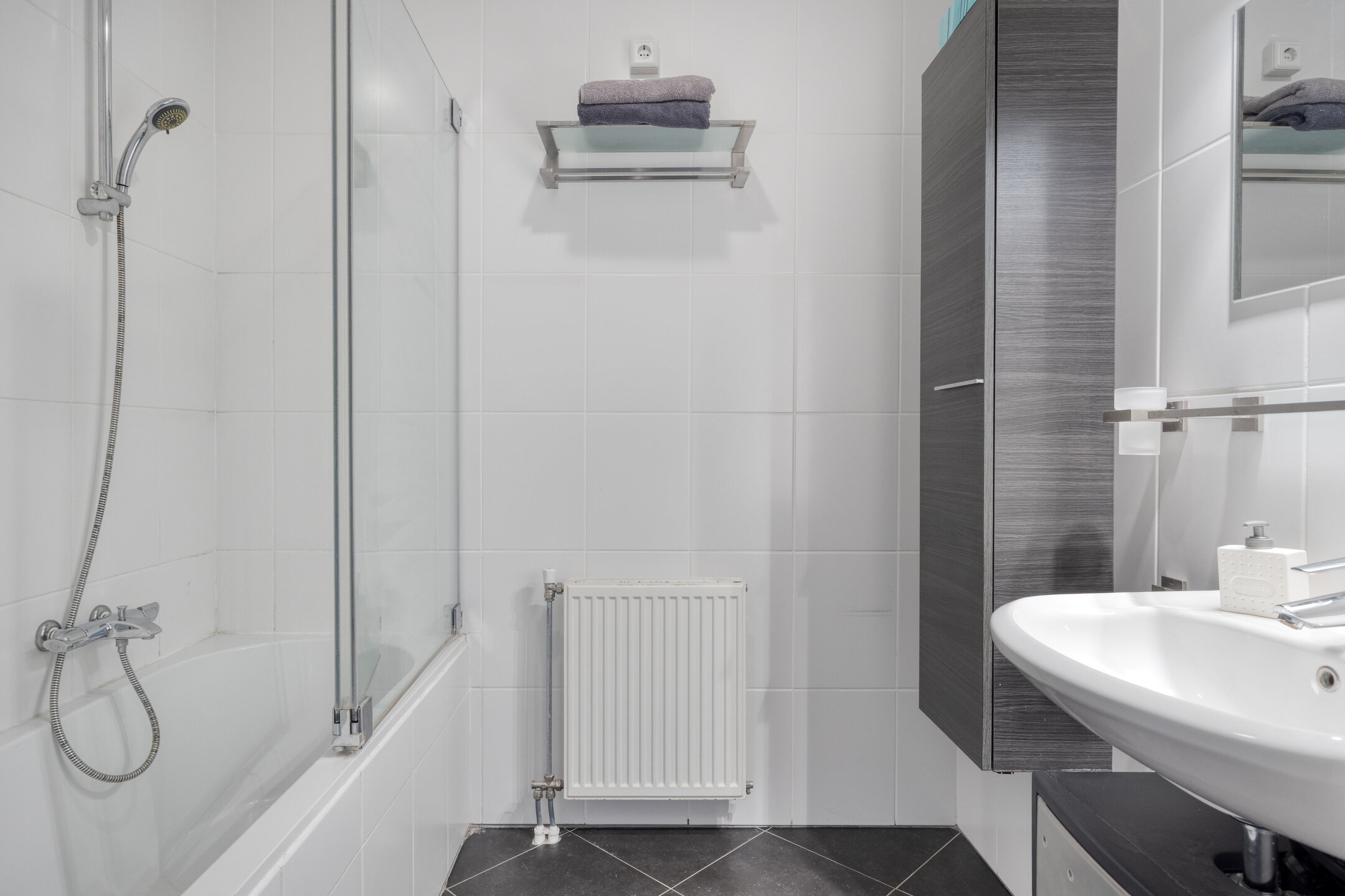 – de nette badkamer volledig is betegeld en over een ligbad met douche, een wastafelmeubel en een radiator beschikt;