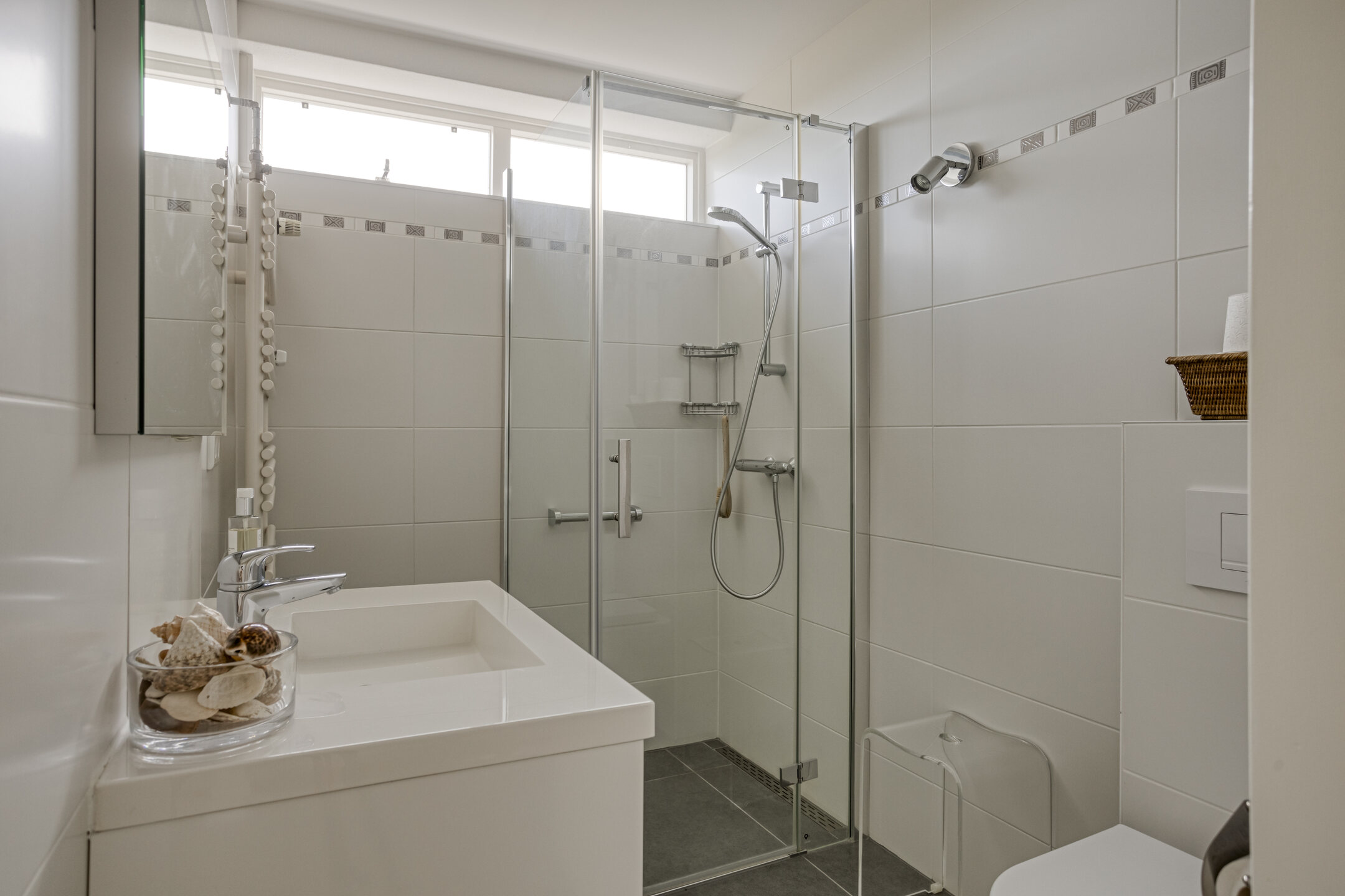 – de badkamer is compleet ingericht met een inloopdouche, wastafelmeubel en aansluitingen voor wasapparatuur;