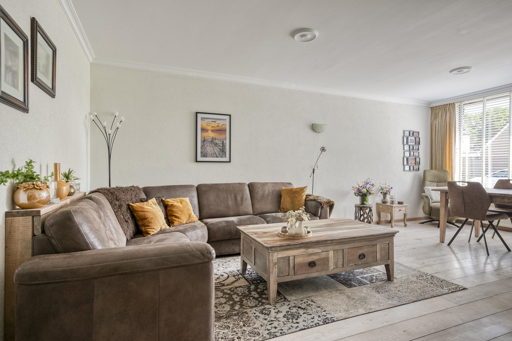 – de ruime woonkamer over een lichte houten vloer, gestucte wanden en een prettige lichtinval beschikt dankzij grote raampartijen aan voor- en achterzijde;