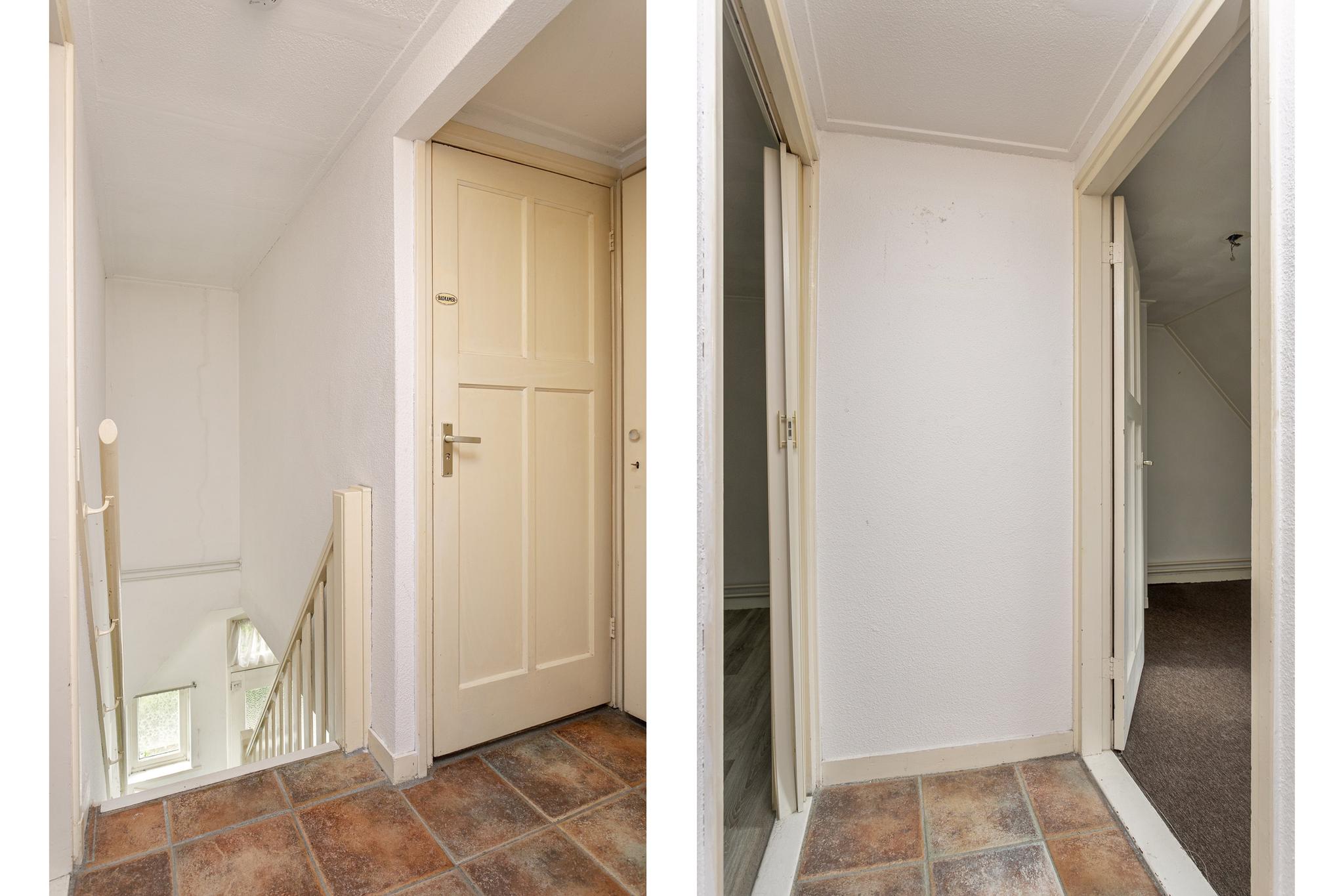 – de entree -/hal toegang biedt tot de trapopgang en de woonkamer;
