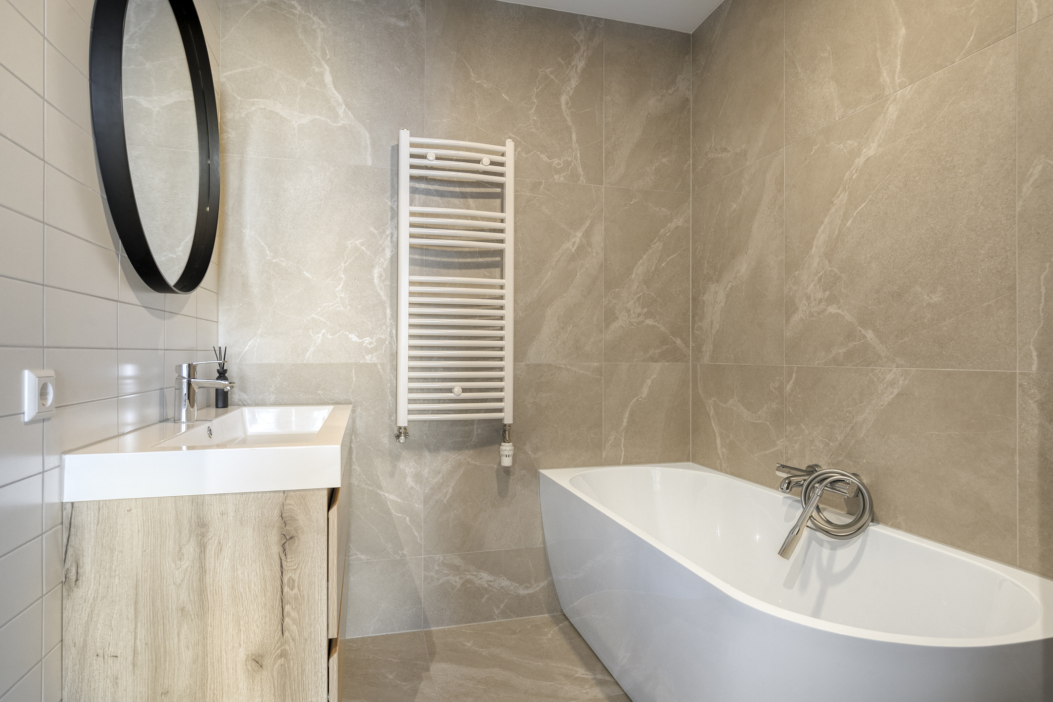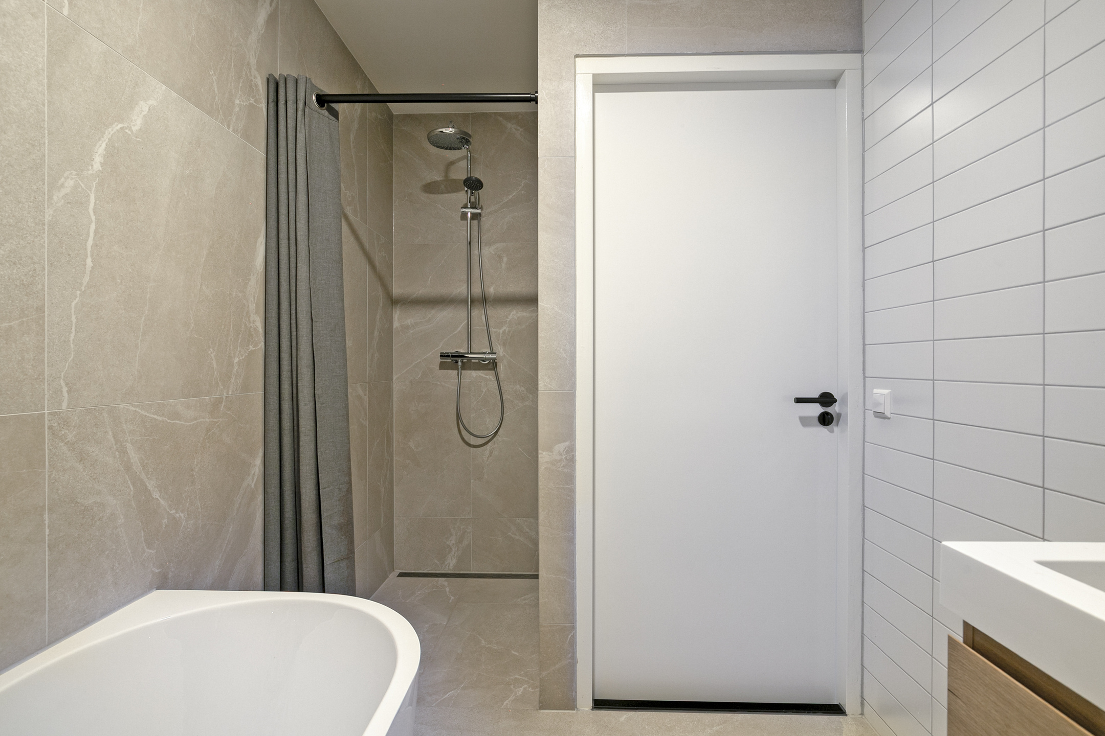 – De badkamer is modern en stijlvol afgewerkt (2024) en beschikt over een ligbad, inloopdouche en een wastafelmeubel;