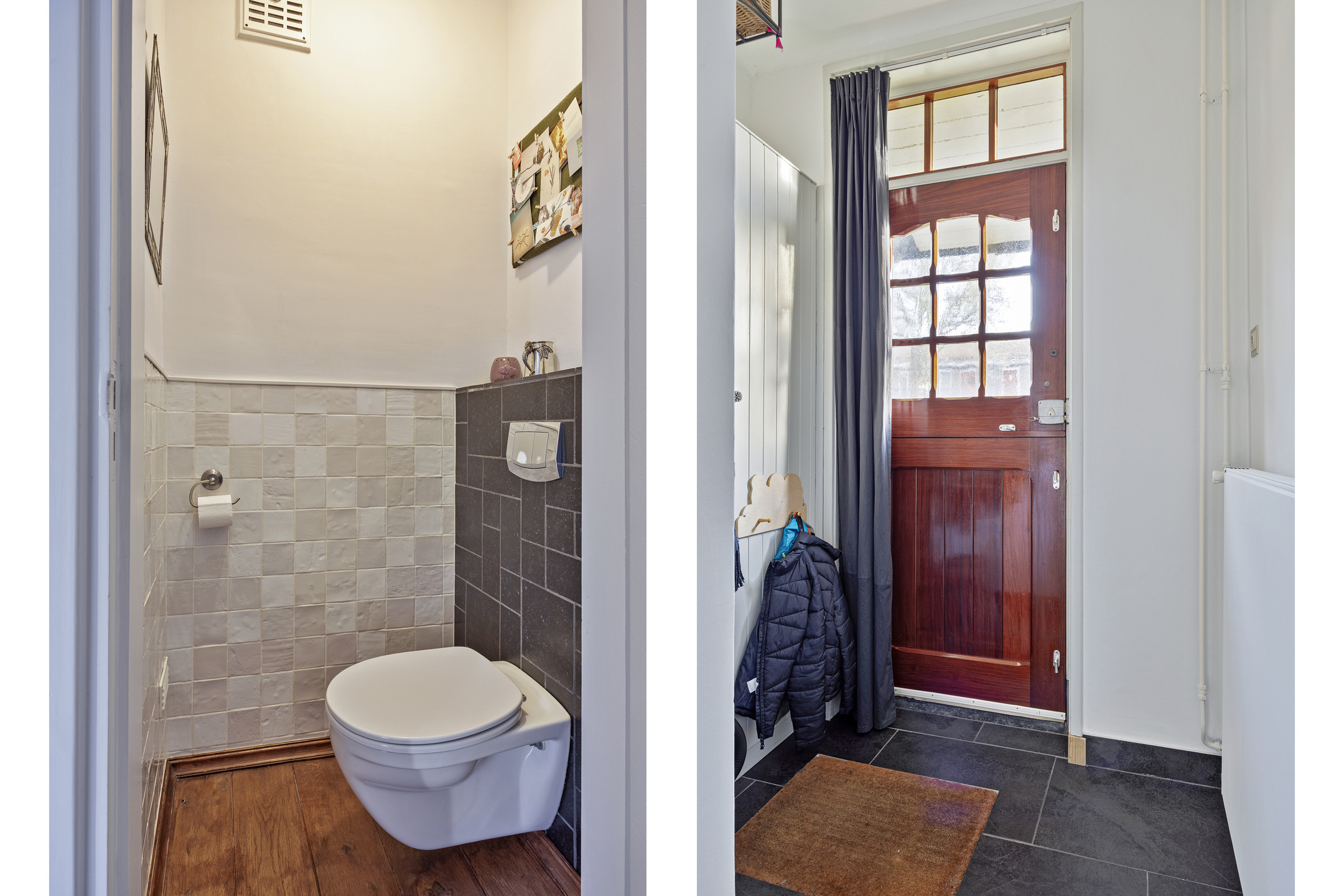 – de fraaie hal toegang biedt tot de meterkast, de toiletruimte, de trapopgang naar de verdieping en de woonkamer;