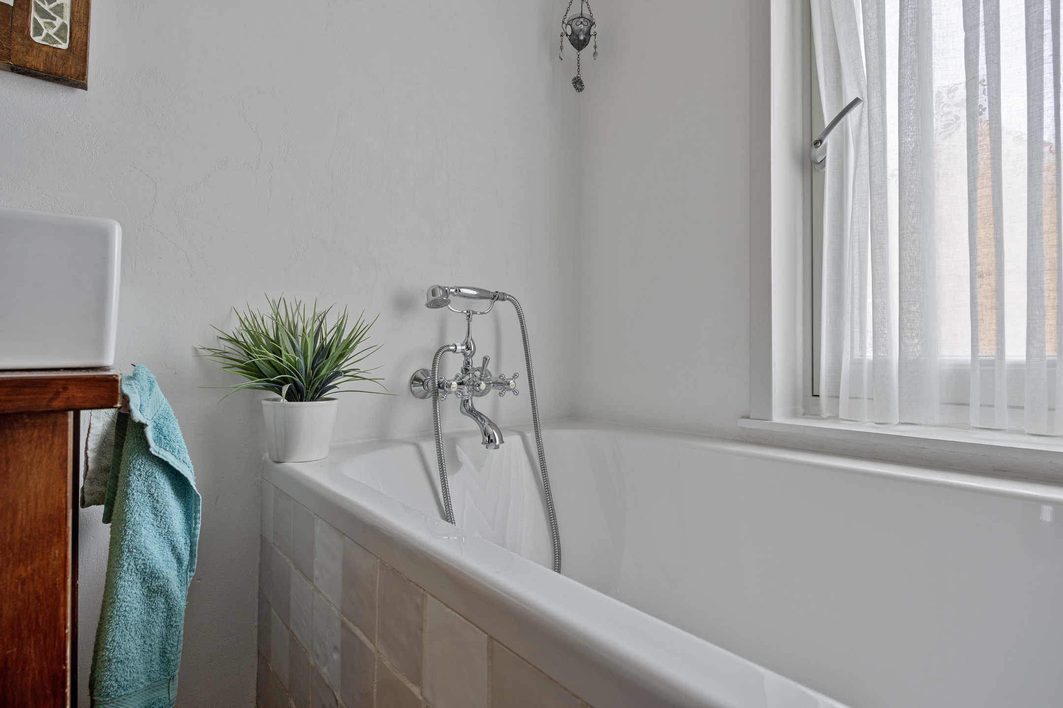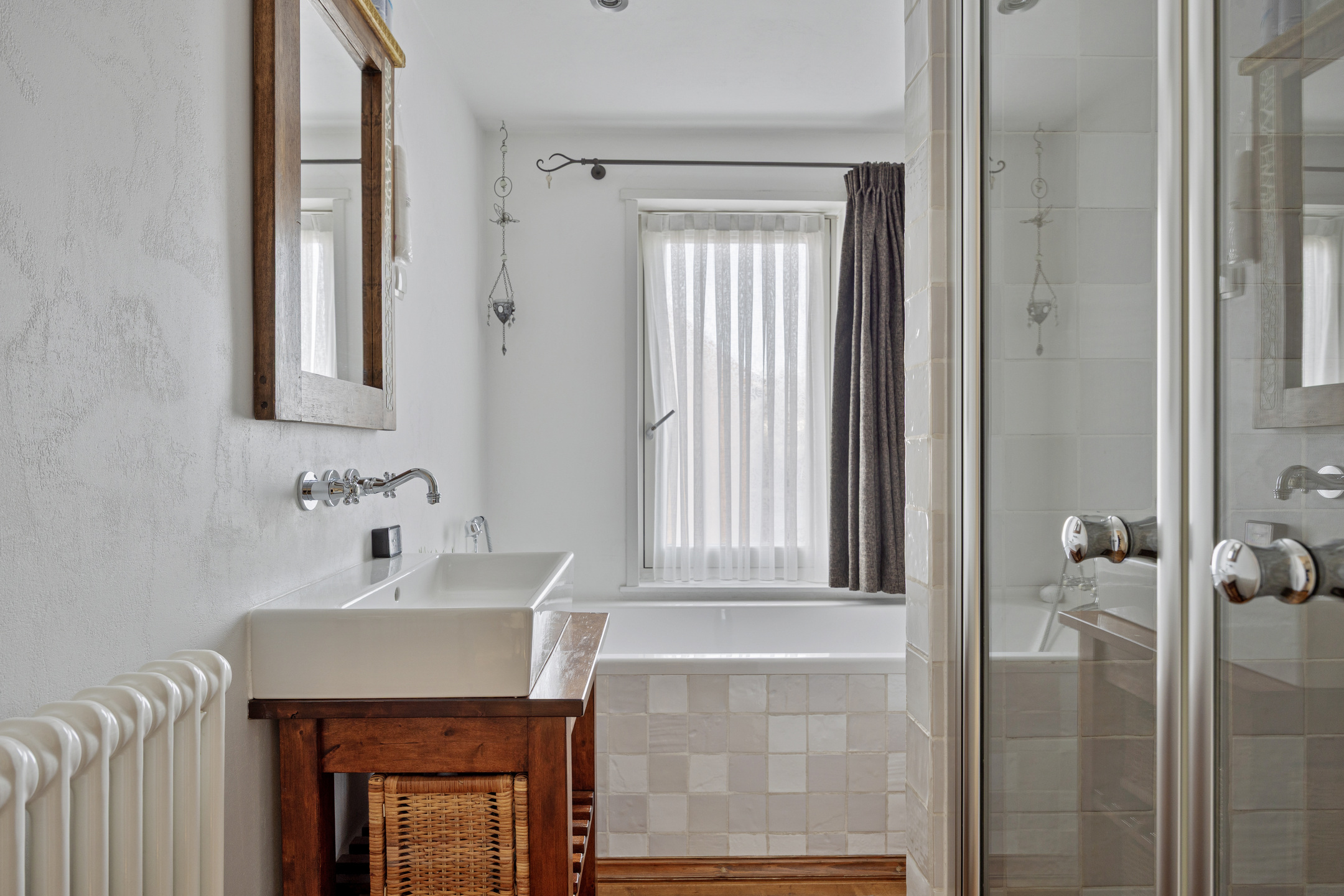 – de badkamer is voorzien van een ligbad, separate douchecabine, wandcloset en een wastafel;