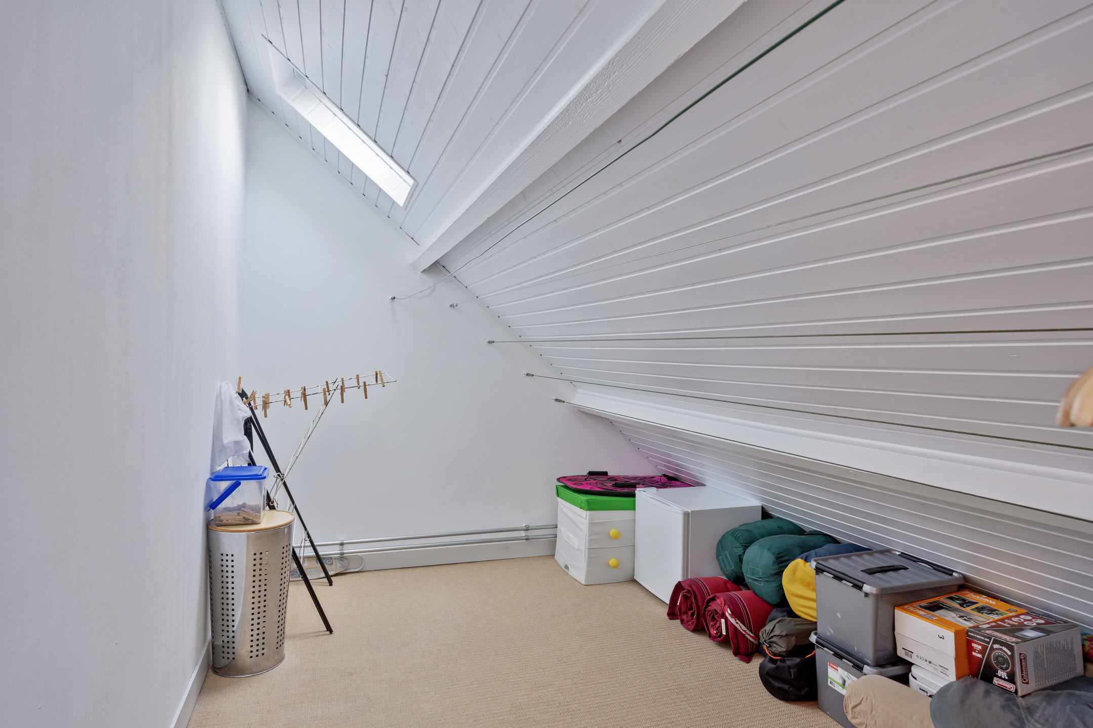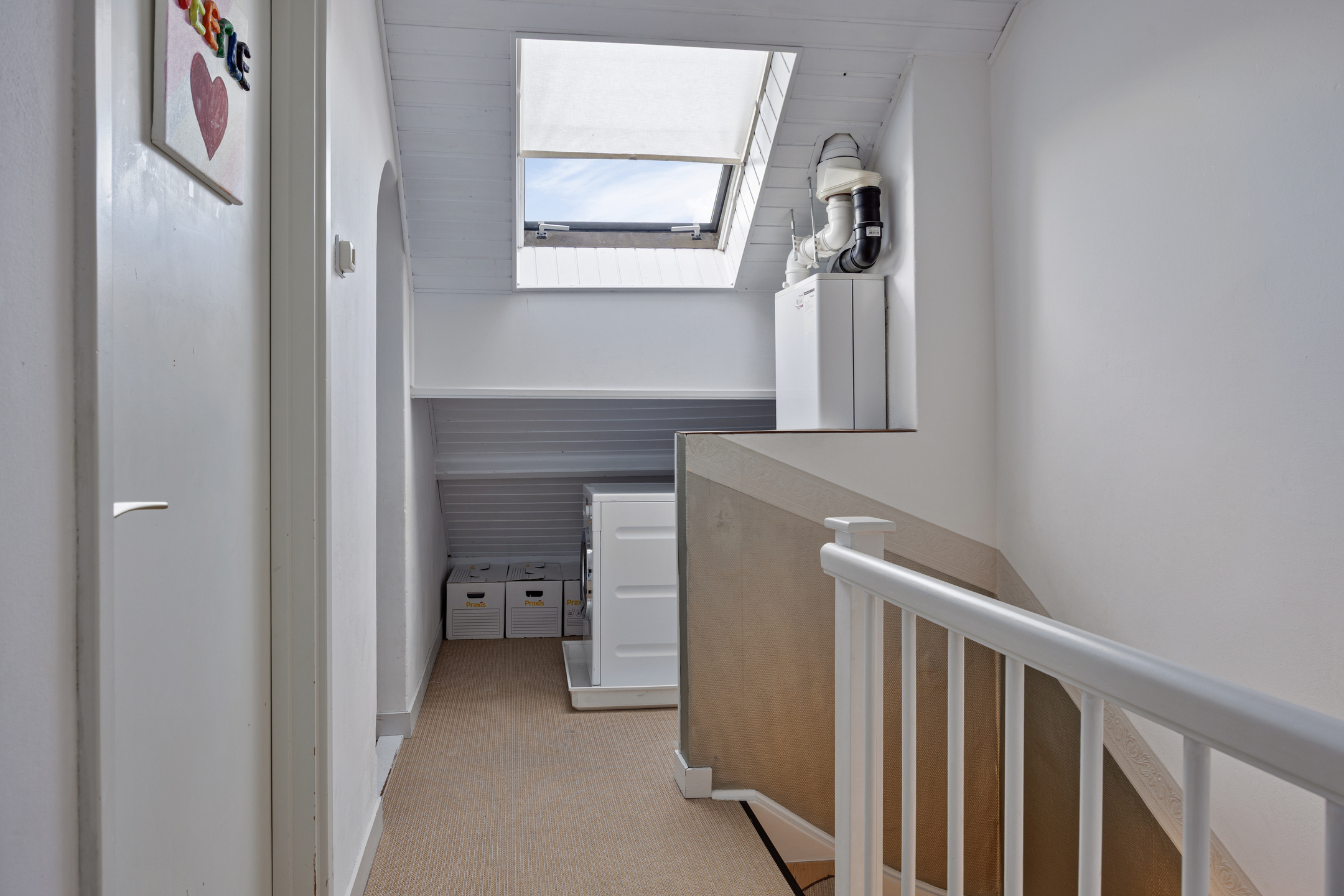 – op de voorzolder bevindt zich de wasmachine aansluiting, de opstelling van de CV ketel (2015), een berggedeelte en een royale vierde slaapkamer met dakkapel en vaste kast;