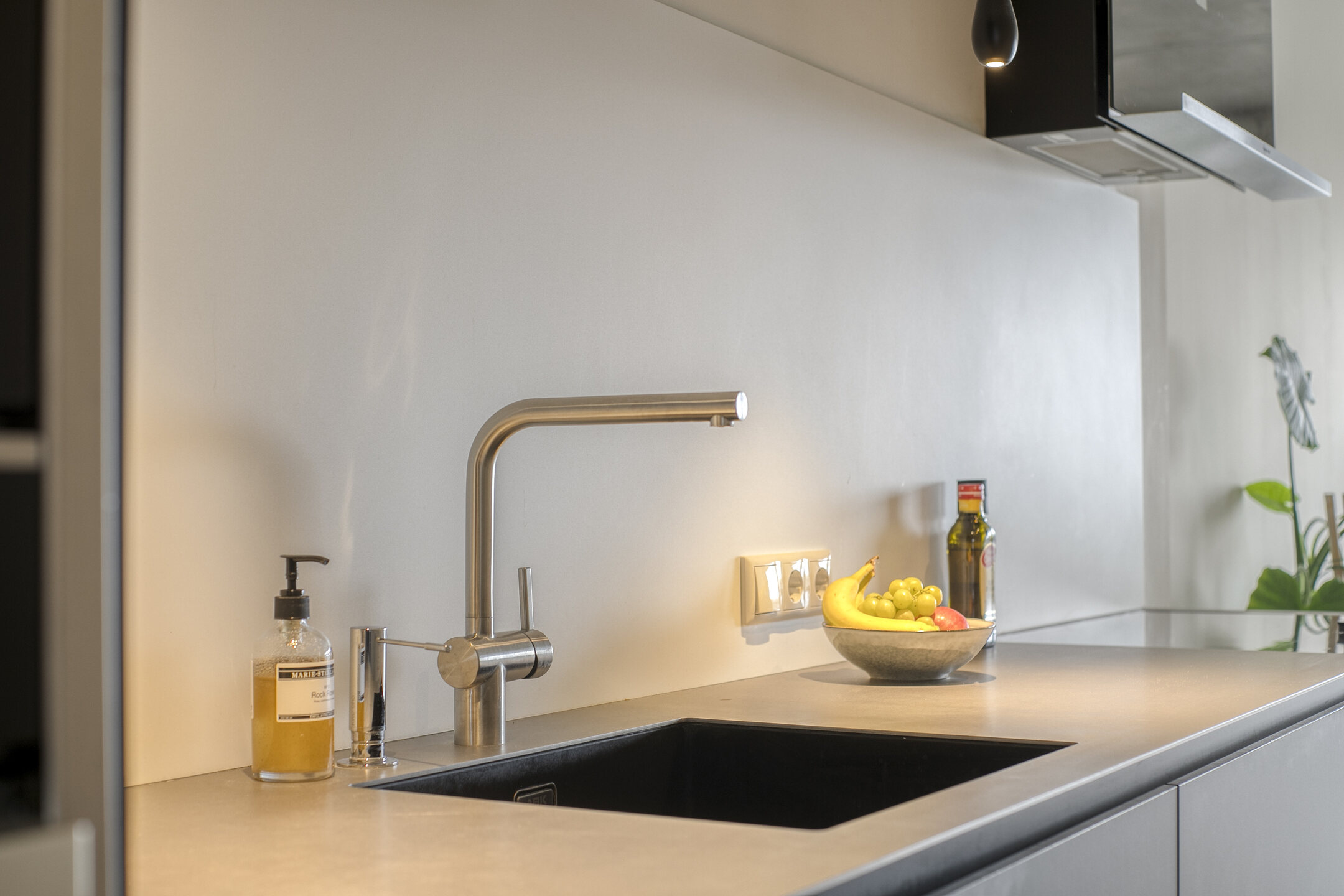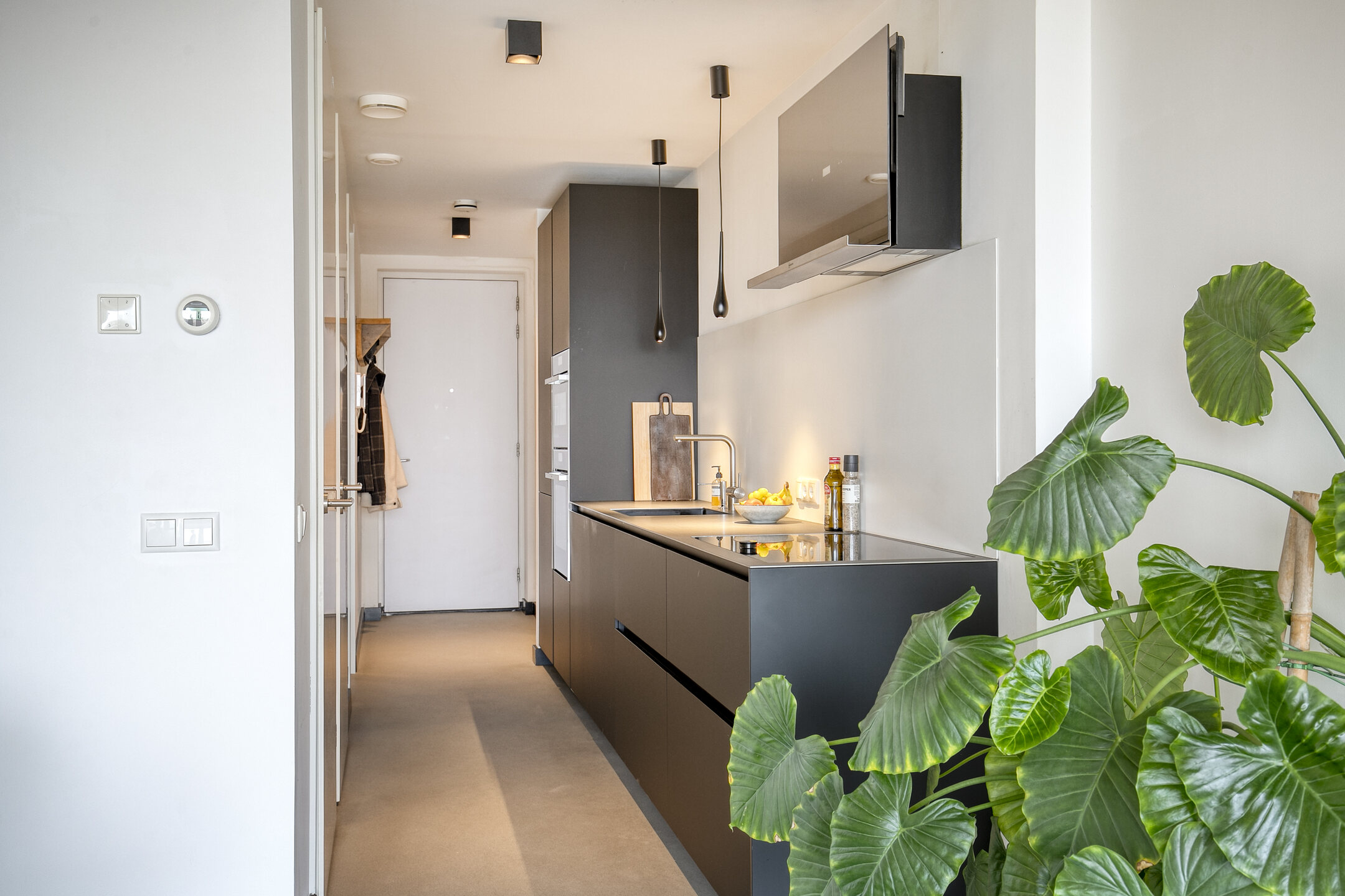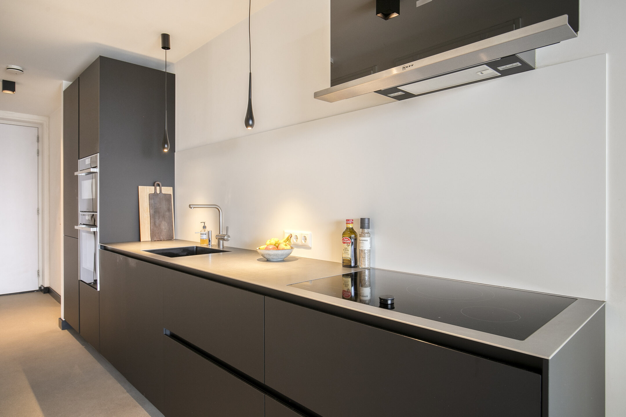 – de moderne open keuken is strak en luxe uitgevoerd en voorzien van hoogwaardige inbouwapparatuur, waaronder een inductiekookplaat (Gaggenau), afzuigkap, combi-oven/magnetron, koelkast en vaatwasser;