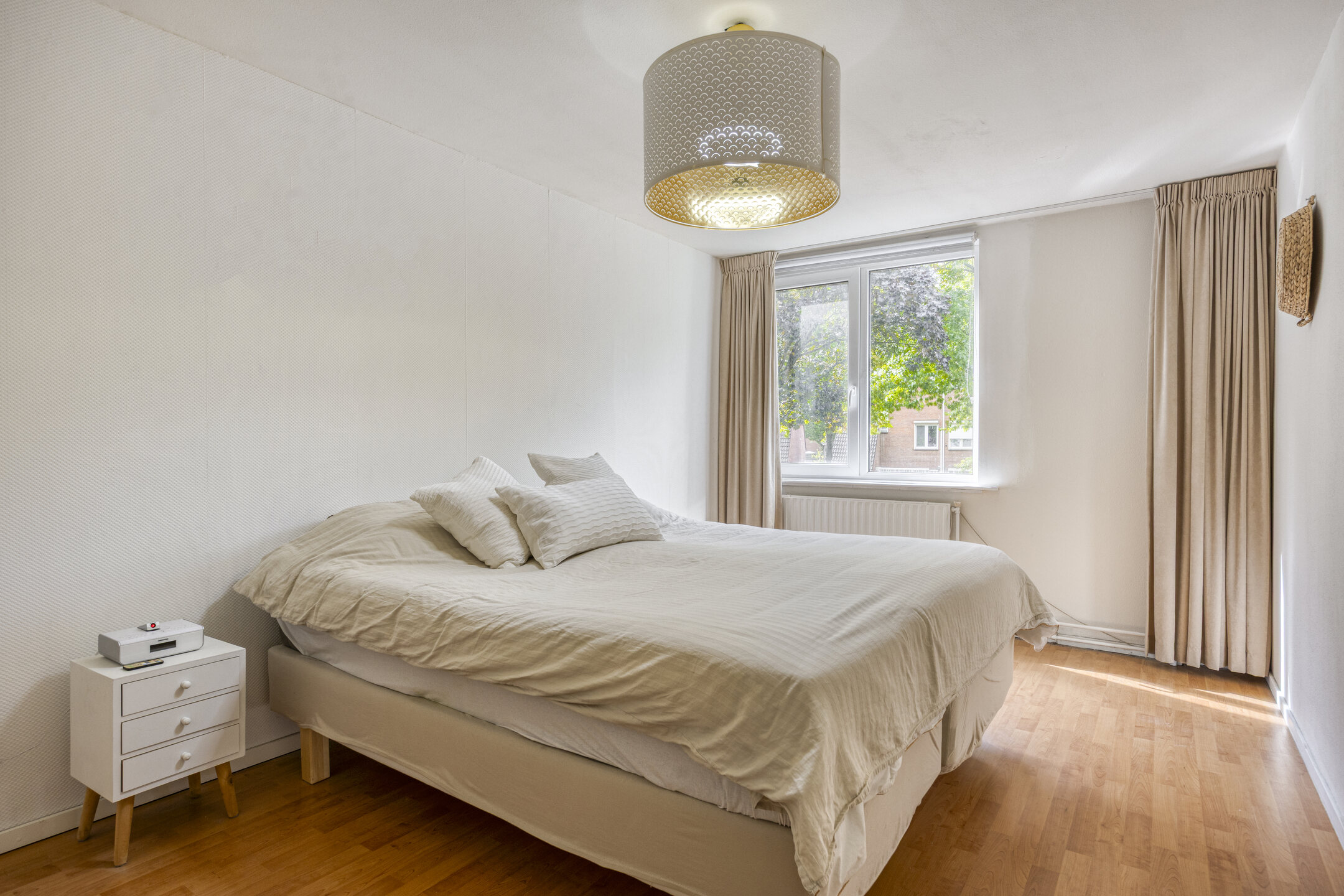 – op de eerste verdieping zijn twee ruime slaapkamers aanwezig, beiden keurig afgewerkt met laminaatvloeren en veel lichtinval;