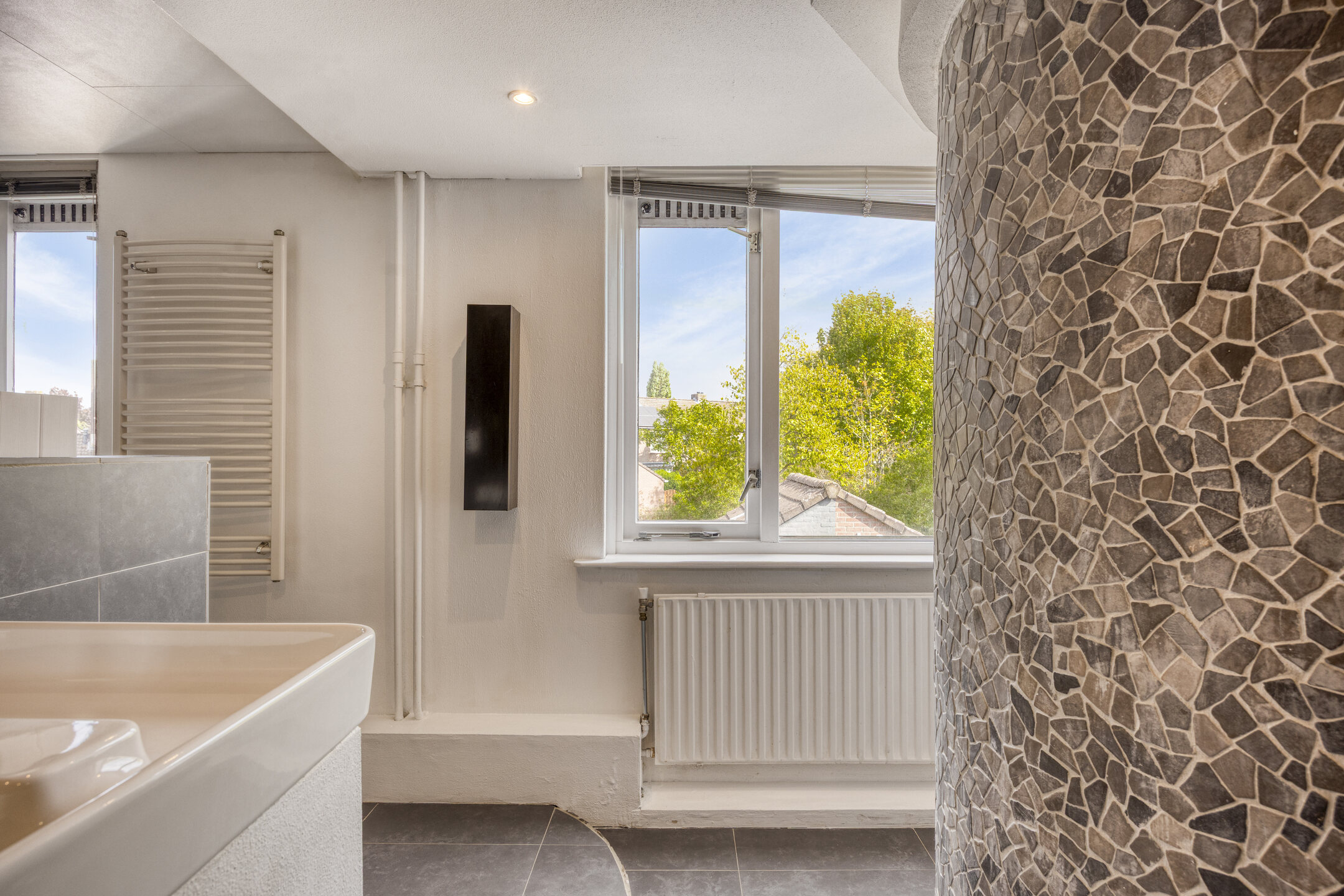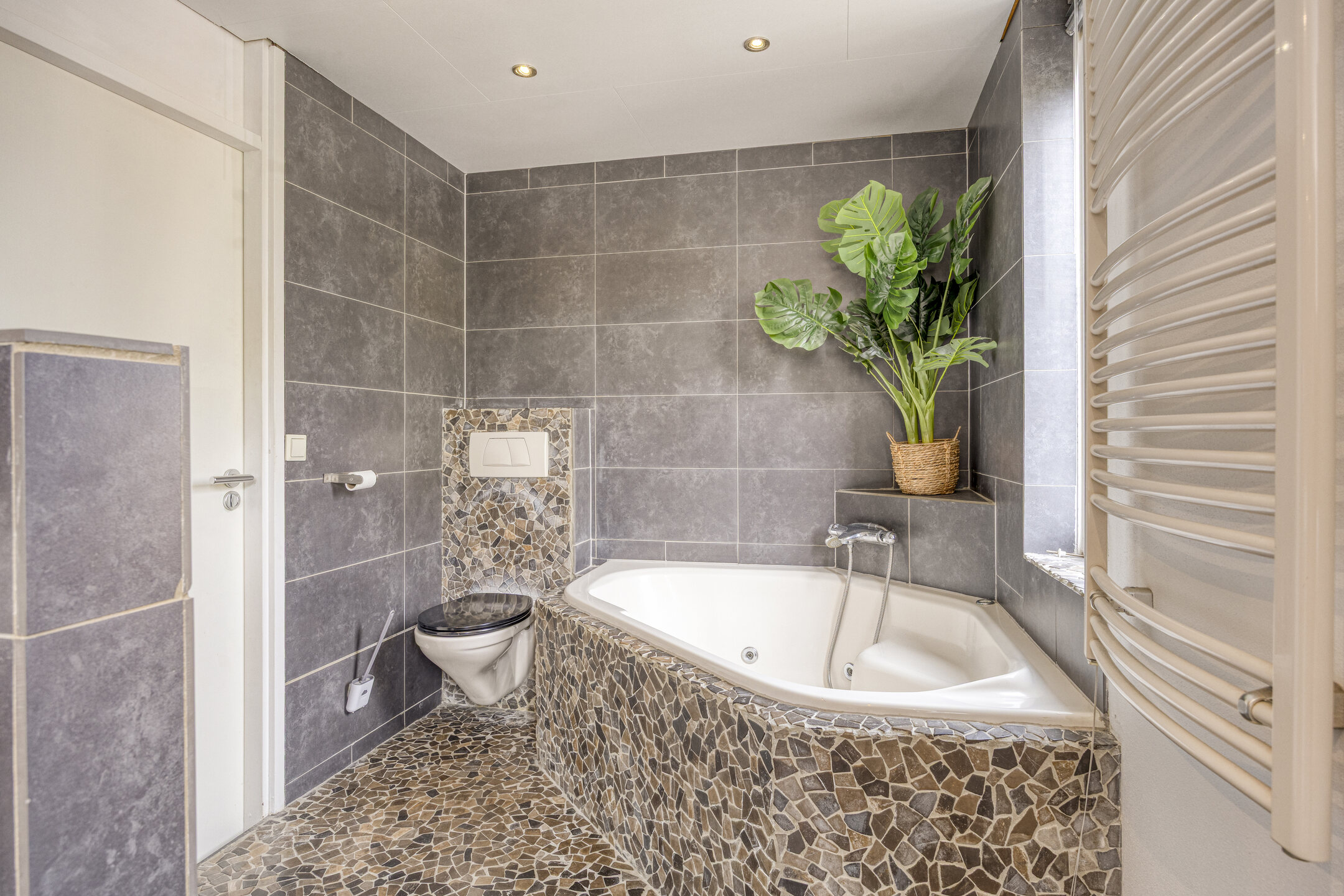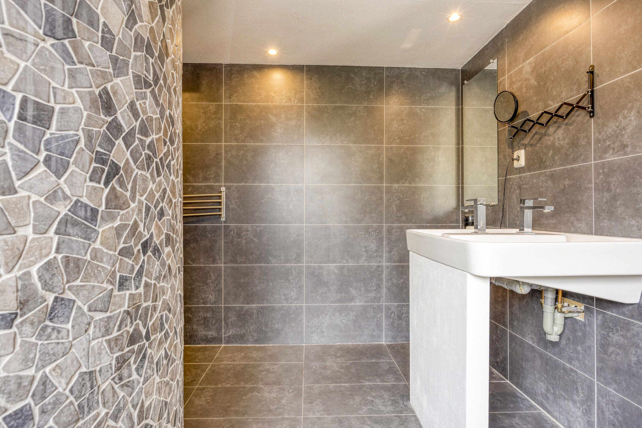 – de moderne badkamer (2016) is volledig betegeld en ingericht met een ligbad met whirlpool, een royale inloopdouche met regendouche, dubbele wastafel en een toilet;
