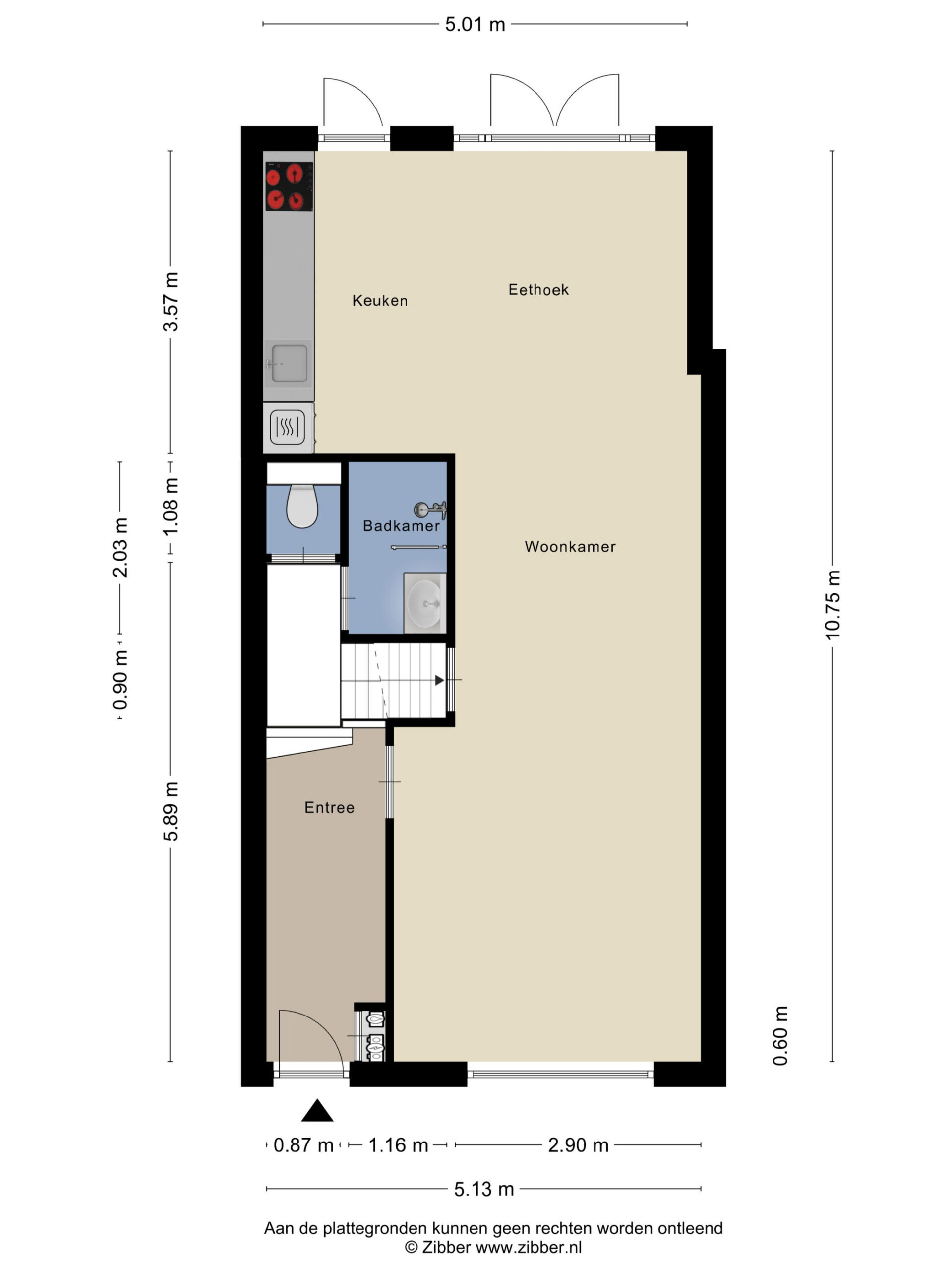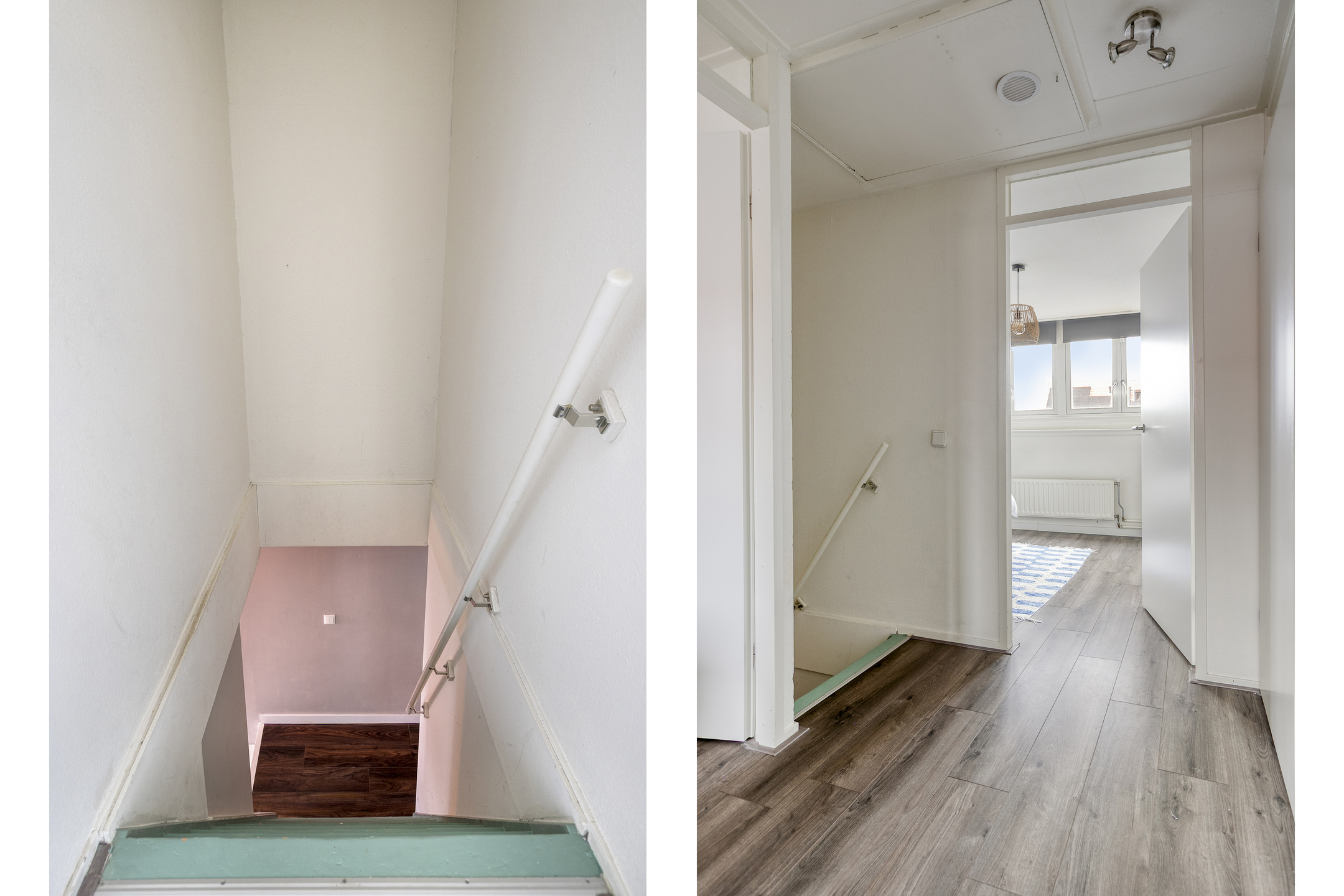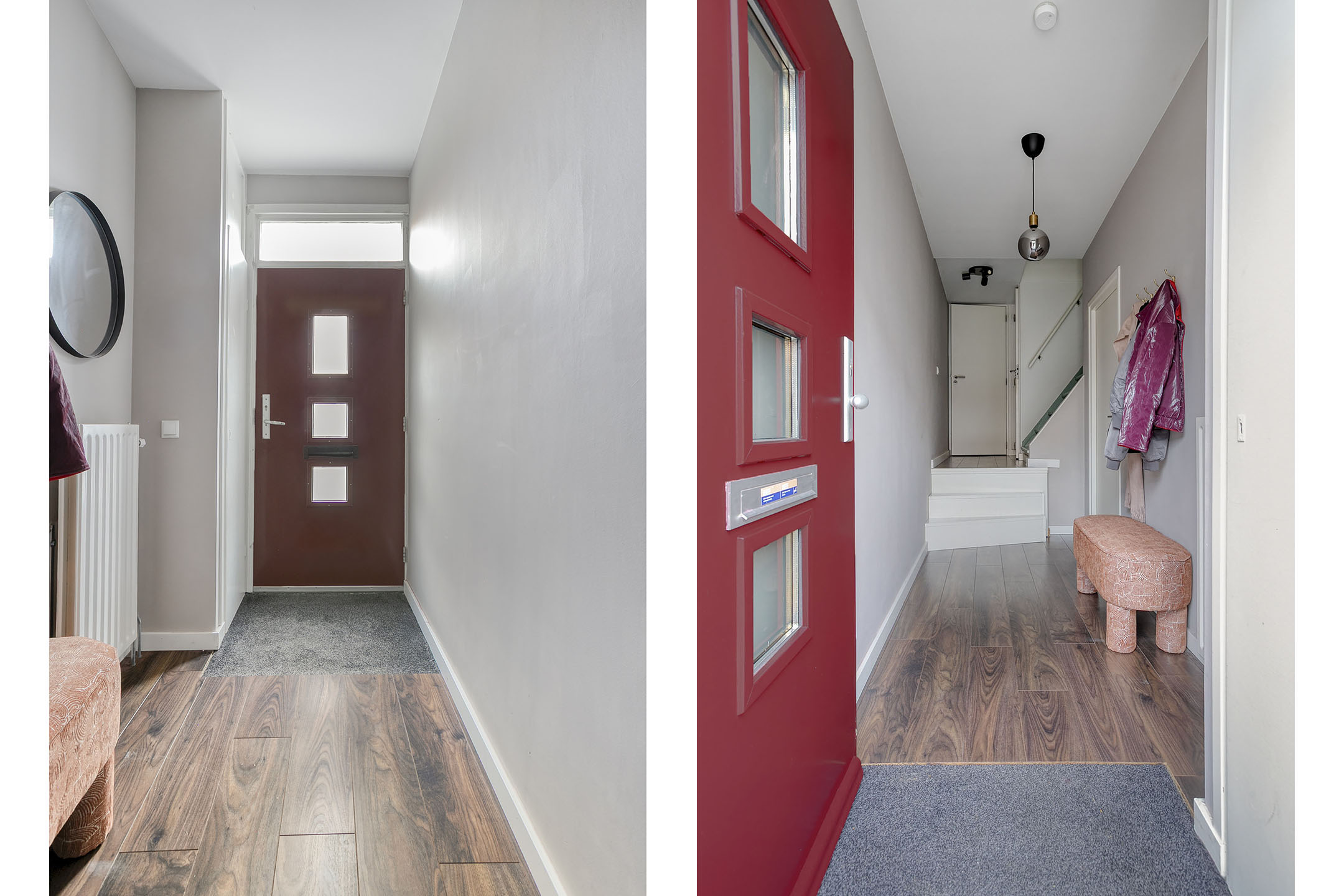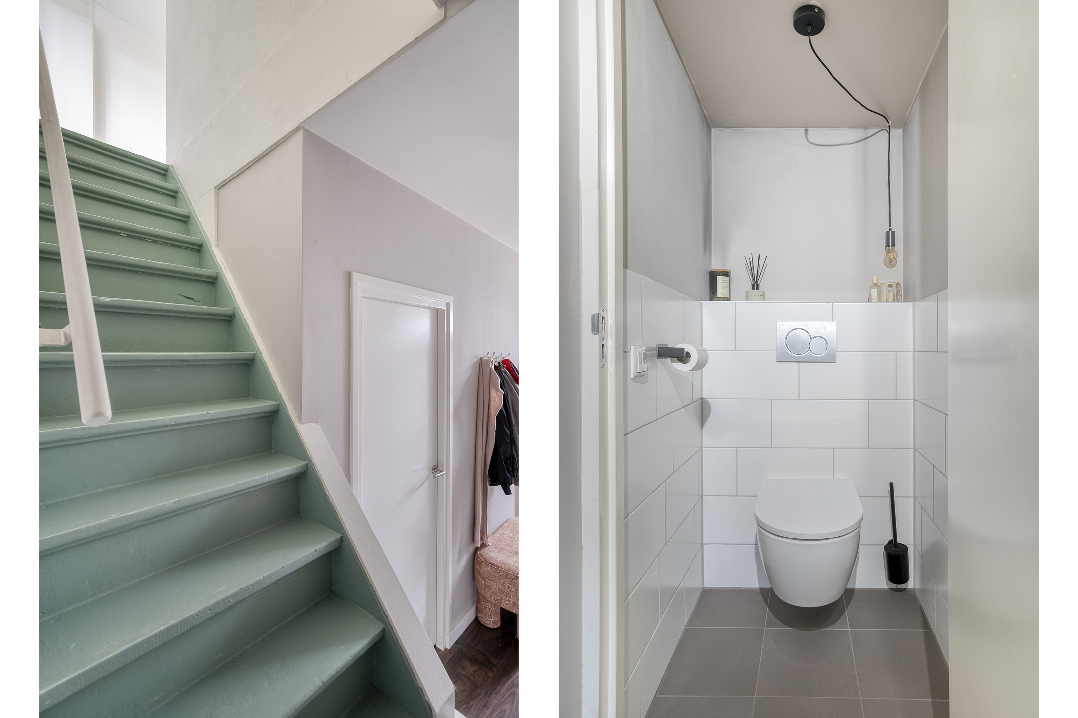 – Vanuit de hal heb je toegang tot het moderne toilet, de badkamer, trapopgang en de woonkamer;