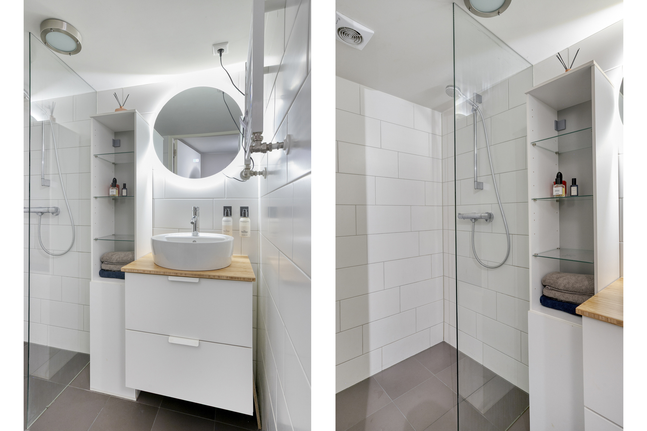 – de badkamer (2019) is fris, stijlvol en helemaal van nu – met een inloopdouche, wastafelmeubel, verwarmde spiegel en designradiator;
