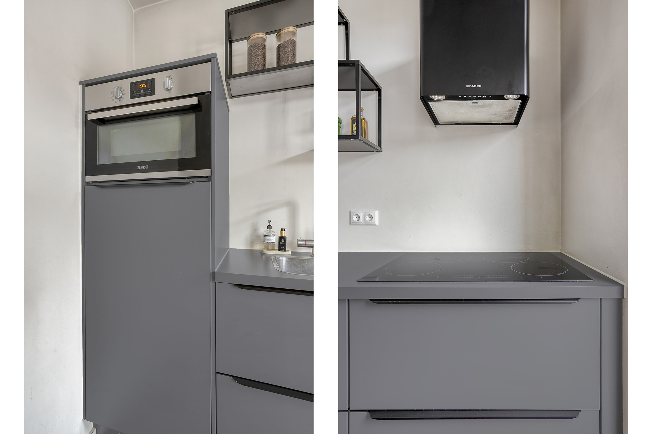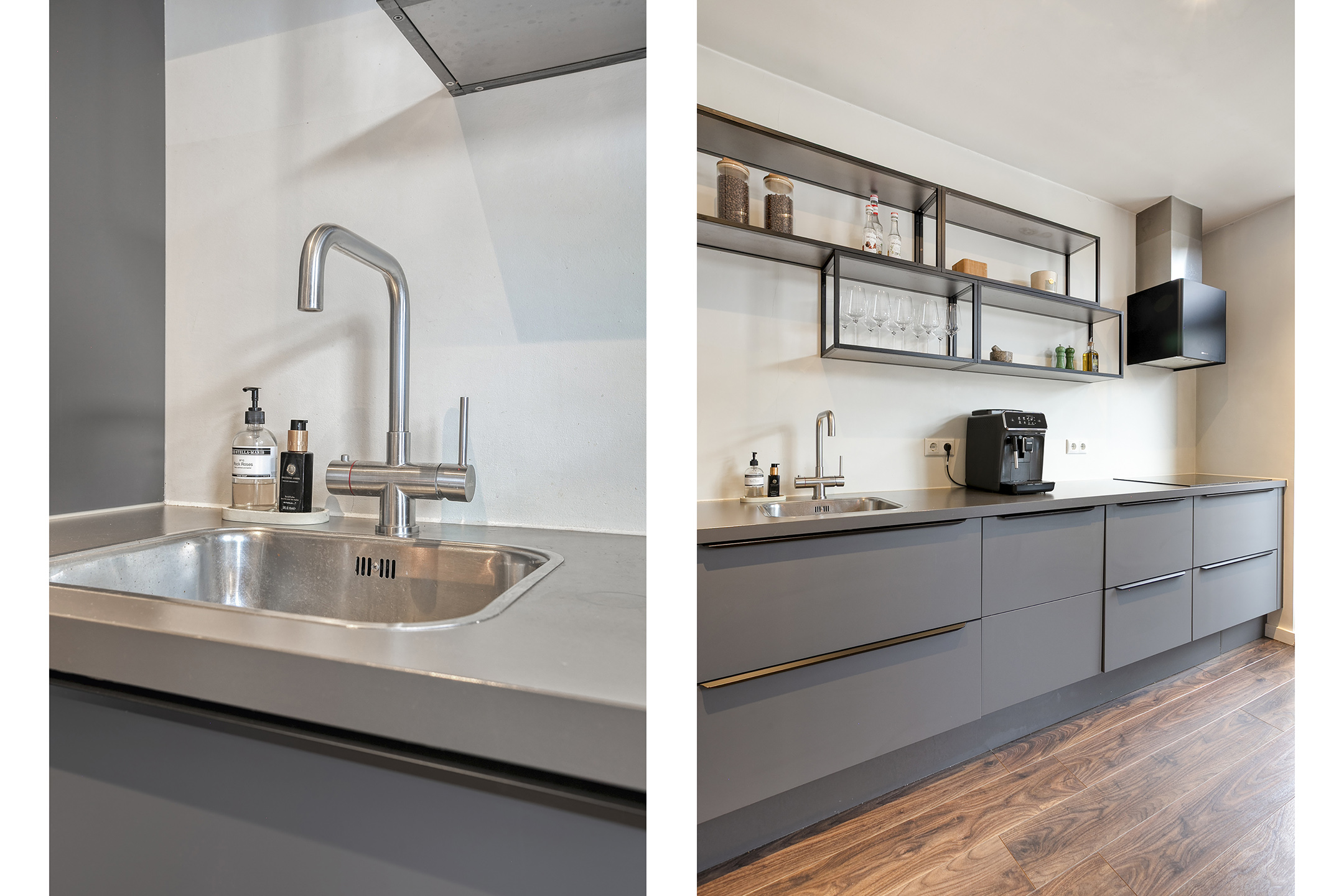 – de open keuken (2019) is een echte blikvanger: modern en compleet uitgerust met een combi-oven, inductiekookplaat, afzuigkap, koelkast en een handige Quooker voor direct kokend water;