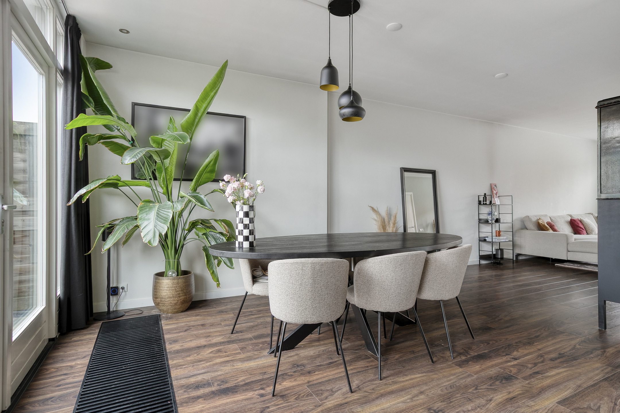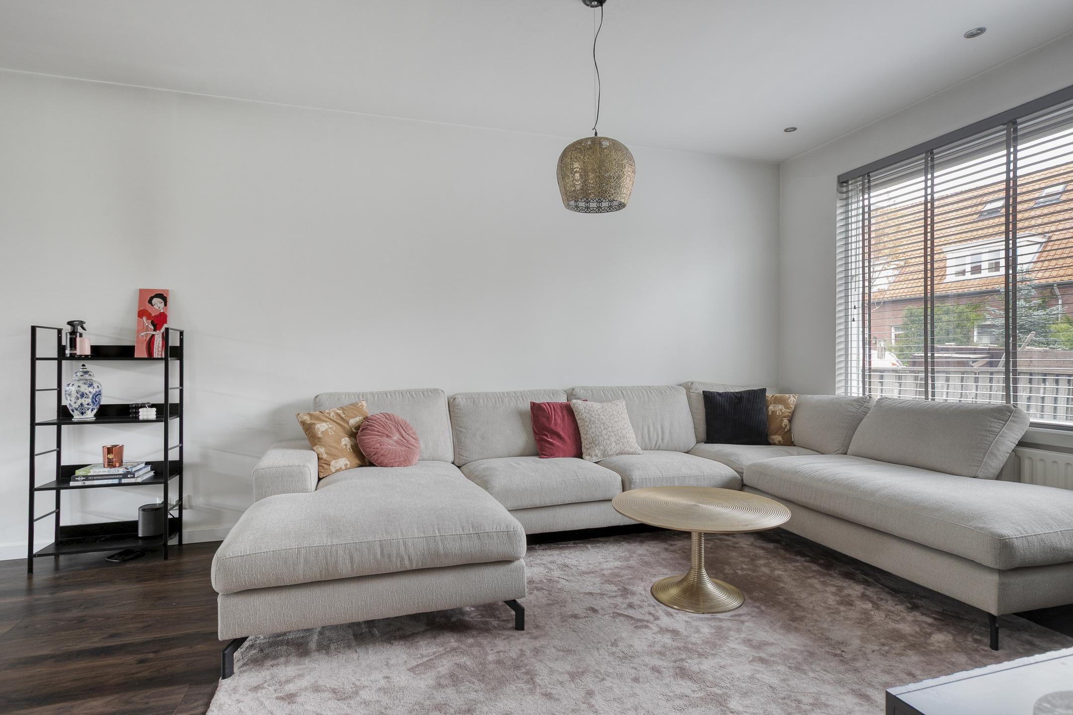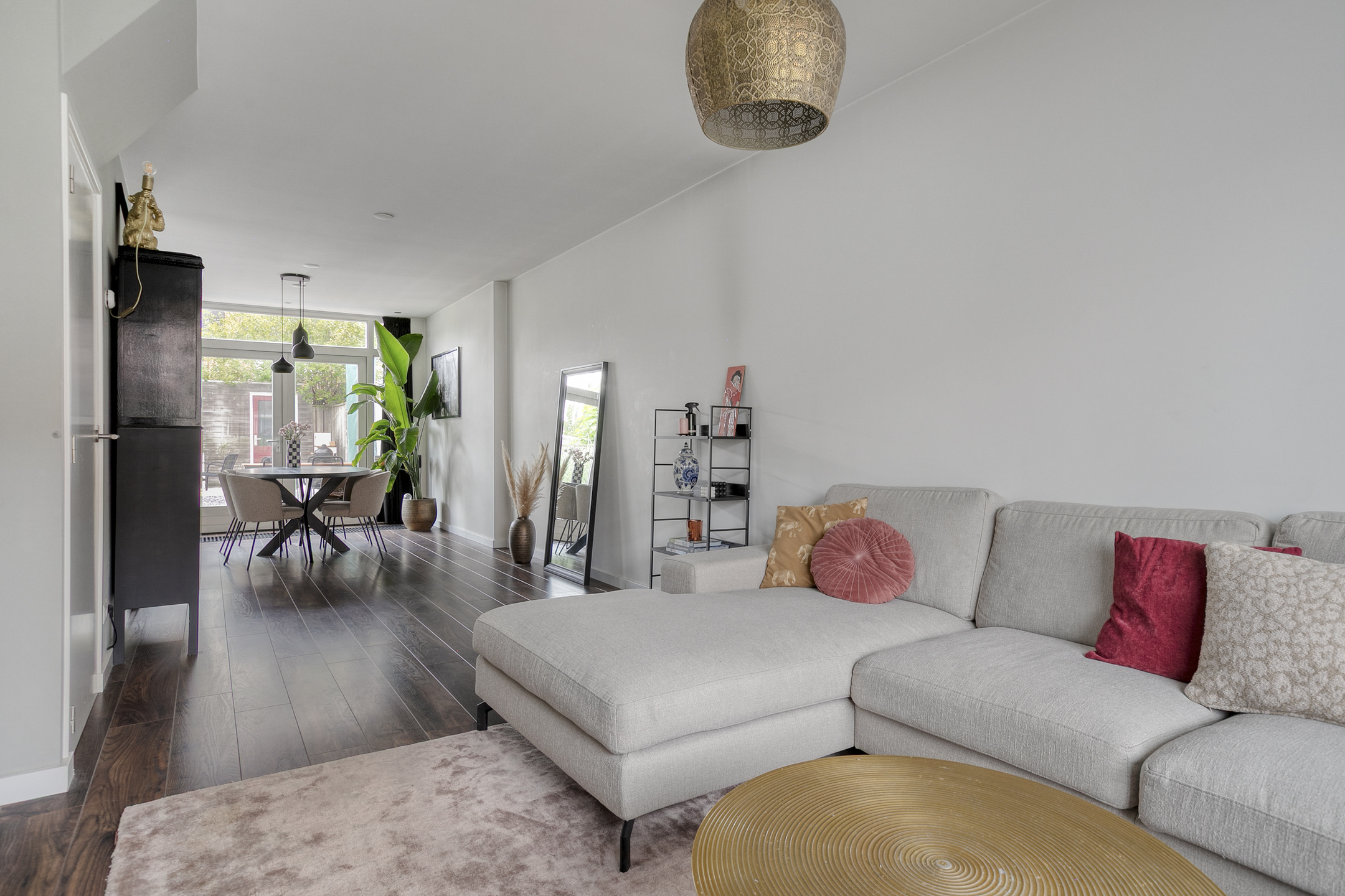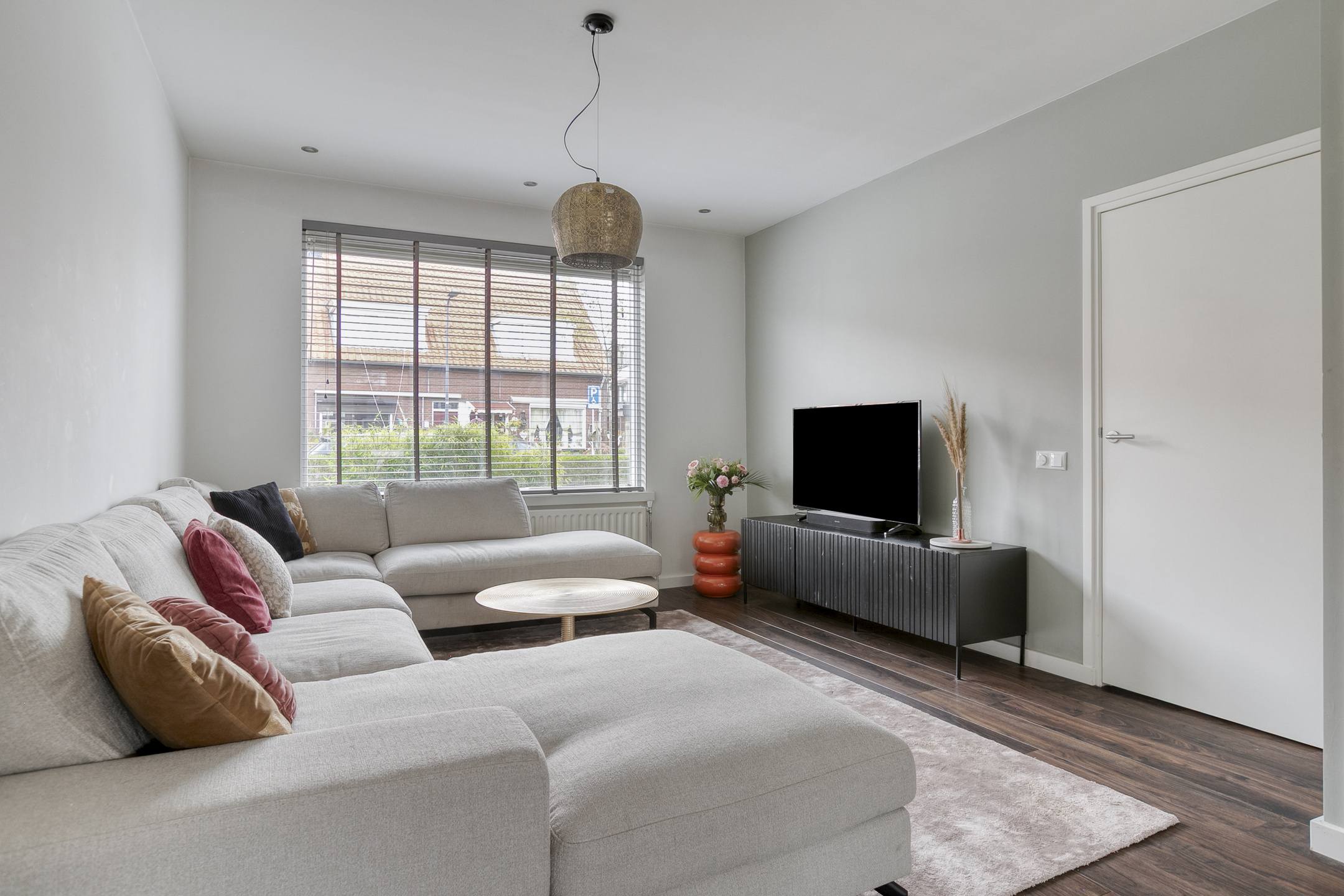 – de lichte woonkamer is uitgebouwd en voelt meteen ruim en gezellig aan. Strak gestucte wanden, een nette laminaatvloer en veel daglicht zorgen voor een fijne sfeer;